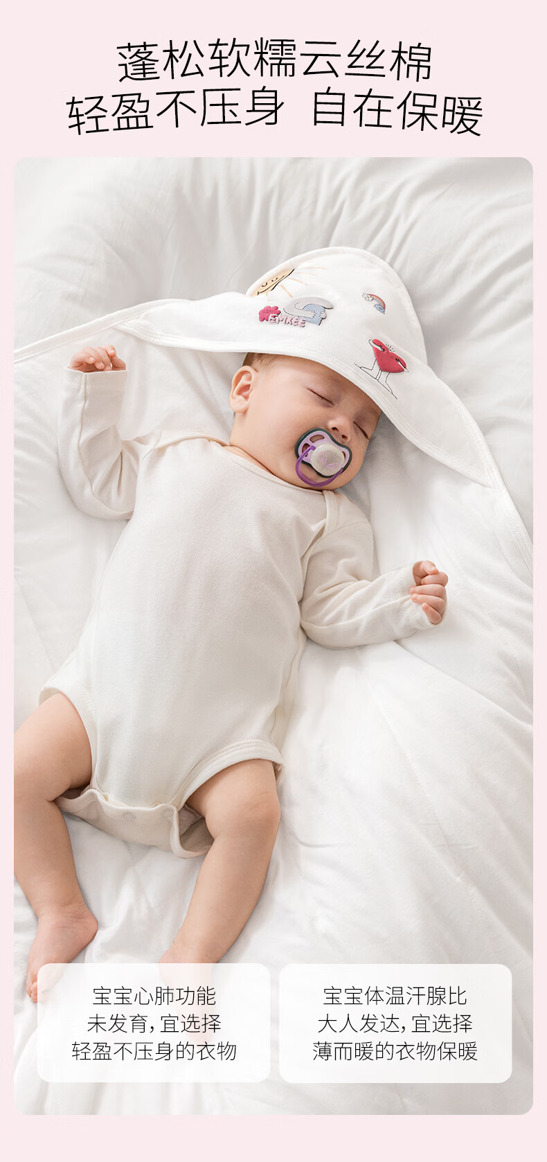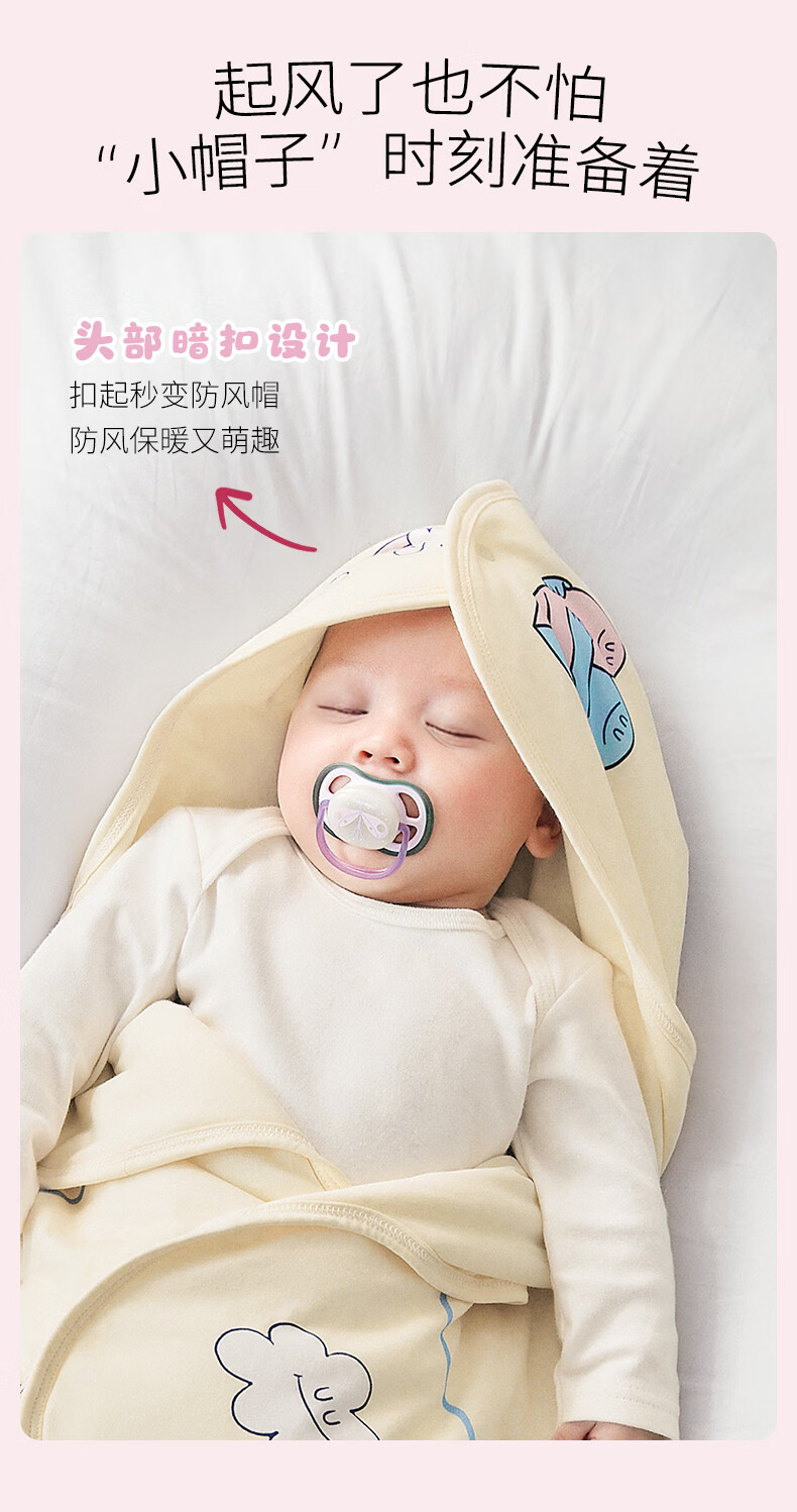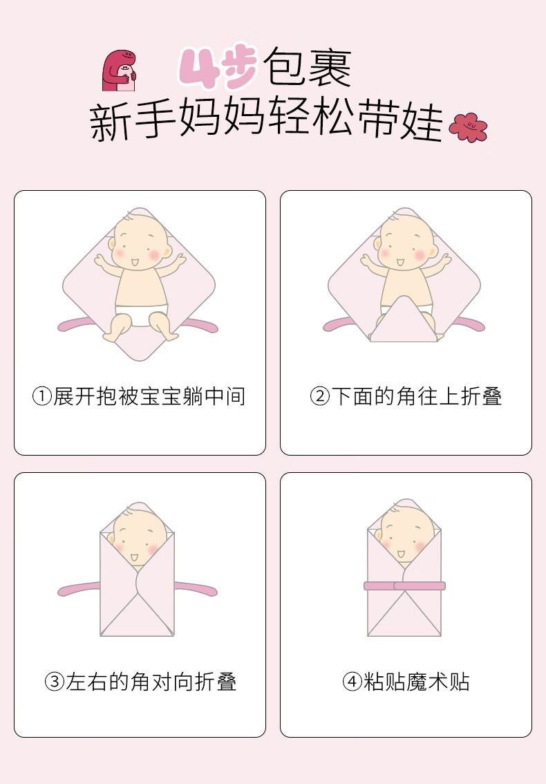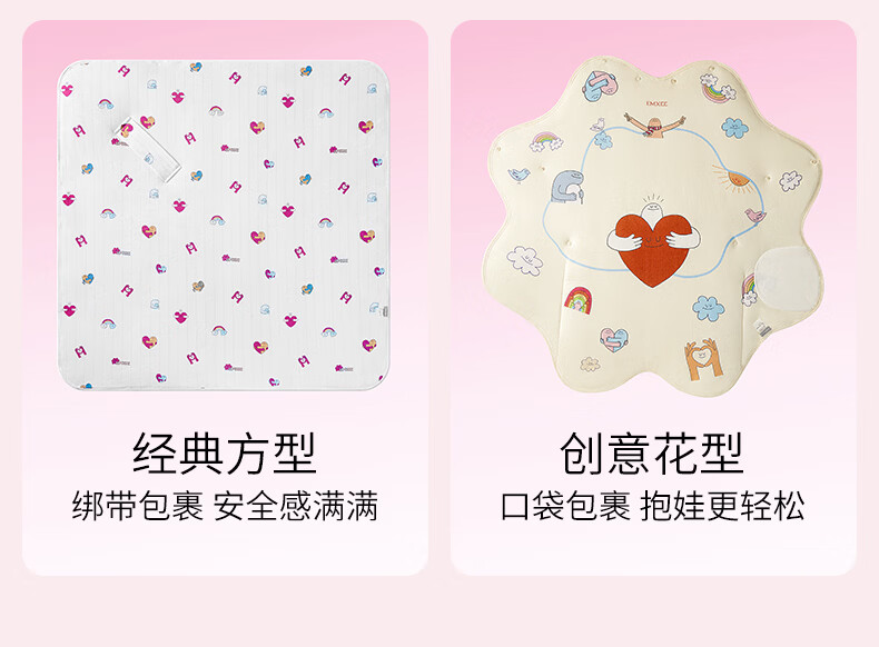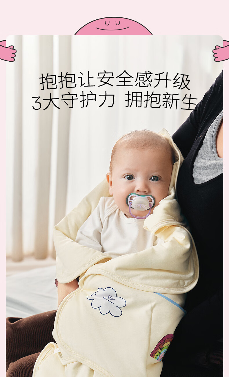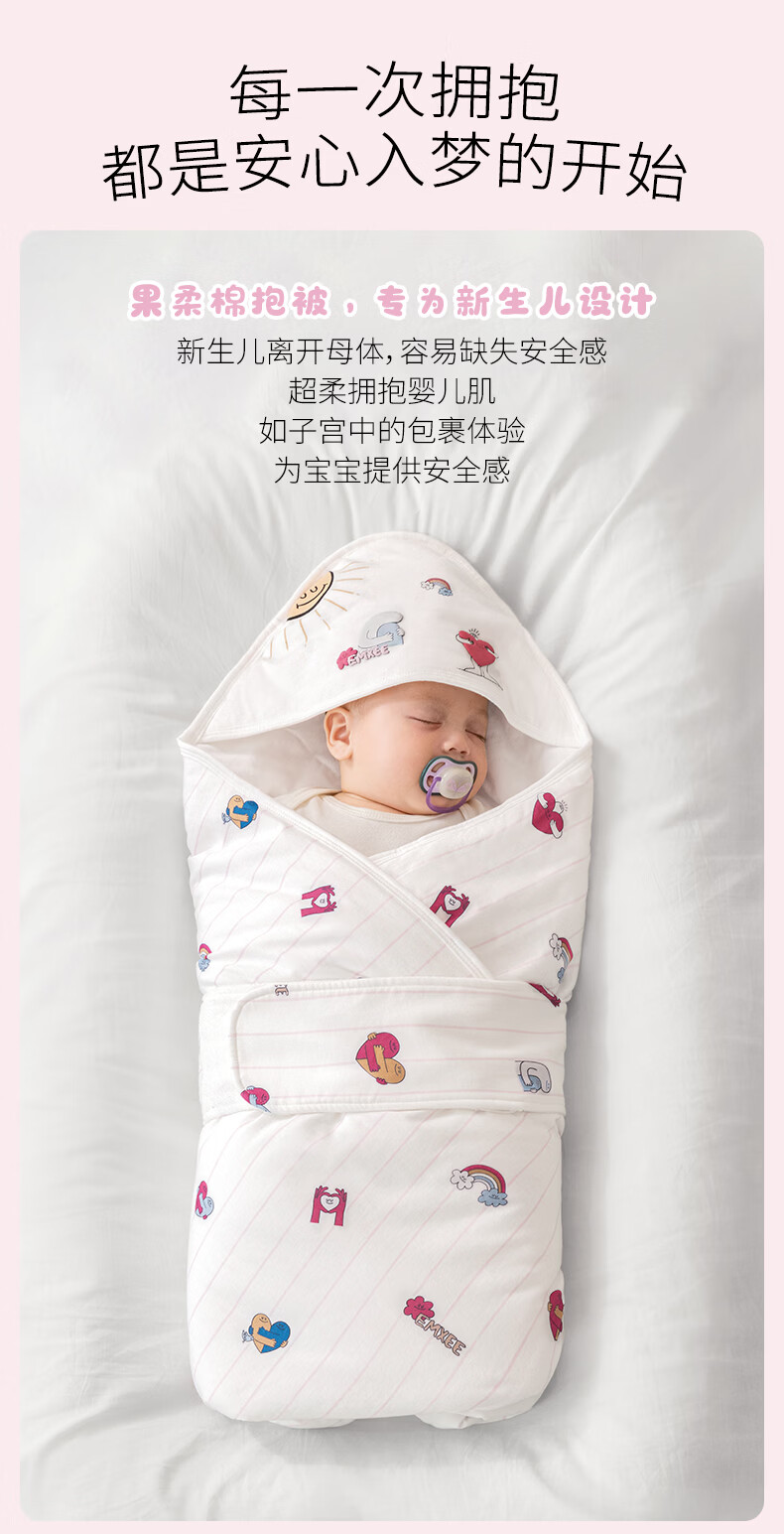 嫚熙(EMXEE)【抱抱人联名】婴儿包被初生宝宝包单防惊跳包巾四季外出抱被 【四季款】爱的抱抱-白底粉条 室温18-26℃ 90*90cm
