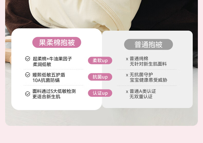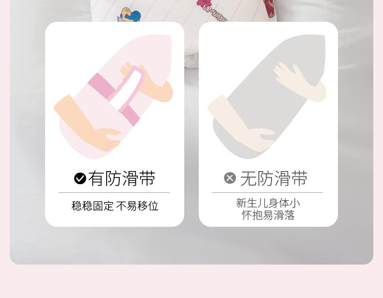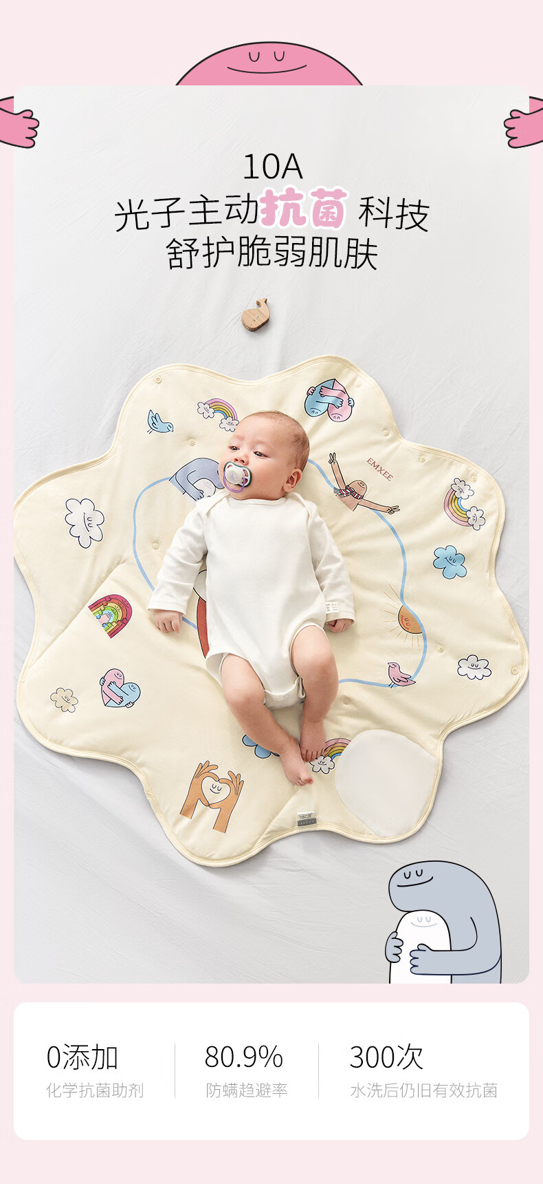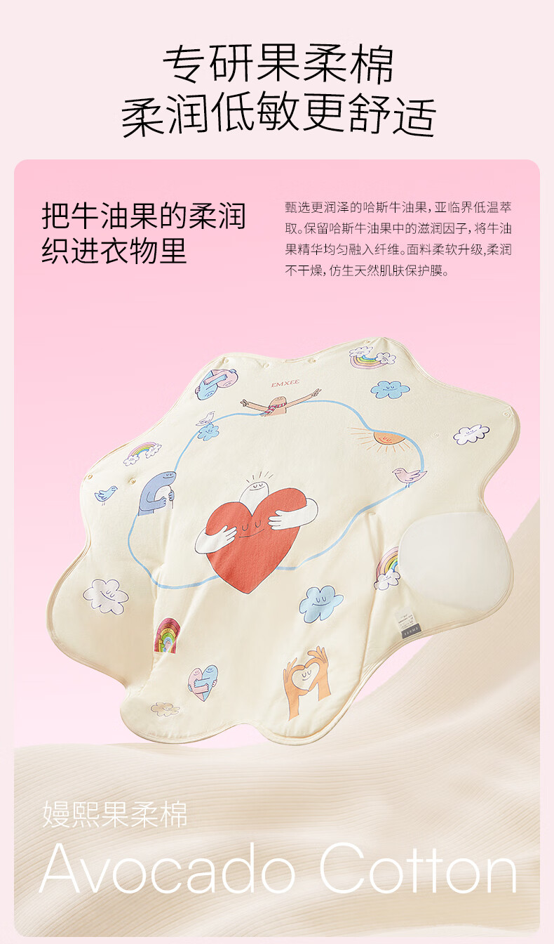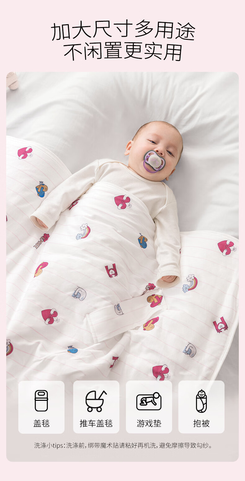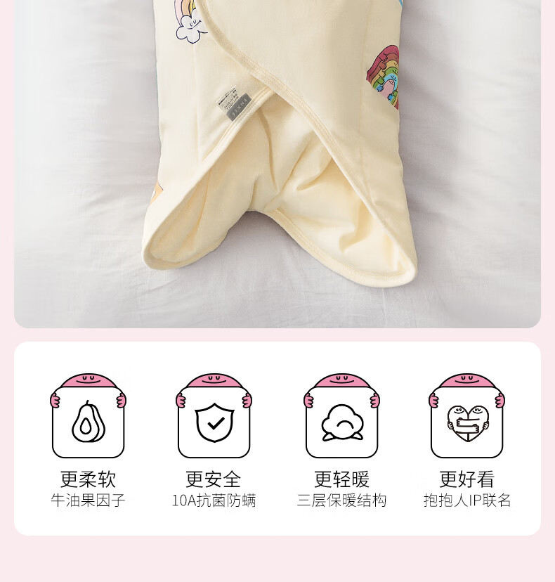 嫚熙(EMXEE)【抱抱人联名】婴儿包被初生宝宝包单防惊跳包巾四季外出抱被 【四季款】爱的抱抱-白底粉条 室温18-26℃ 90*90cm