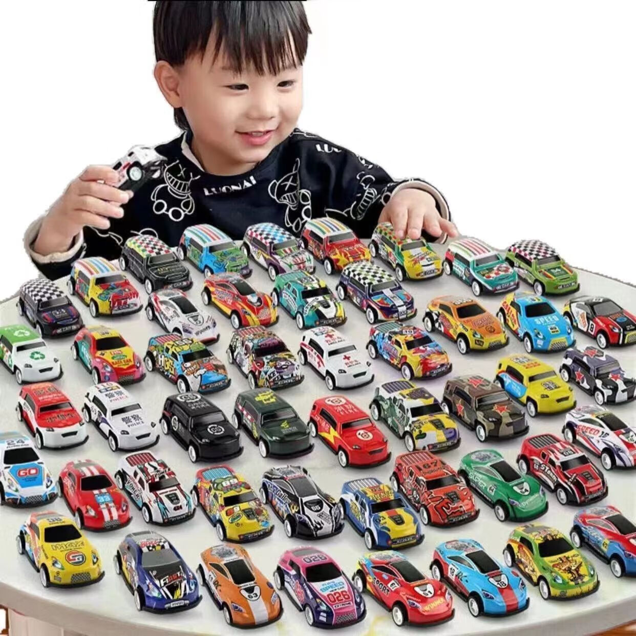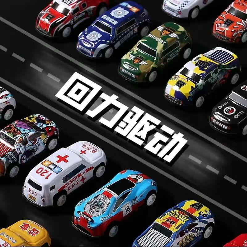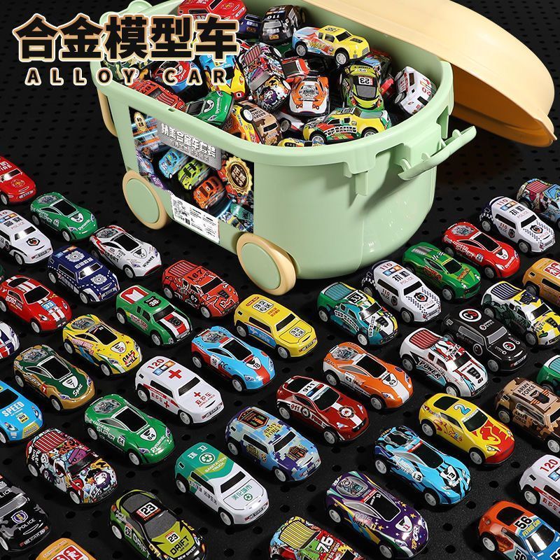 【甄选】耐摔合金回力小汽车迷你铁皮赛车桶装玩具车惯性小汽车玩 合金小汽车-随机款-4.5cm