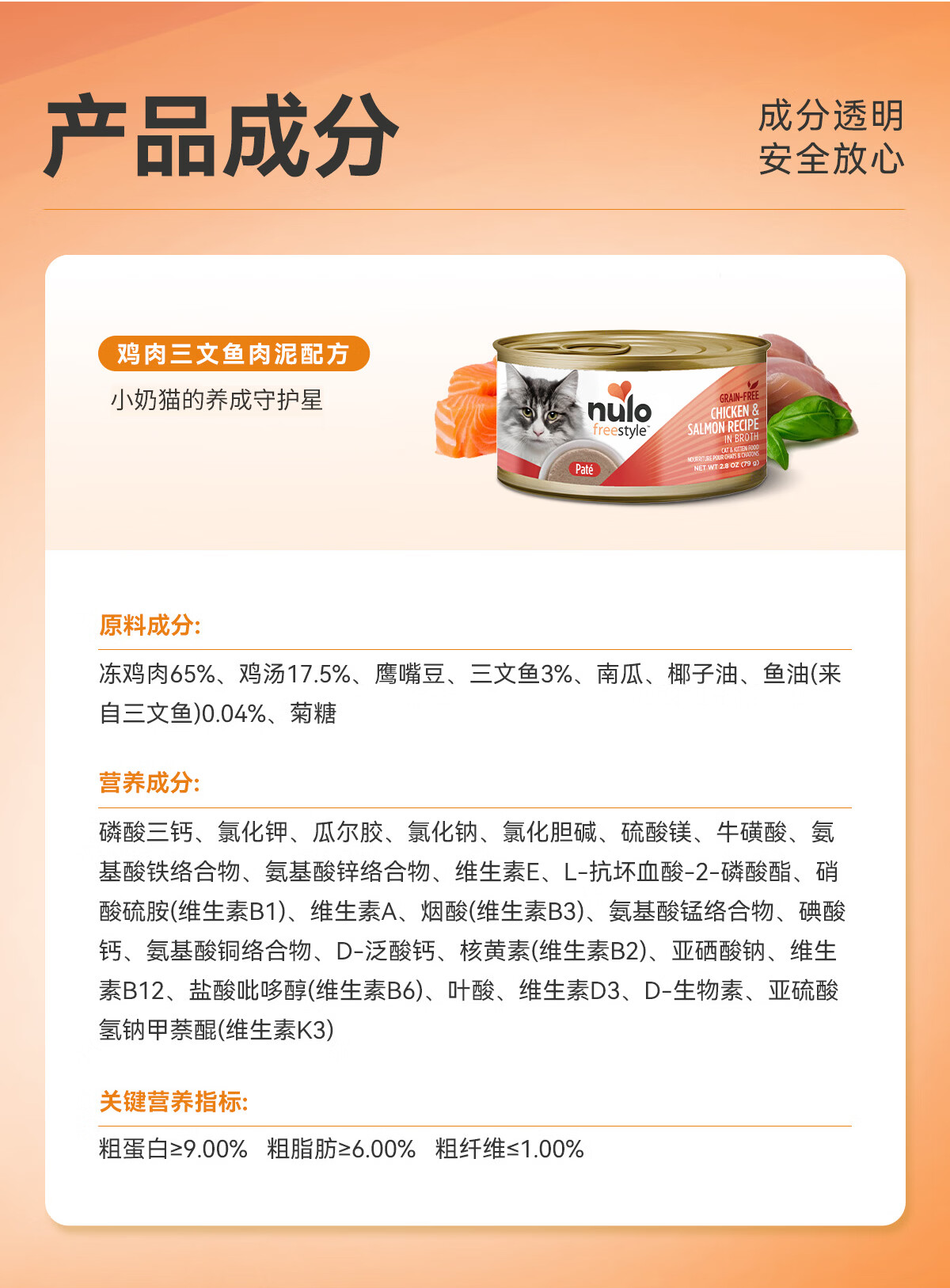 NULO自由天性猫罐头主食湿粮全价高蛋白低敏易消化成猫幼猫粮 混合口味|79g*6 26年10月