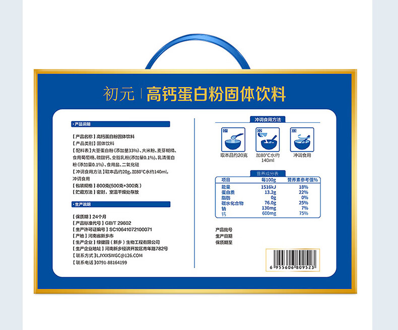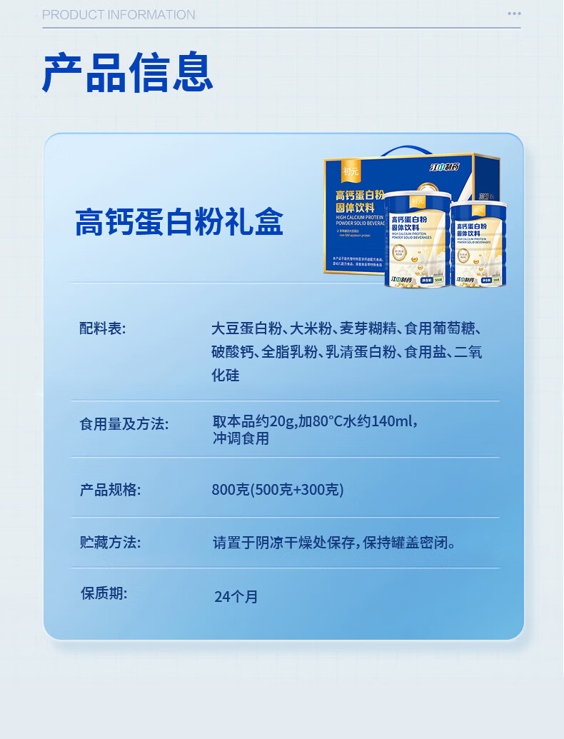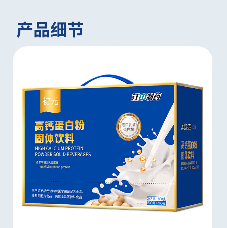 江中蛋白粉礼盒 妇女节送礼妈妈长辈 父母老年人补充营养高钙蛋白粉 800g礼盒(500g/罐+300g/罐)