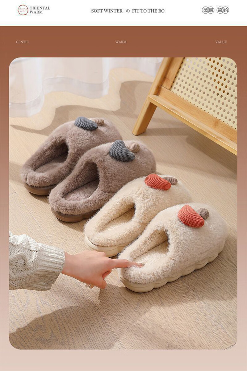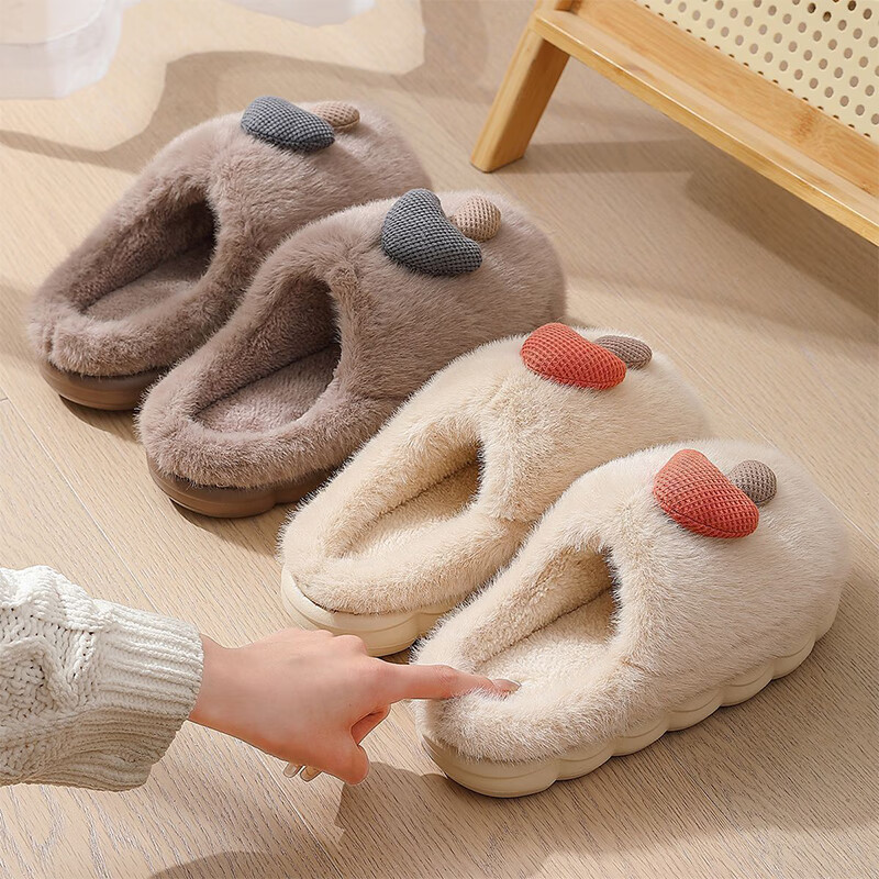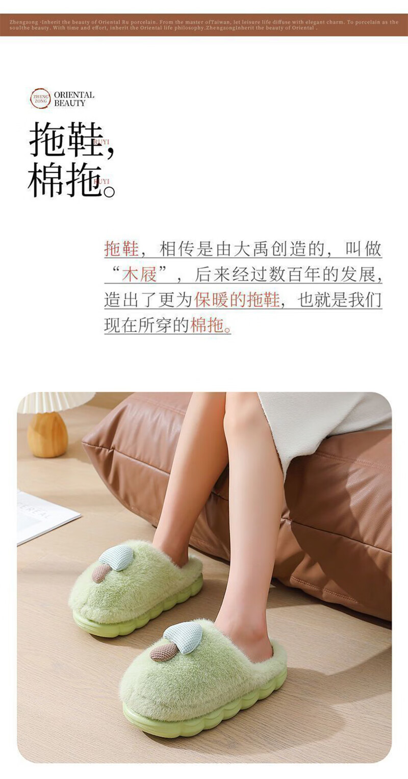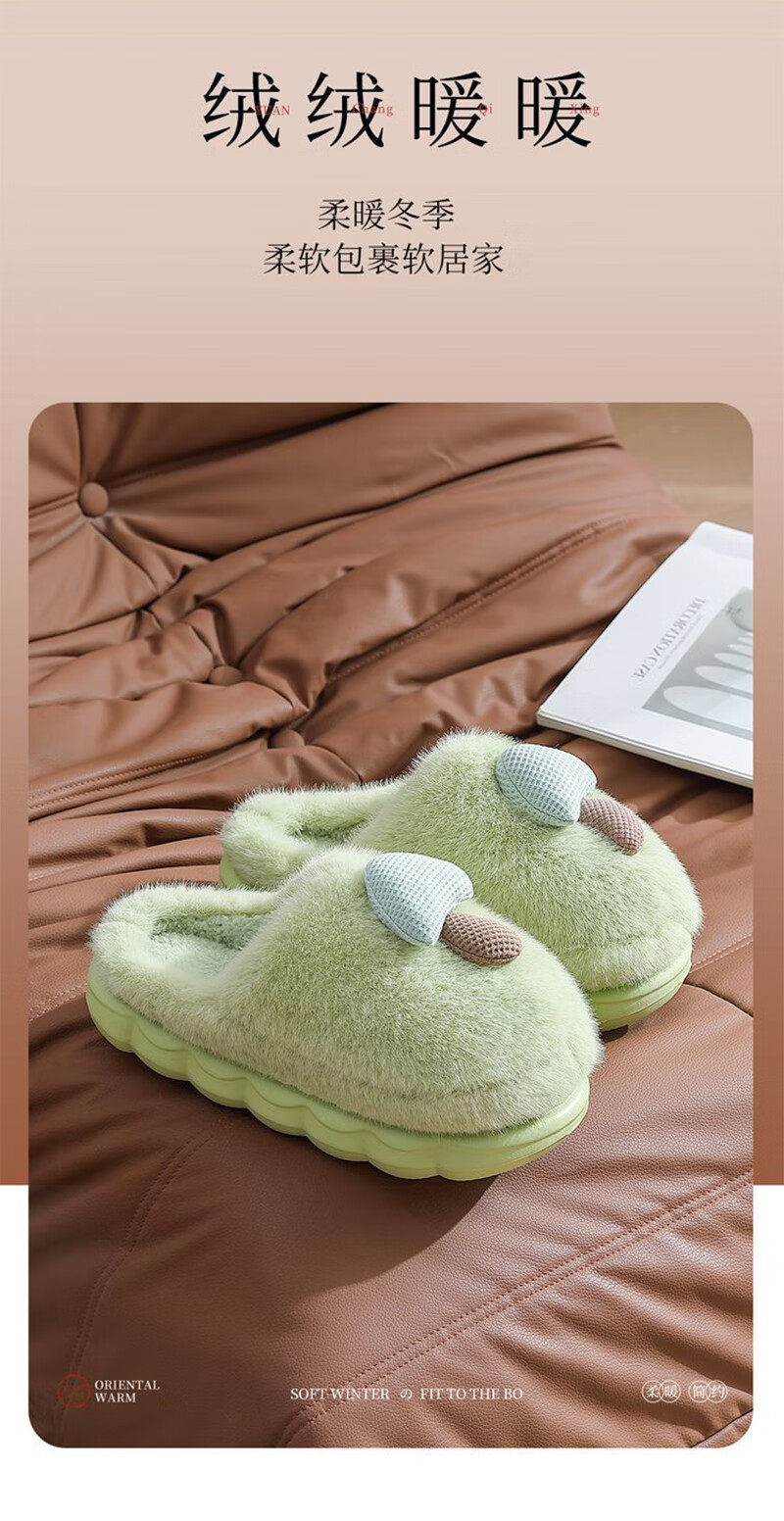 卡通棉拖鞋蘑菇毛绒女冬季保暖情侣居家室内加绒月子鞋男拖鞋包根 卡其 38-39 (适合37-38)