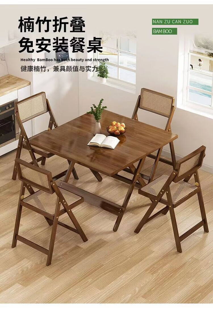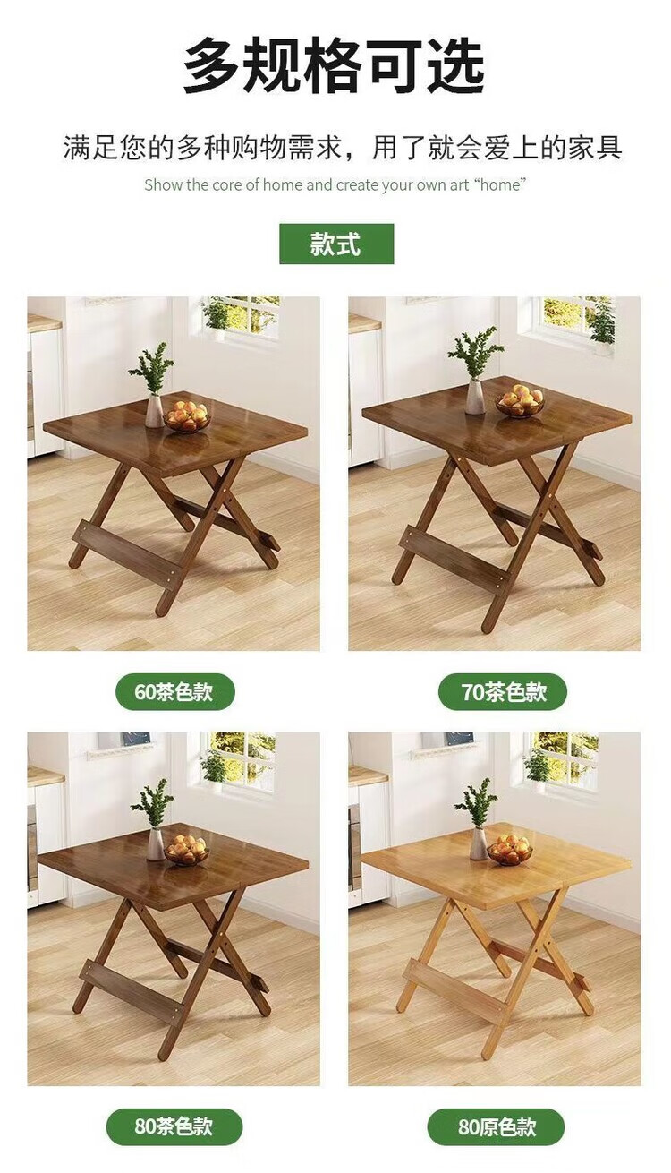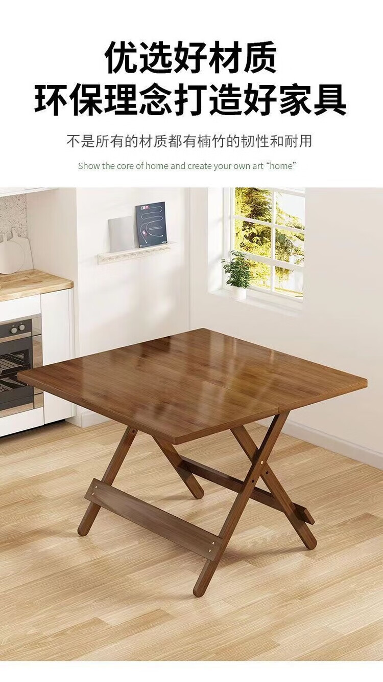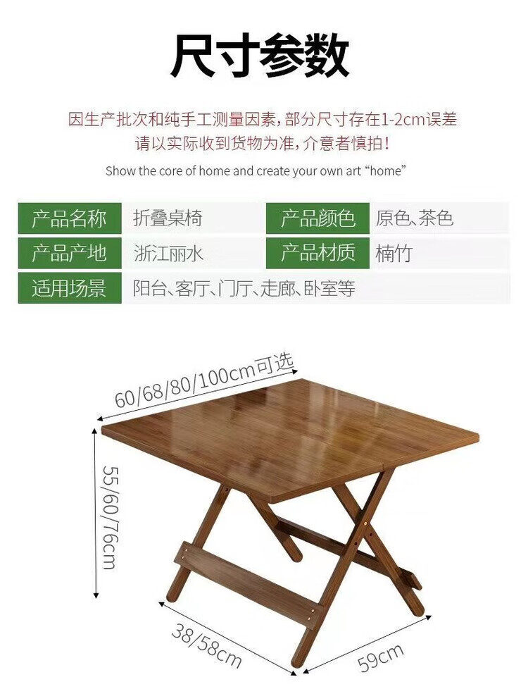 素树家居楠竹折叠桌子餐桌家用小户型饭桌户外便携简易方桌正方形阳台摆摊 茶色 单桌 60cm 60*60*74cm【高脚】款