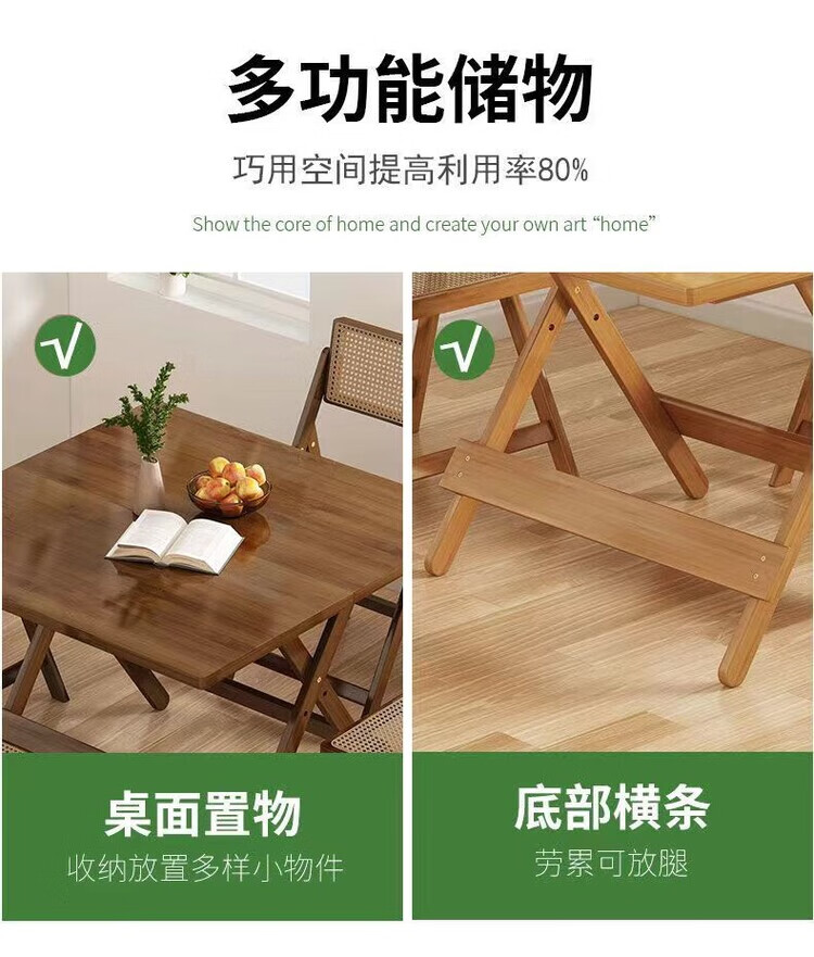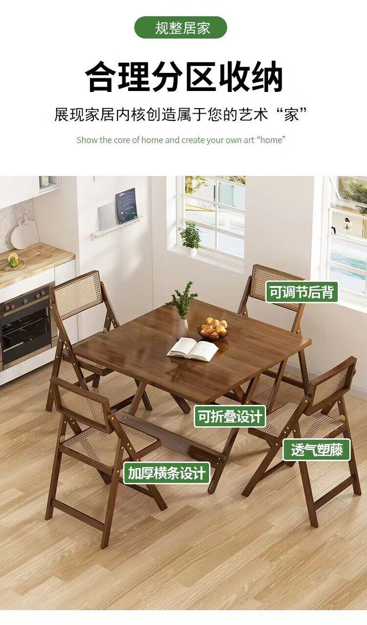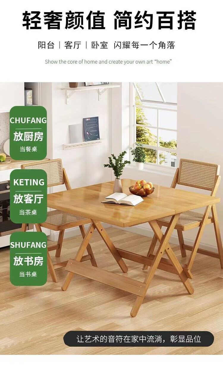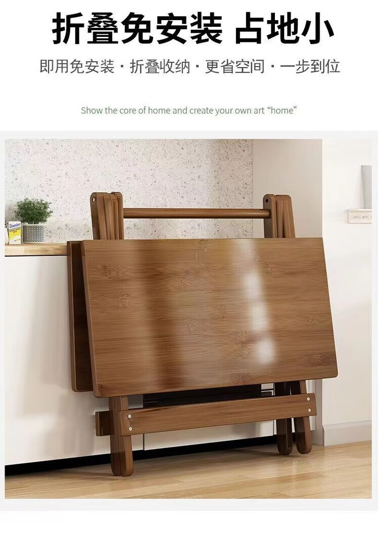 素树家居楠竹折叠桌子餐桌家用小户型饭桌户外便携简易方桌正方形阳台摆摊 茶色 单桌 60cm 60*60*74cm【高脚】款