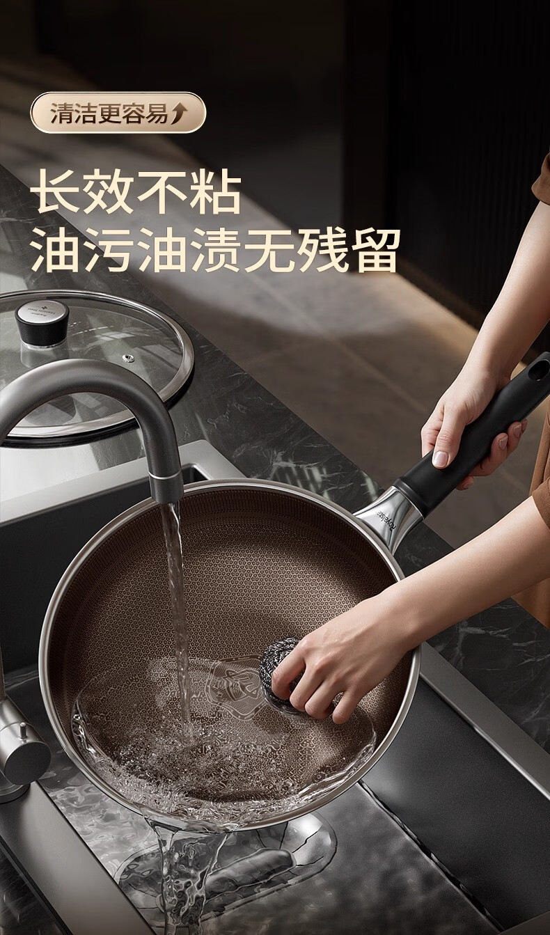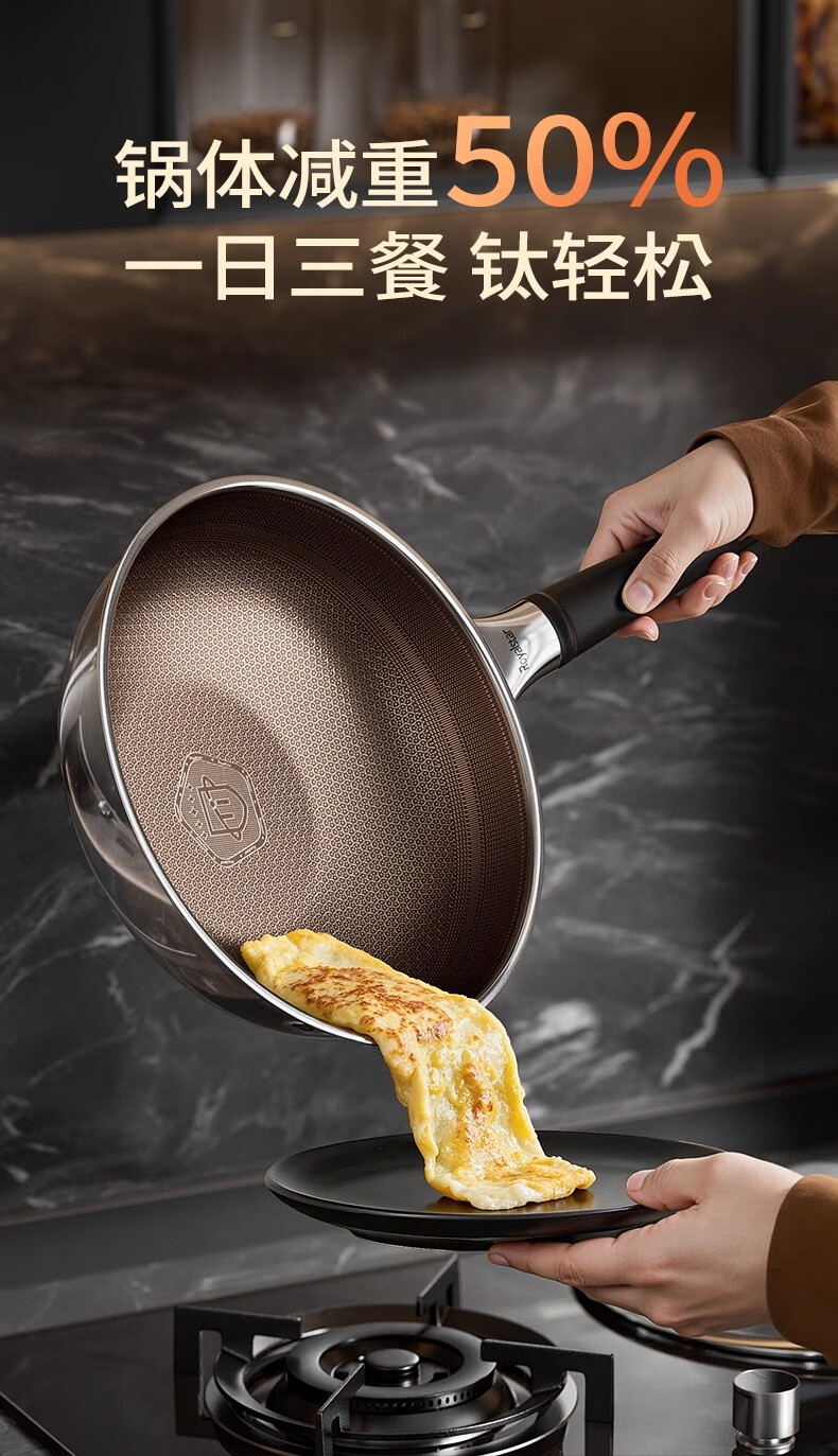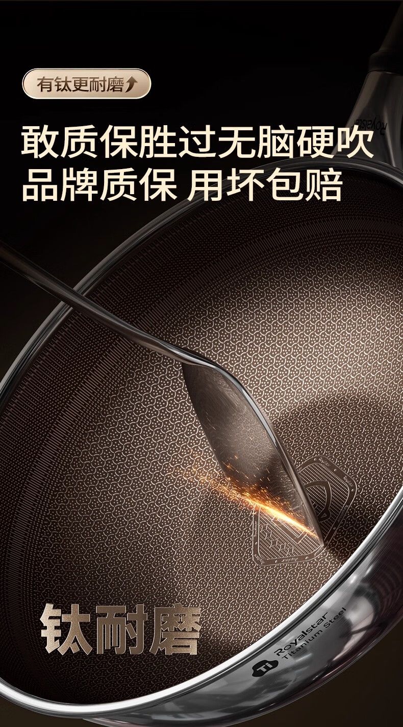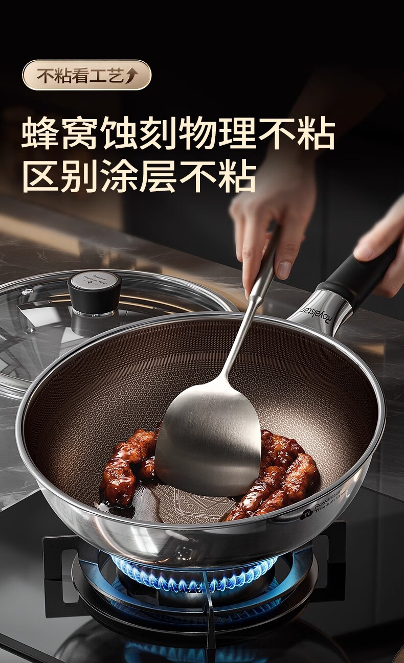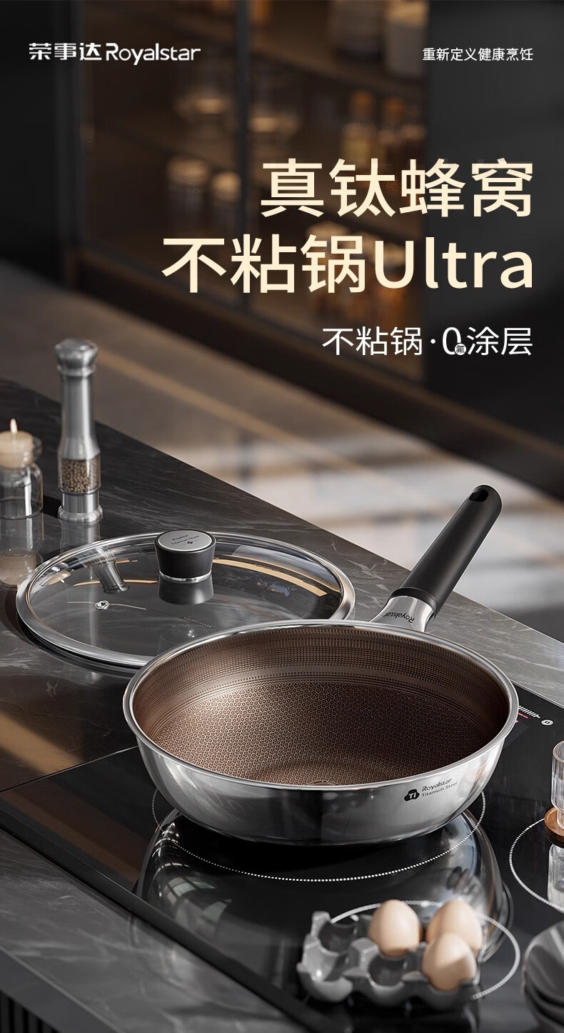 荣事达有钛0氟涂层不粘锅家用电磁炉燃气灶通用蜂窝不锈钢炒菜锅 【新升级Ultra款】 0氟涂层 有钛耐磨 30cm