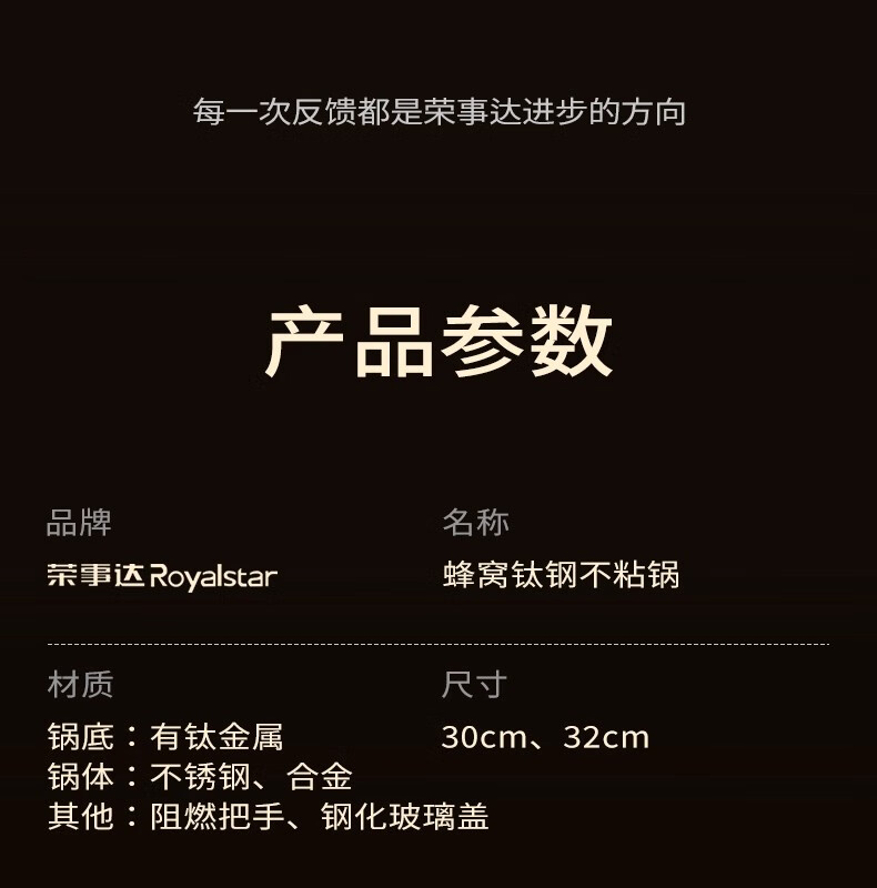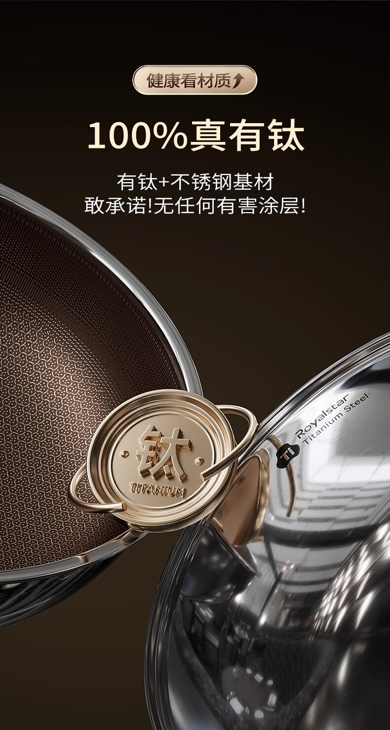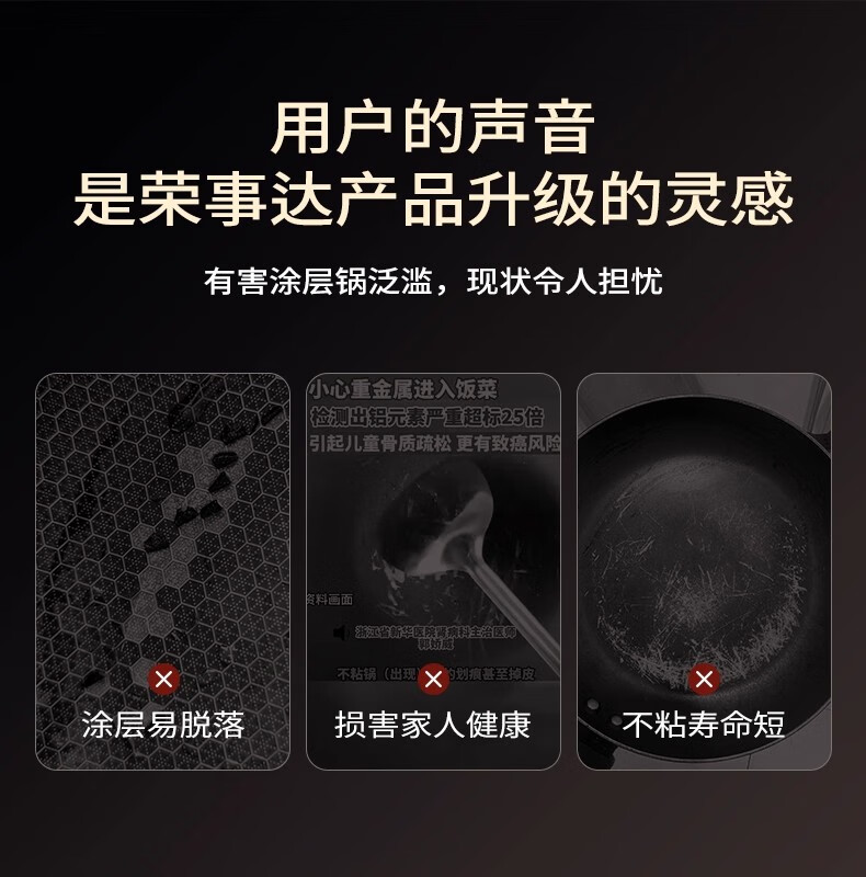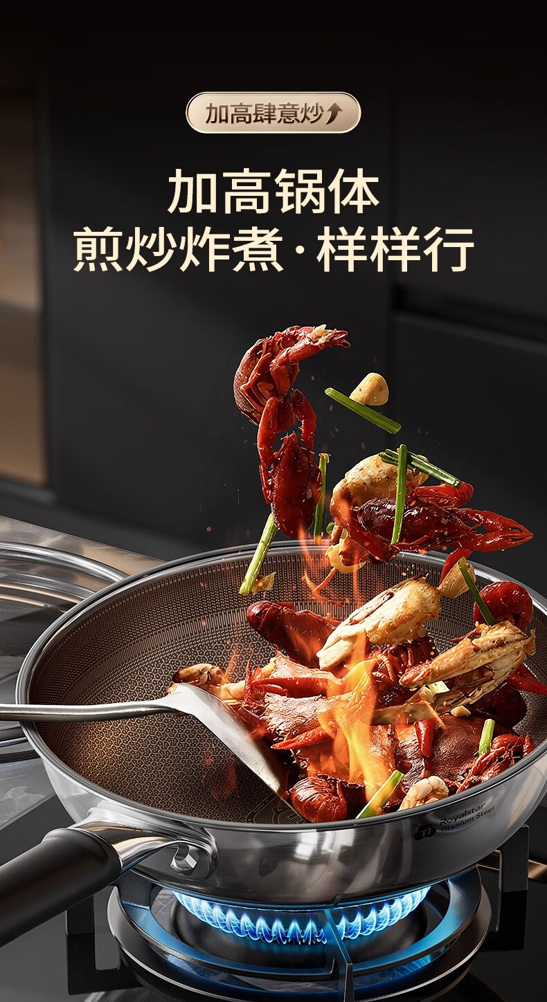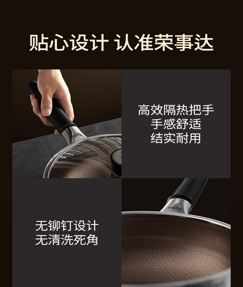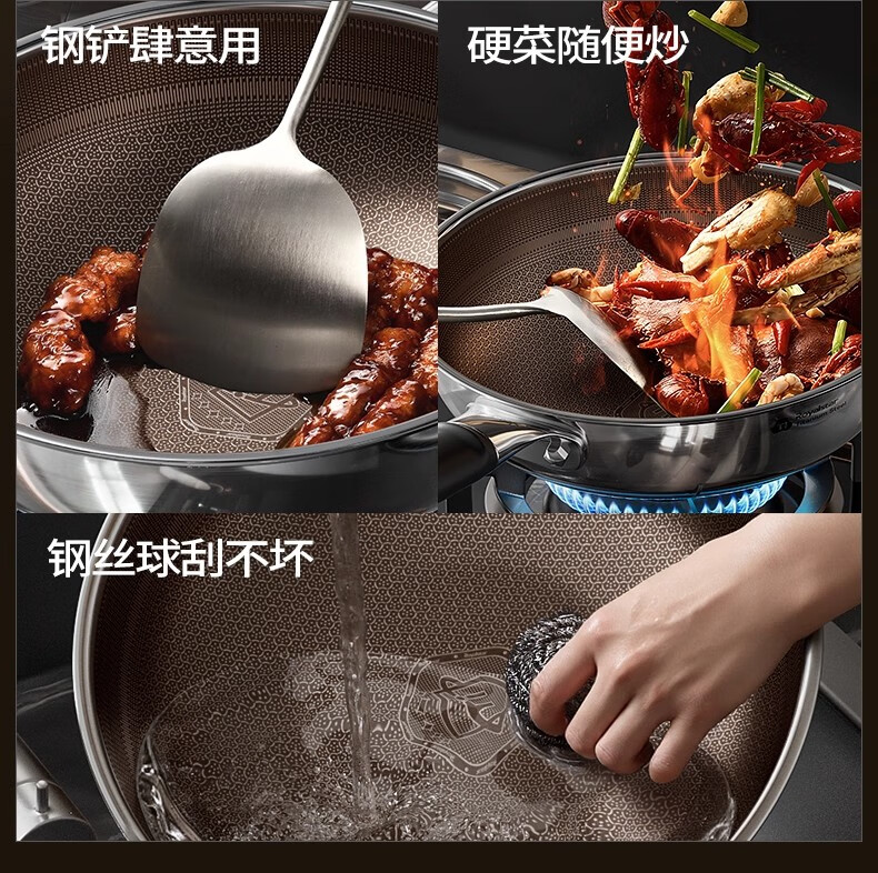 荣事达有钛0氟涂层不粘锅家用电磁炉燃气灶通用蜂窝不锈钢炒菜锅 【新升级Ultra款】 0氟涂层 有钛耐磨 30cm