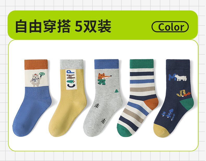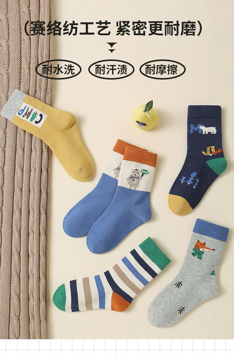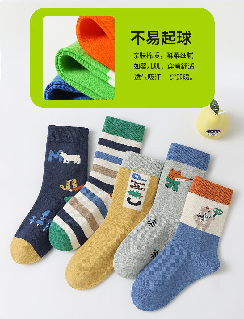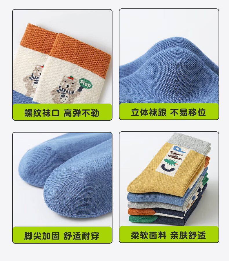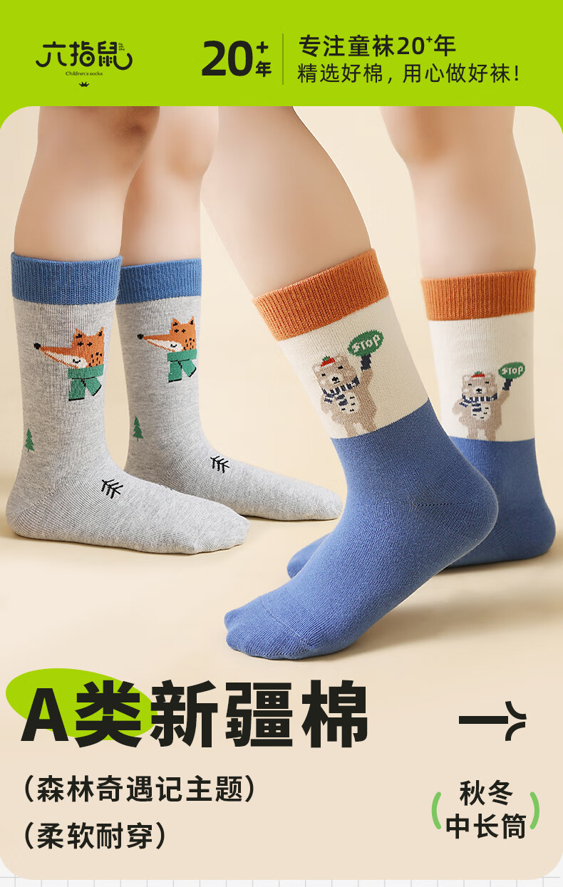 六指鼠儿童袜子春秋款精梳棉袜男童中大童小孩宝宝学生秋冬中筒长袜潮童