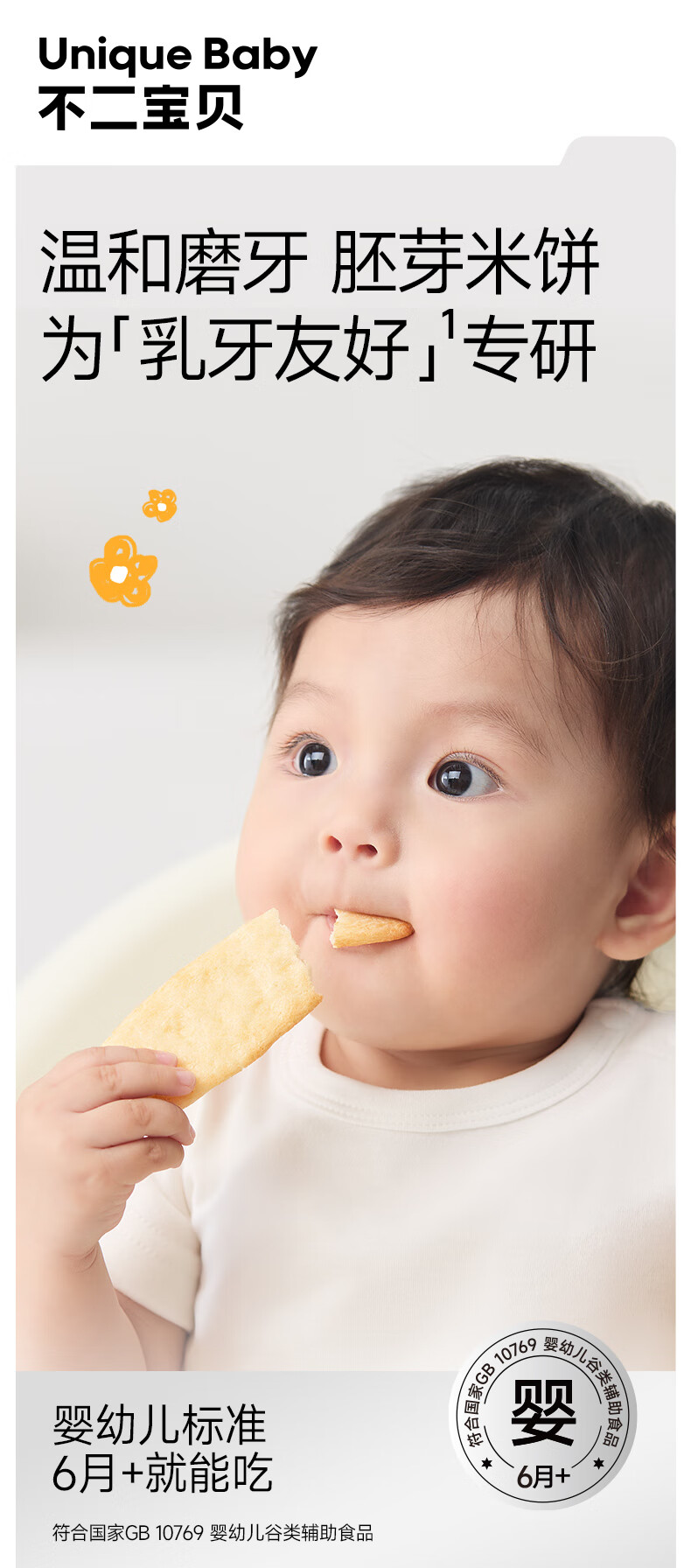 不二宝贝婴儿米饼宝宝儿童无添加小吃零食辅食6月+磨牙棒饼干原味 【2盒 | 强化钙铁锌】婴幼儿胚芽米饼原味