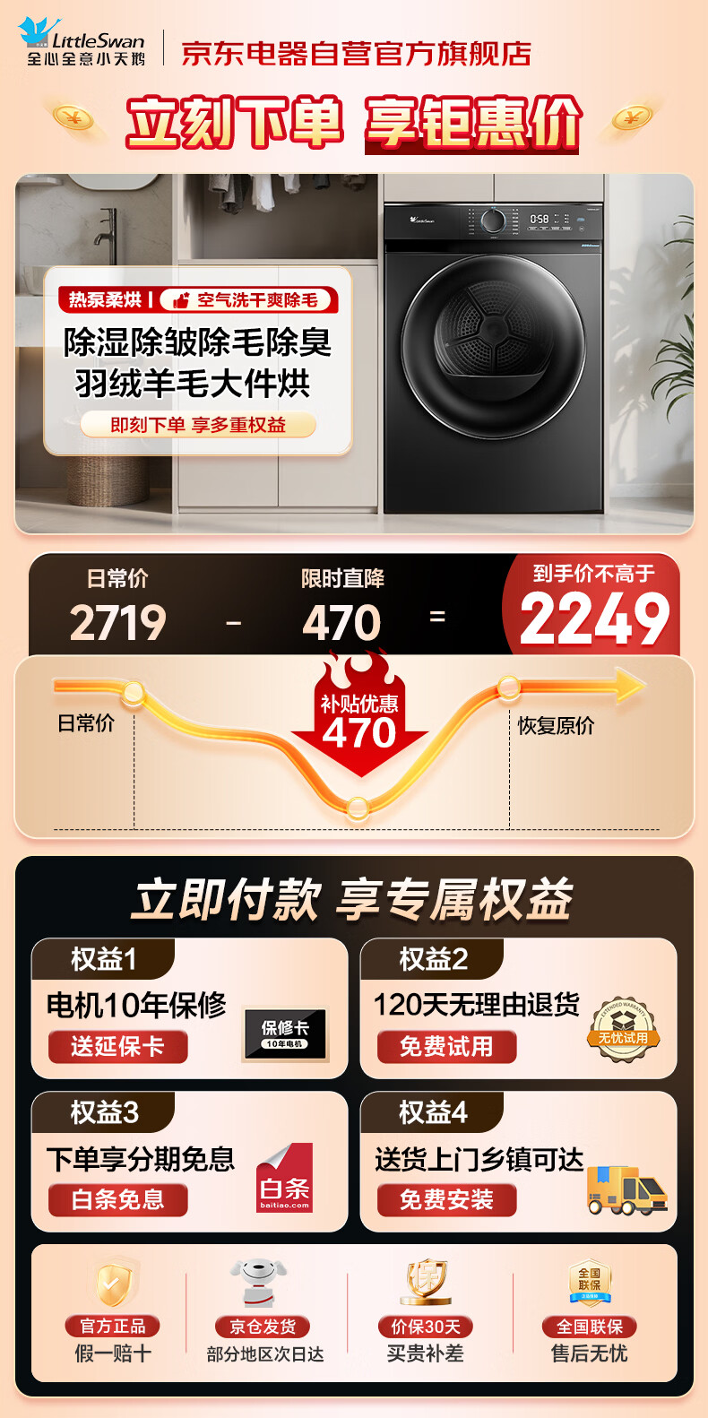 小天鹅(LittleSwan)10KG热泵烘干机家用大容量干衣机 AI正反转超薄节能省电祛味除潮家电以旧换新TH100-HL02T