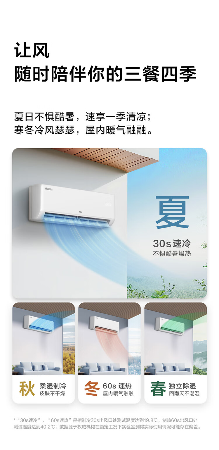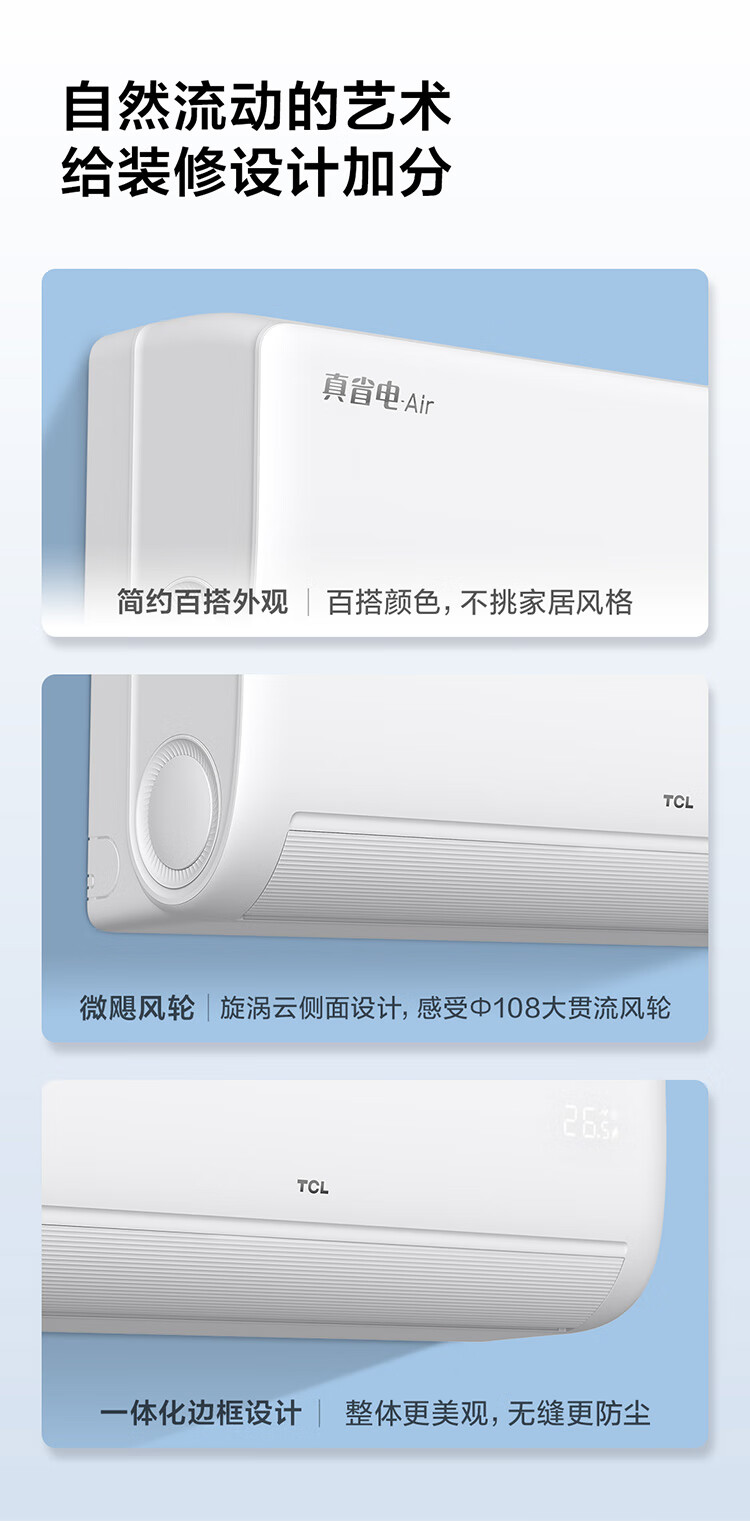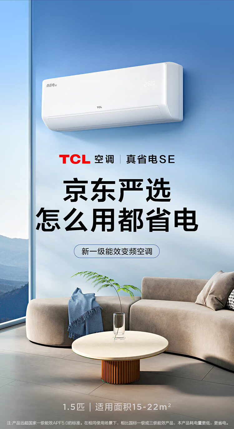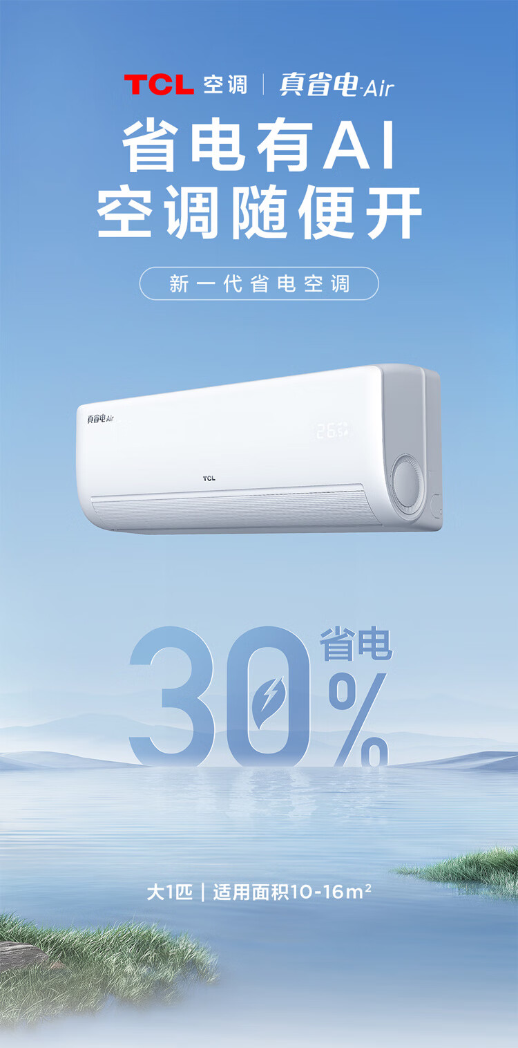 TCL空调挂机 大1.5匹/大1匹新一级能效节能变频家用冷暖 卧室自清洁壁挂式空调JD以旧换新 真省电系列 大1匹 一级能效智控自清洁