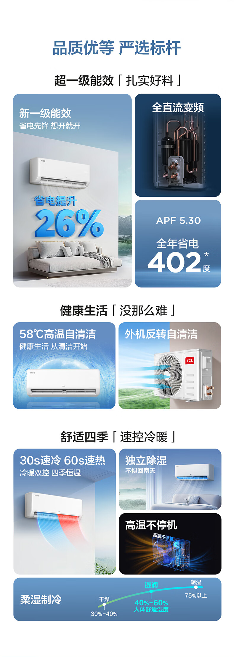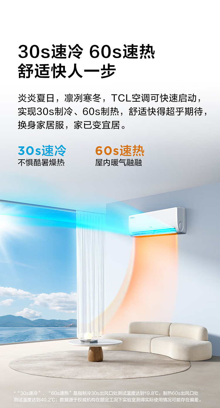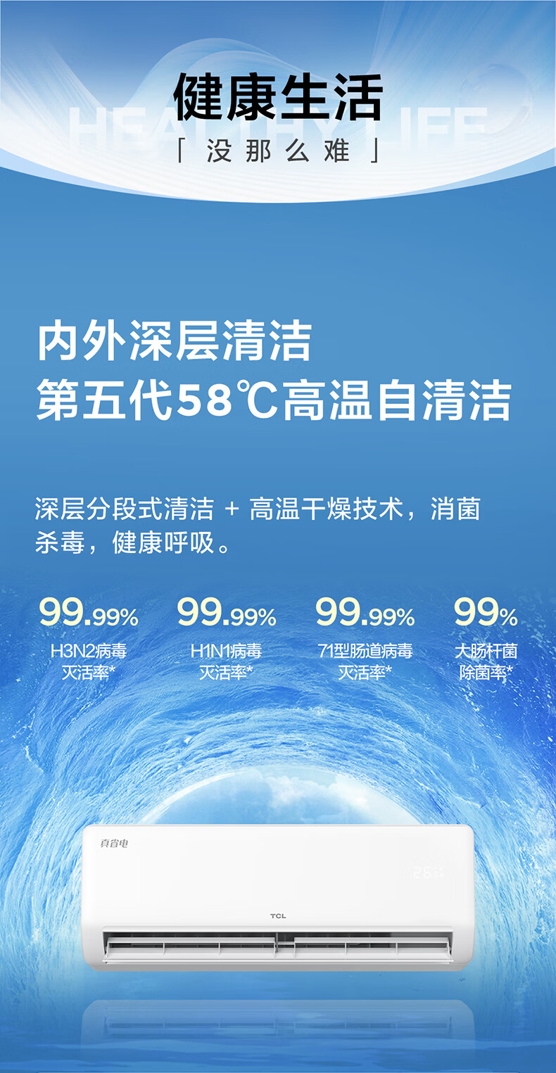TCL空调挂机 大1.5匹/大1匹新一级能效节能变频家用冷暖 卧室自清洁壁挂式空调JD以旧换新 真省电系列 大1匹 一级能效智控自清洁