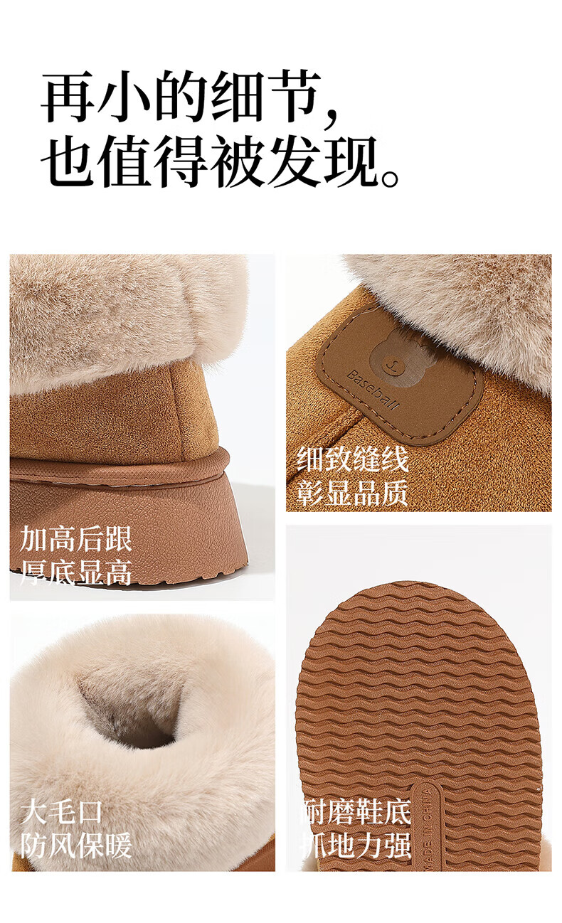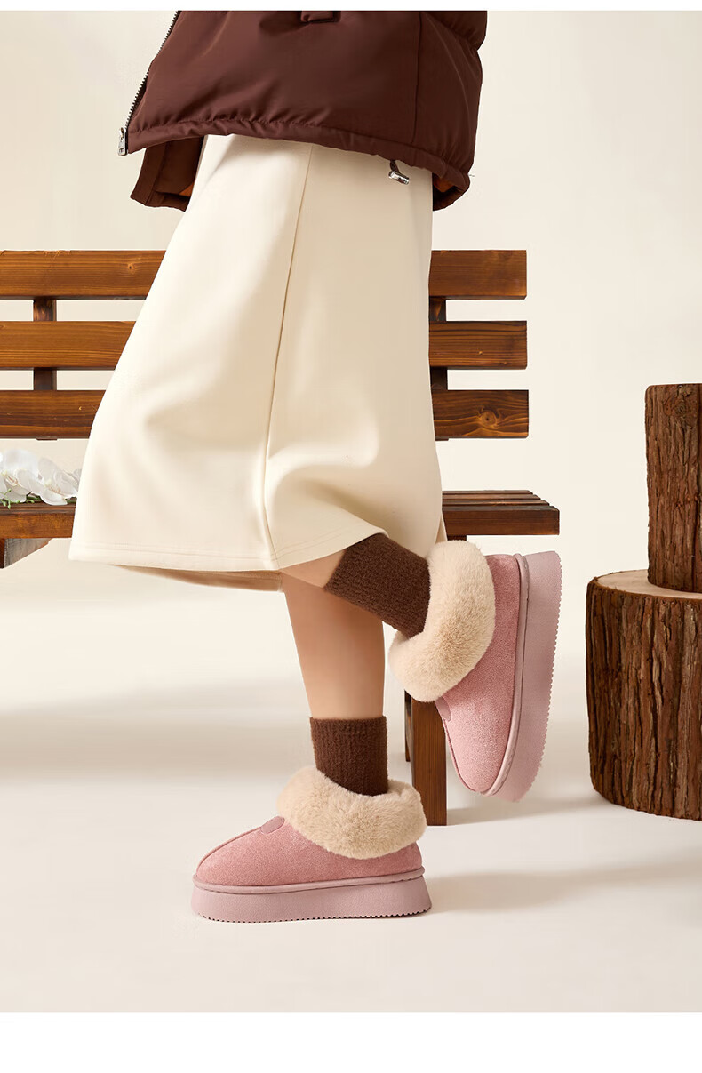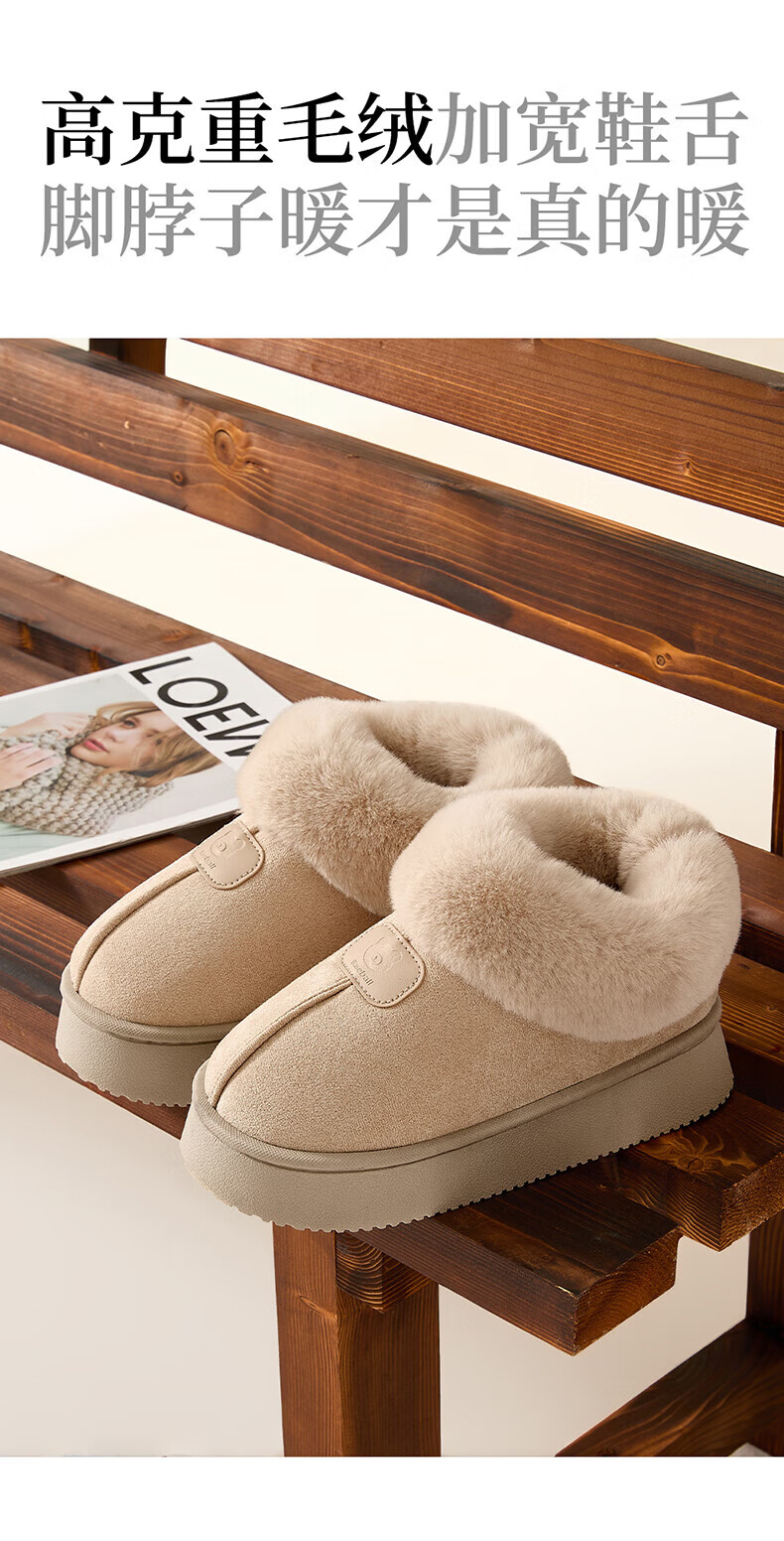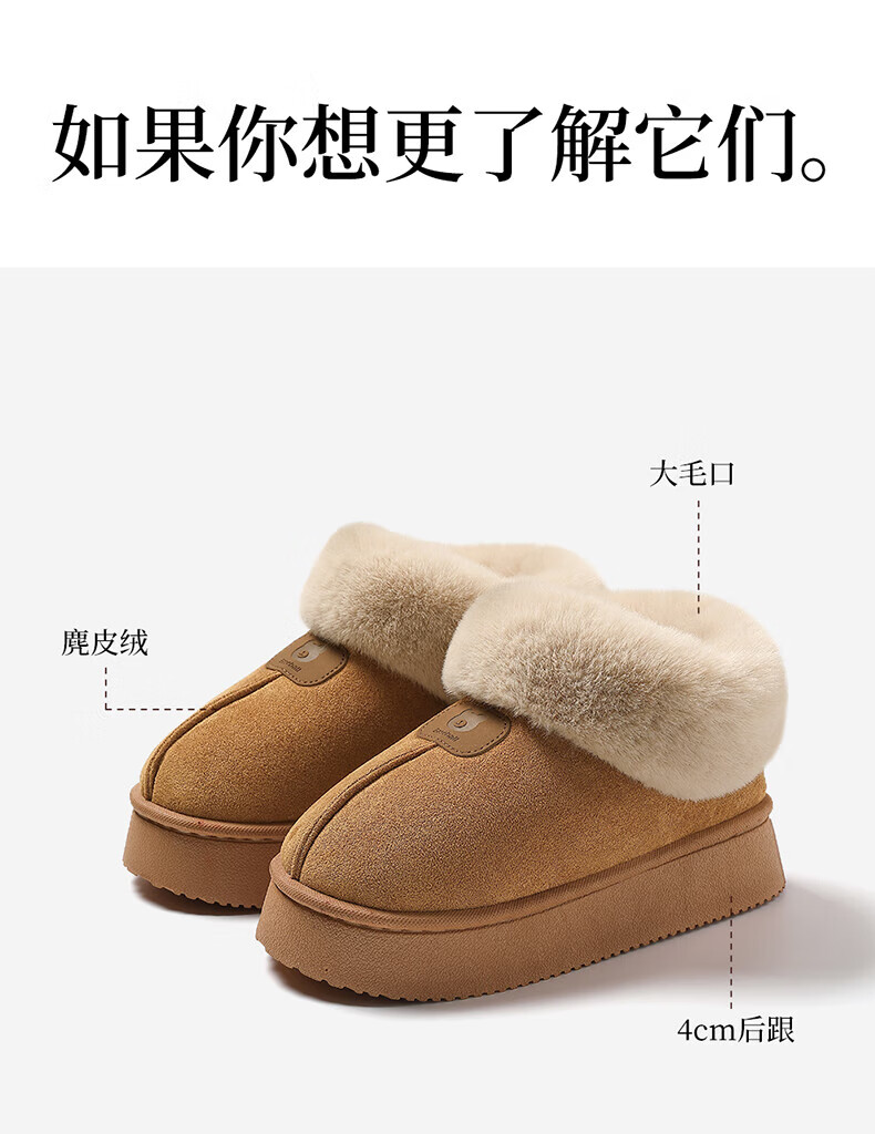 FZT棉拖鞋女款秋冬季毛毛绒保暖加厚底高帮防滑外穿雪地靴子棉鞋女款 卡其 36-37 【标准码】