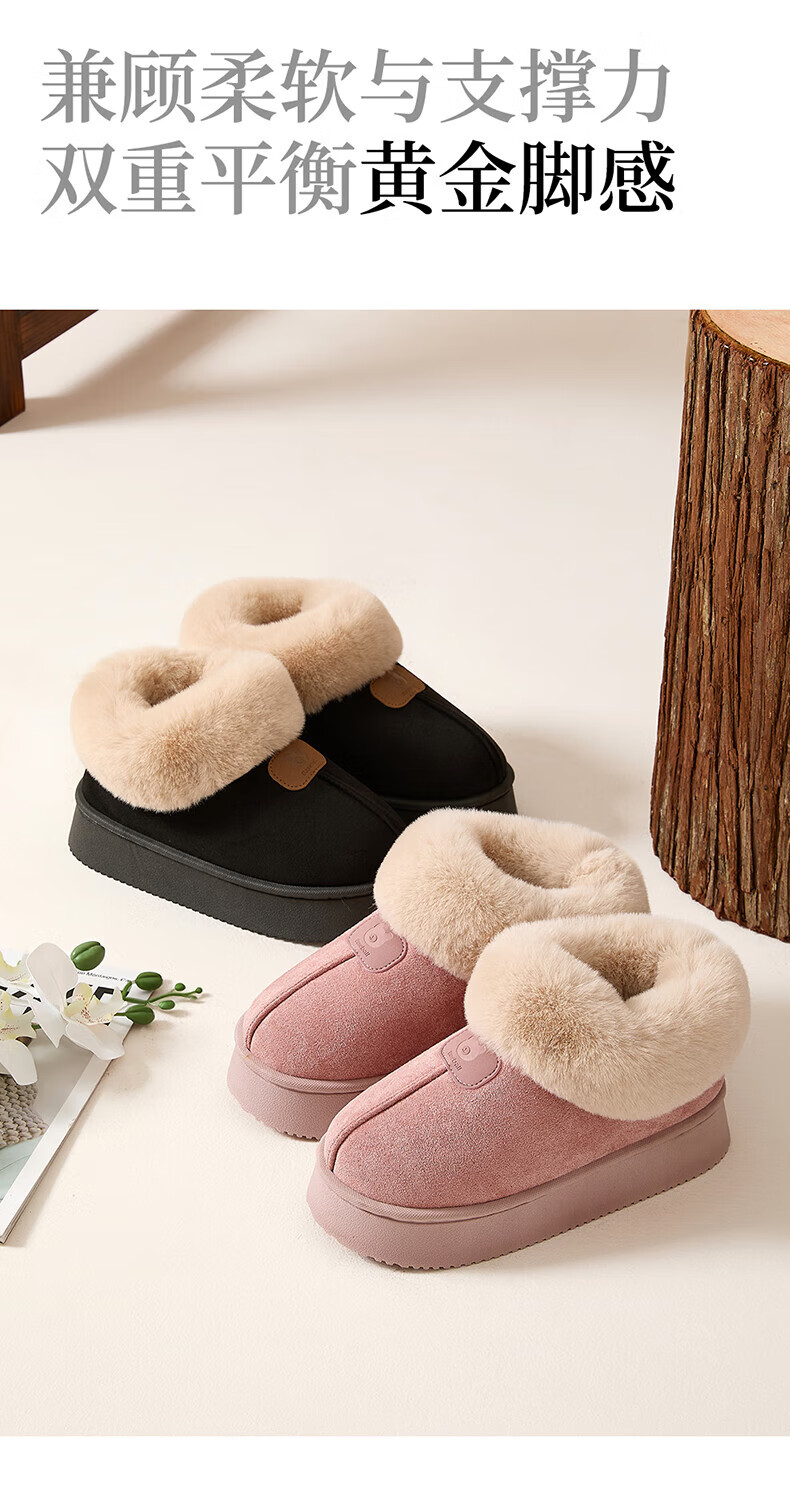 FZT保暖厚底棉拖鞋女士冬季2025新款室内居家防滑加绒加厚毛绒棉鞋男 黑色 36-37 适合35-36