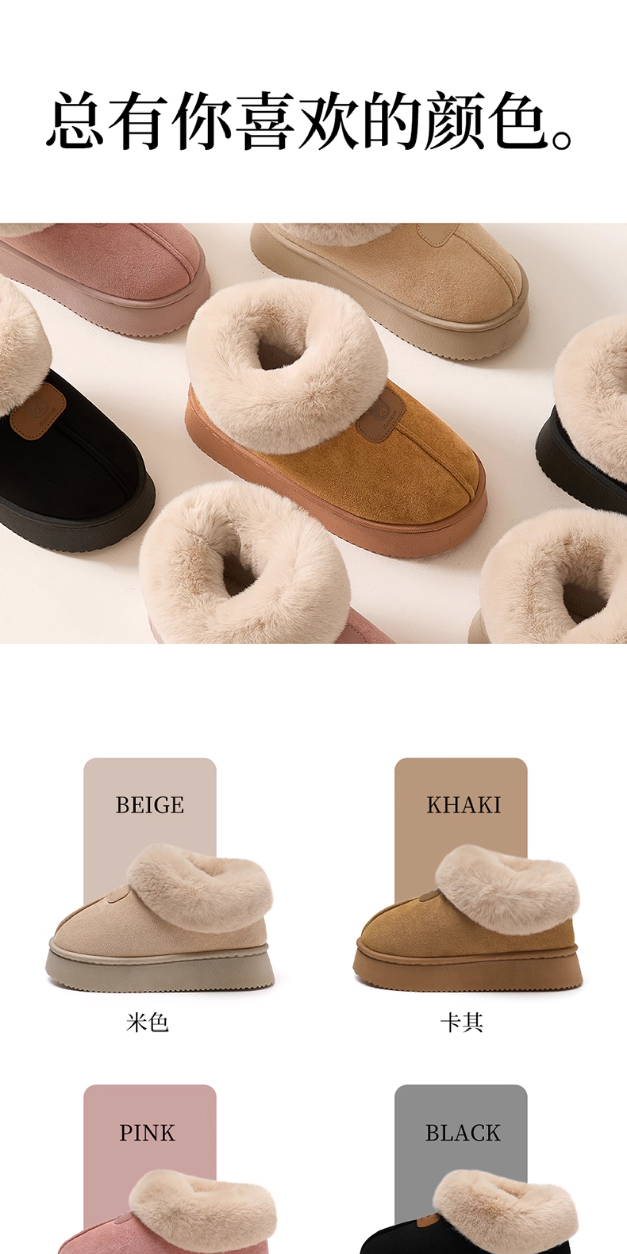 FZT可爱棉鞋女2025新款外穿厚底防滑包跟土拨鼠保暖毛绒棉鞋男冬情侣 卡其【土拨鼠】 38-39 标准码