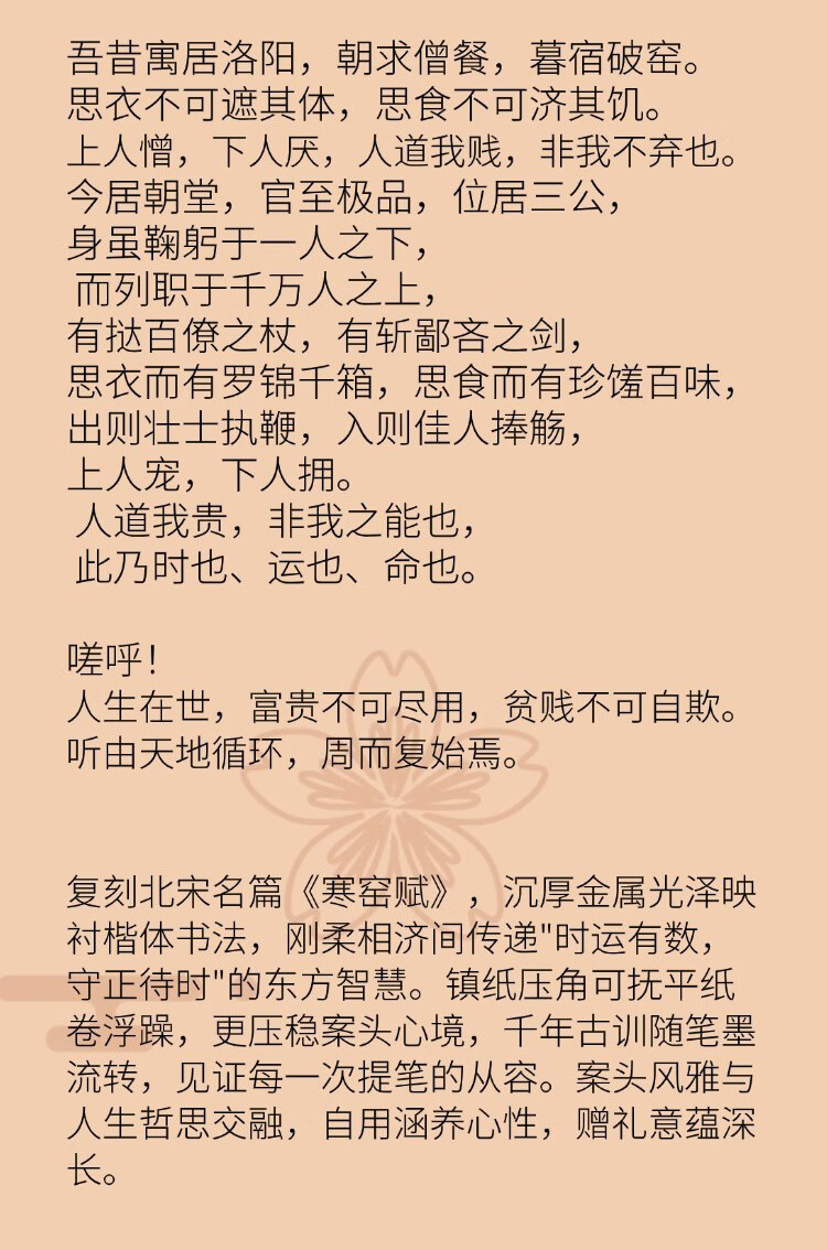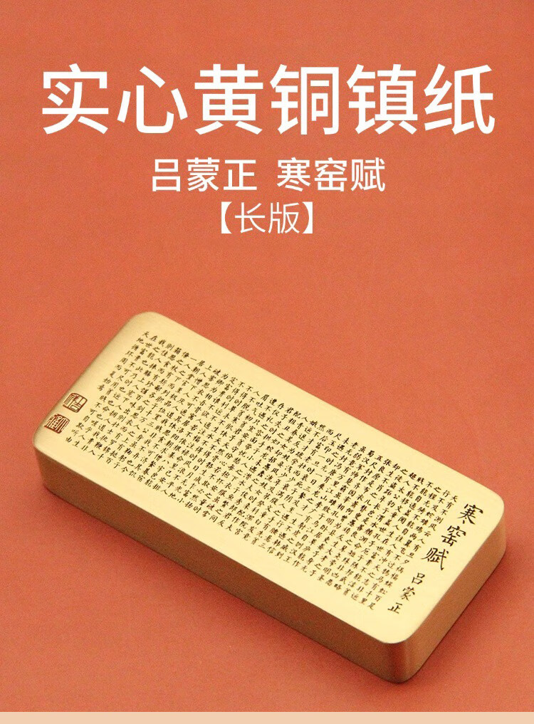 维班 吕蒙正寒窑赋黄铜镇纸长版文房四宝书法压纸实心金属镇尺 【长版】吕蒙正寒窑赋黄铜镇纸15X40X90mm