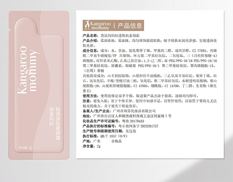 袋鼠妈妈羊初乳轻透焕肌素颜霜护肤素颜霜提气肤色护肤品2g*4