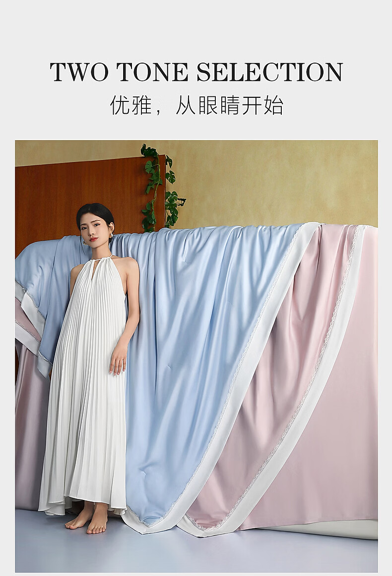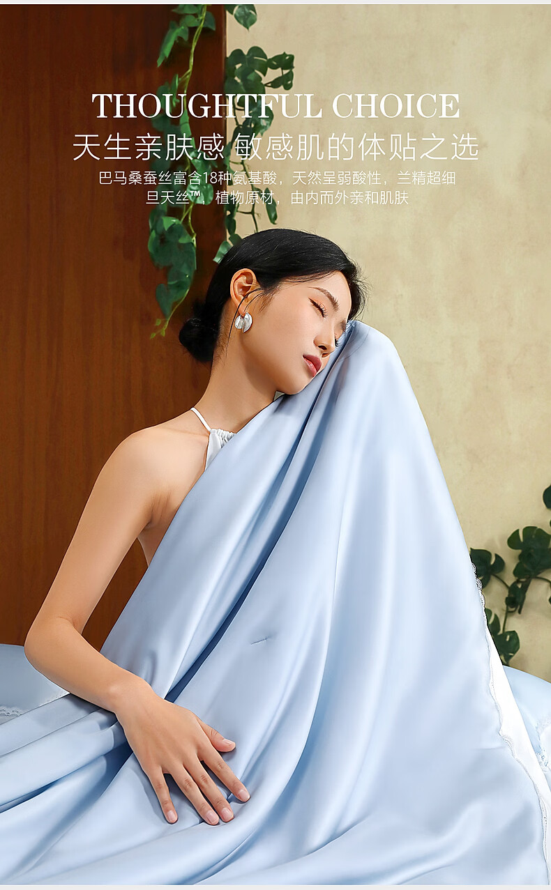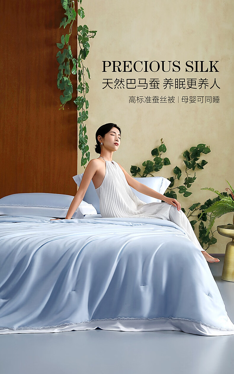 水星家纺100%桑蚕丝夏被空调被夏凉被子A类抑菌可机洗 巴马素白·舒肤蕾水洗桑蚕丝夏被(薄雾粉) 150cm*200cm