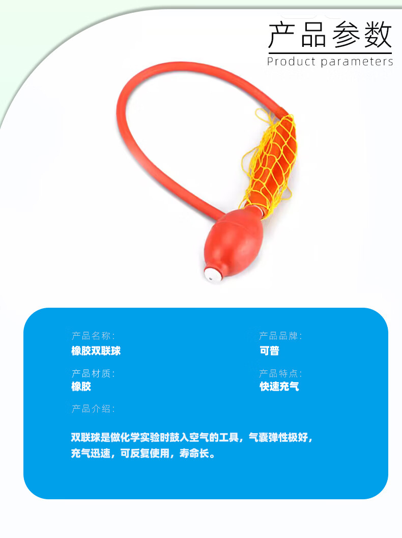 可普实验室双联球打气球橡胶二连加按压球配有防爆网二联双连球气体采集器