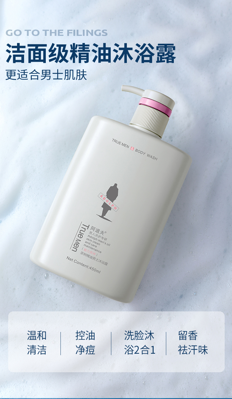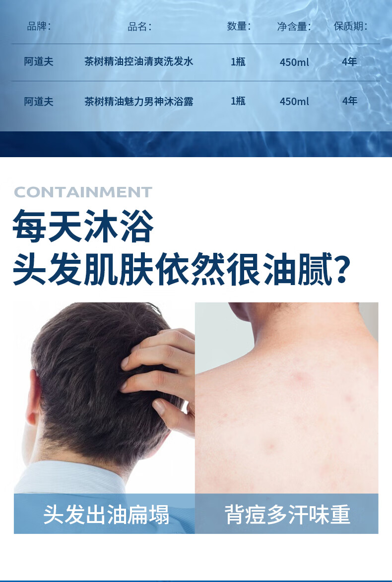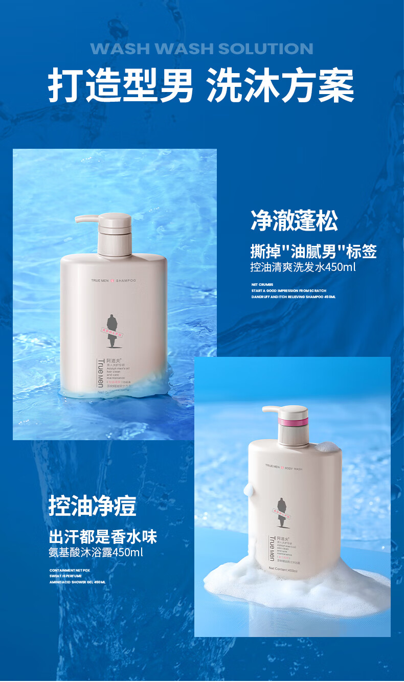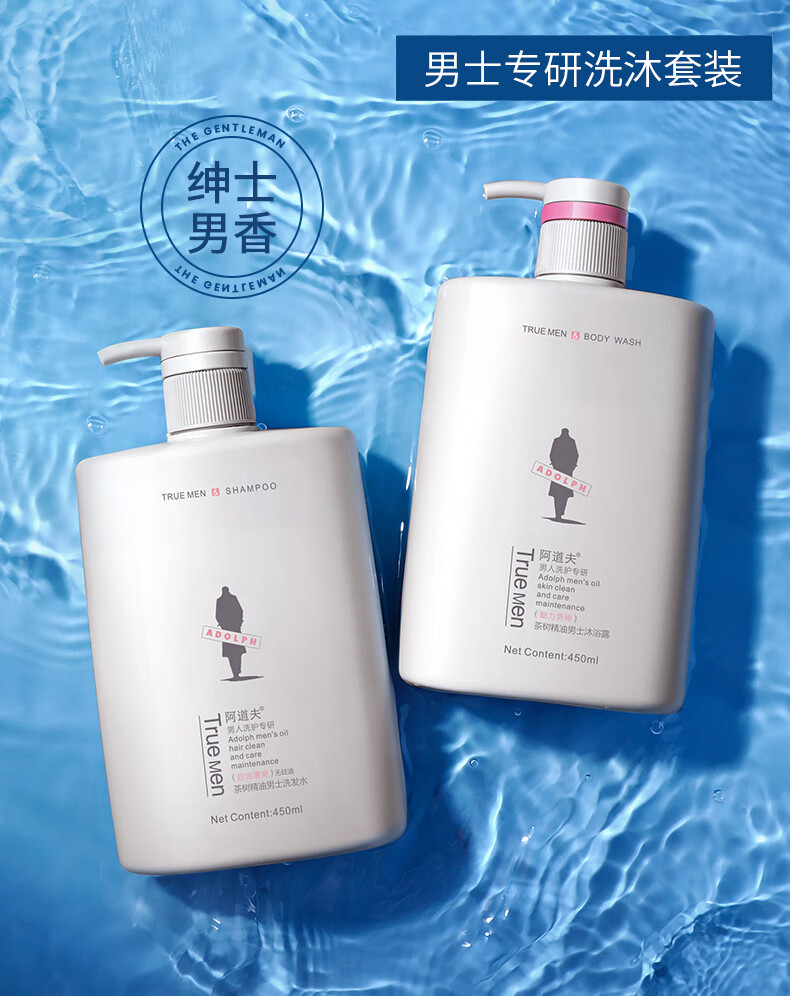 阿道夫男士洗发水沐浴露男士专用套装茶树精油蓬松去屑净痘止痒深层清洁 去屑洗发水450ml+沐浴露450ml
