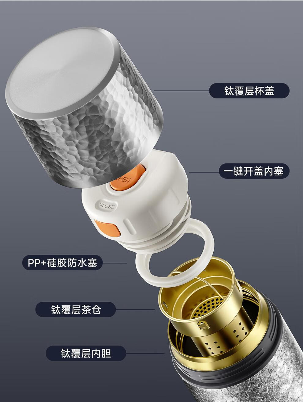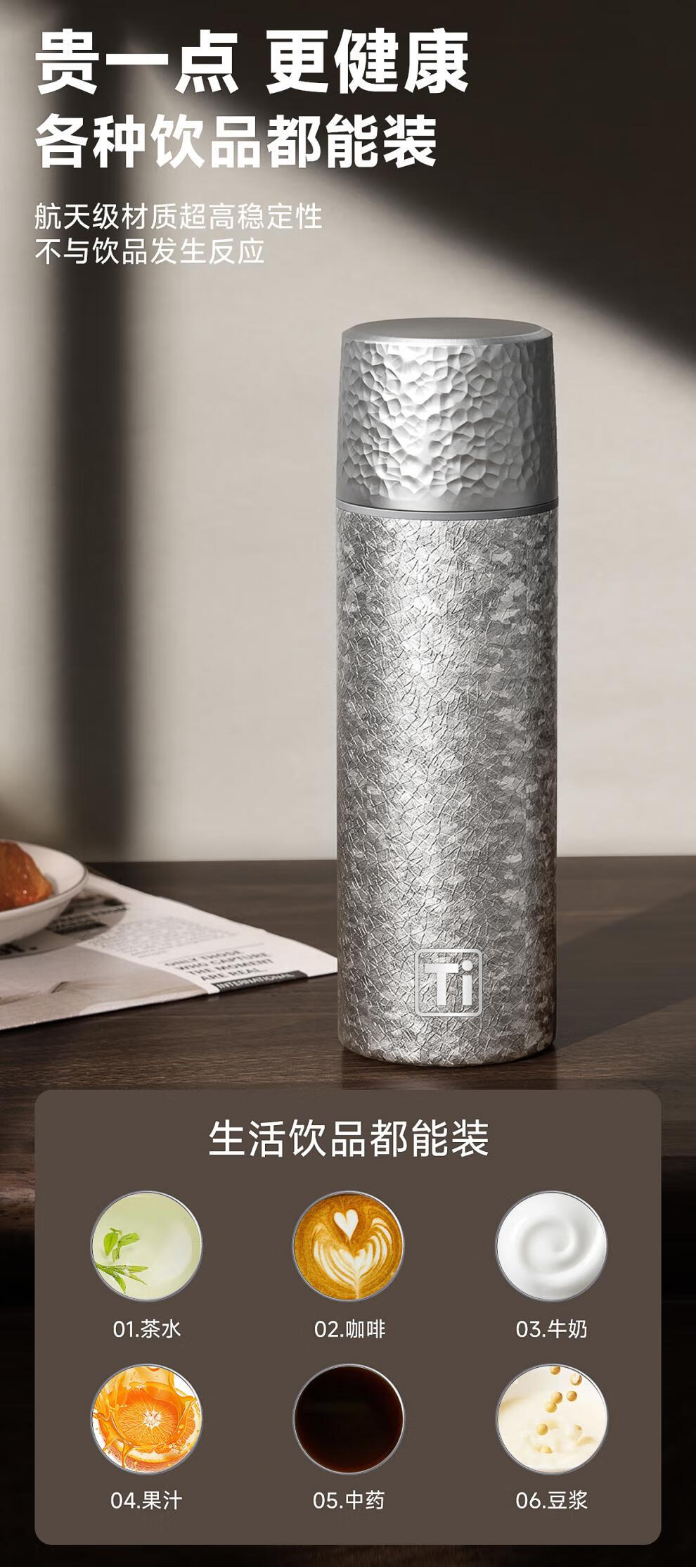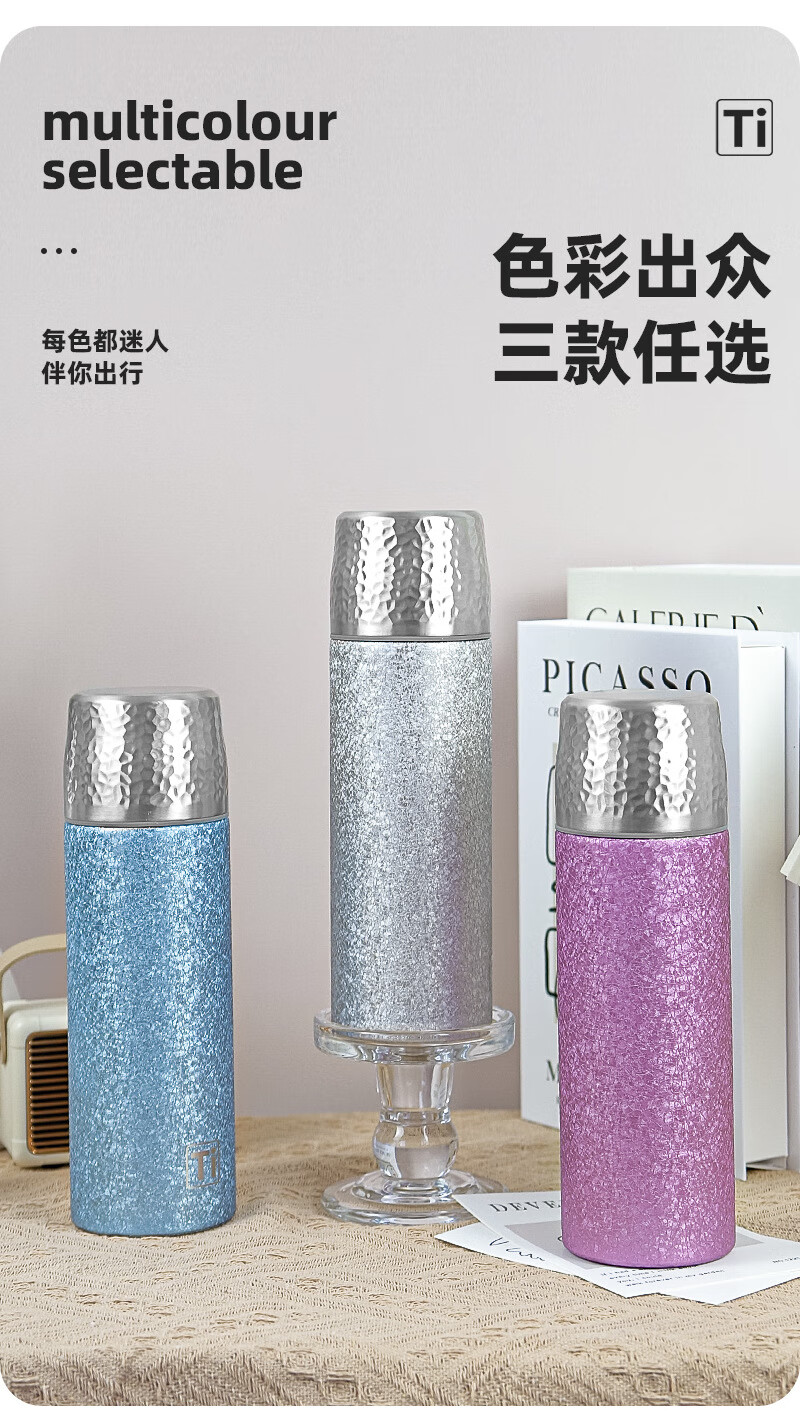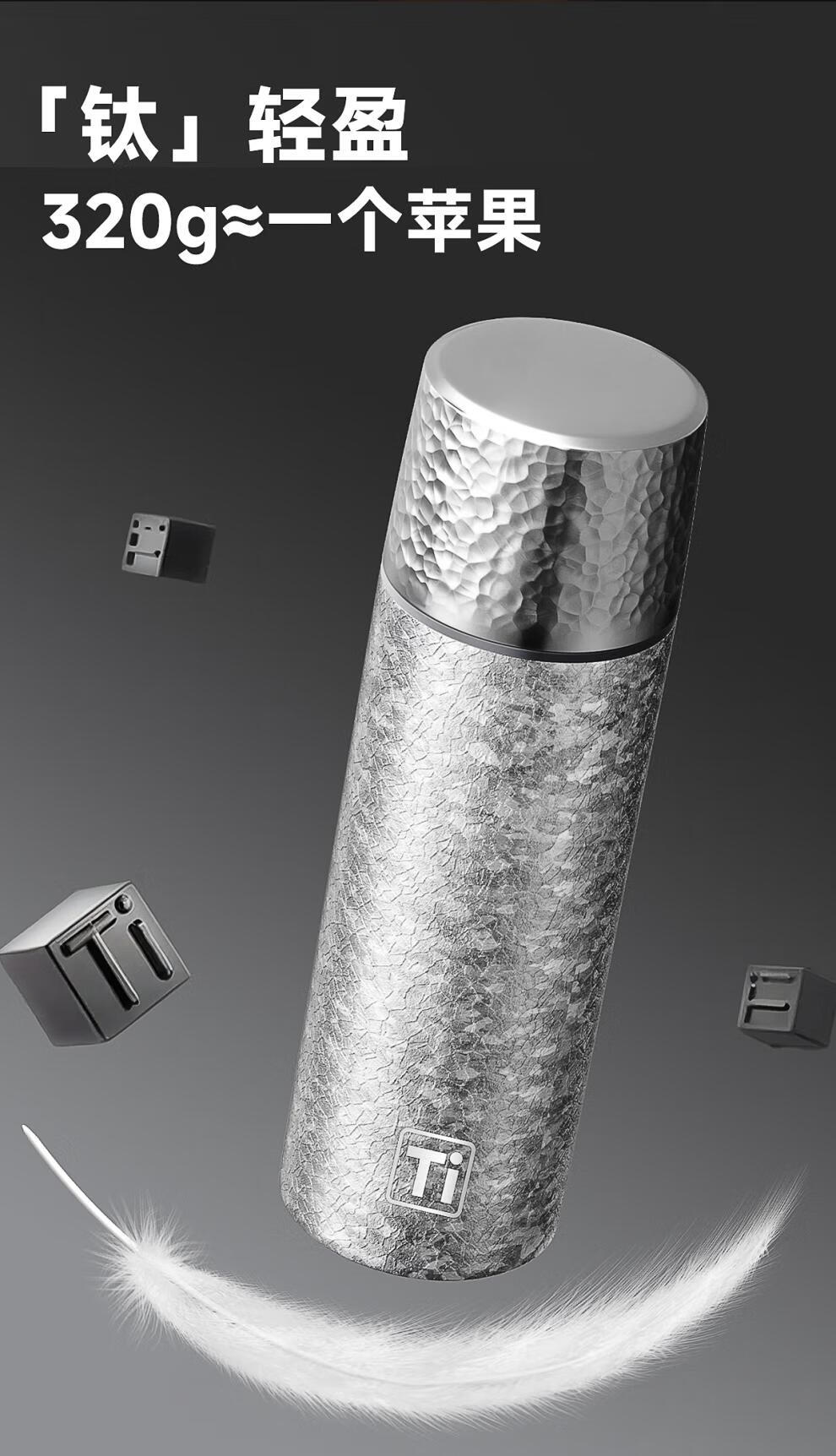 德国品质钛保温杯2026新款钛杯茶水分离杯泡茶杯男女士便携高颜值 雪花银【99.7%钛覆层】 500ml
