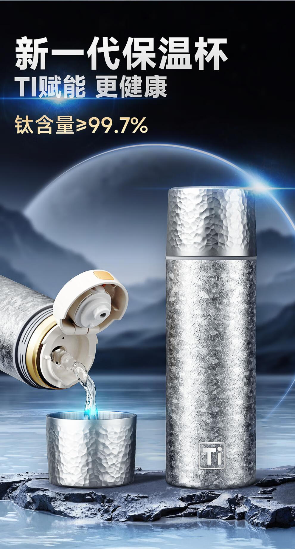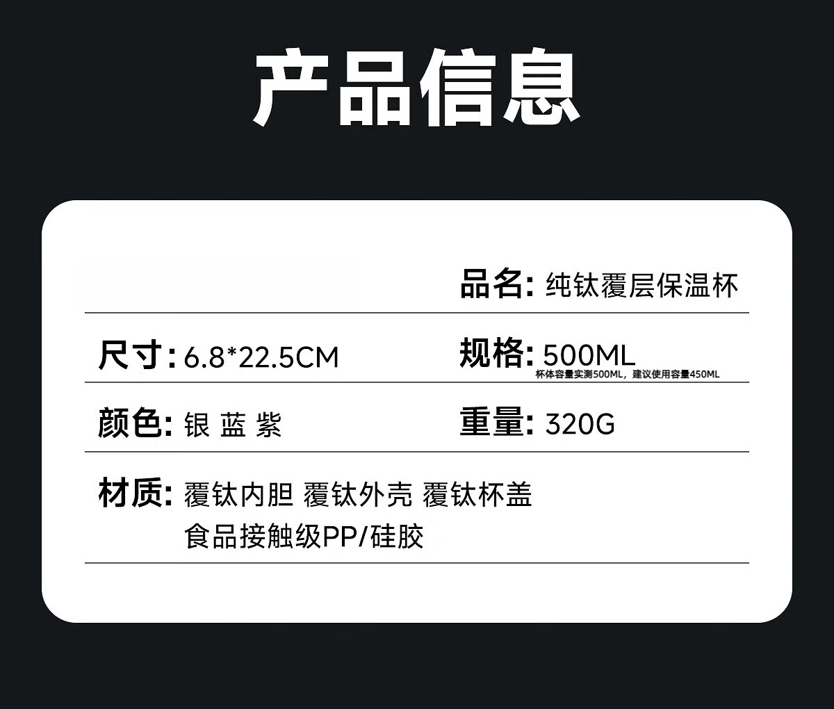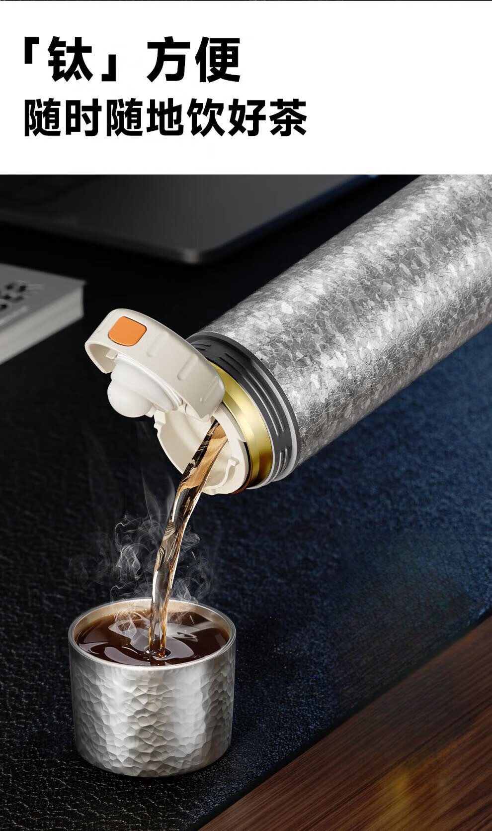 德国品质钛保温杯2026新款钛杯茶水分离杯泡茶杯男女士便携高颜值 雪花银【99.7%钛覆层】 500ml