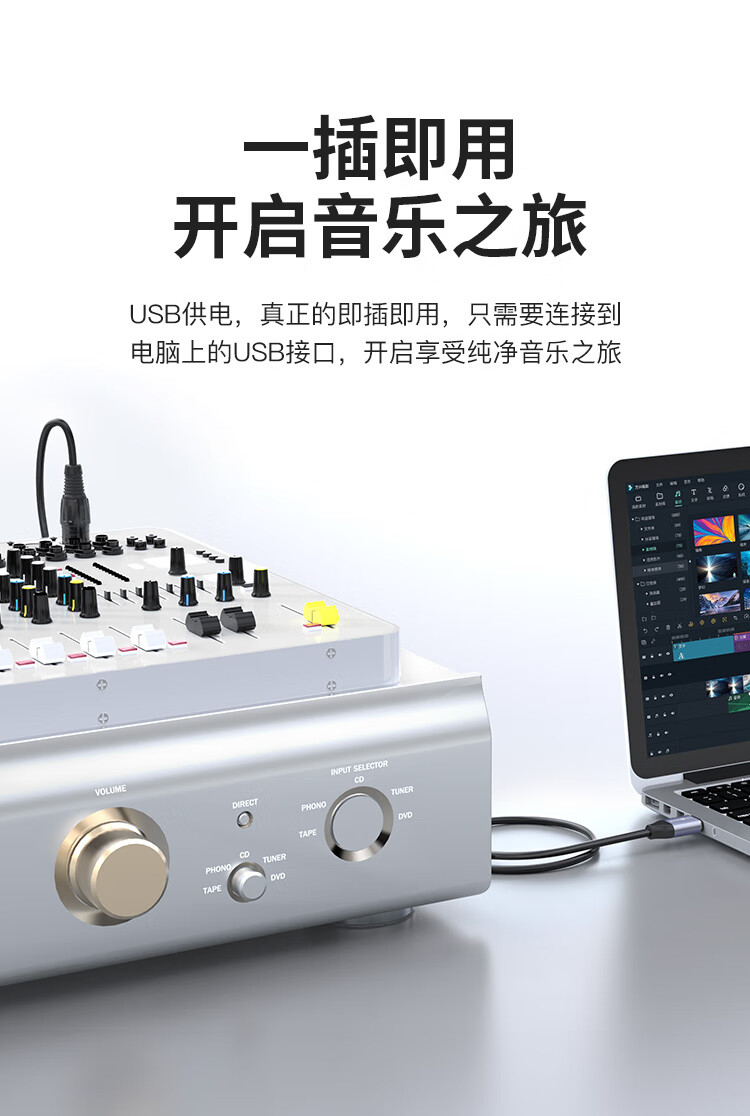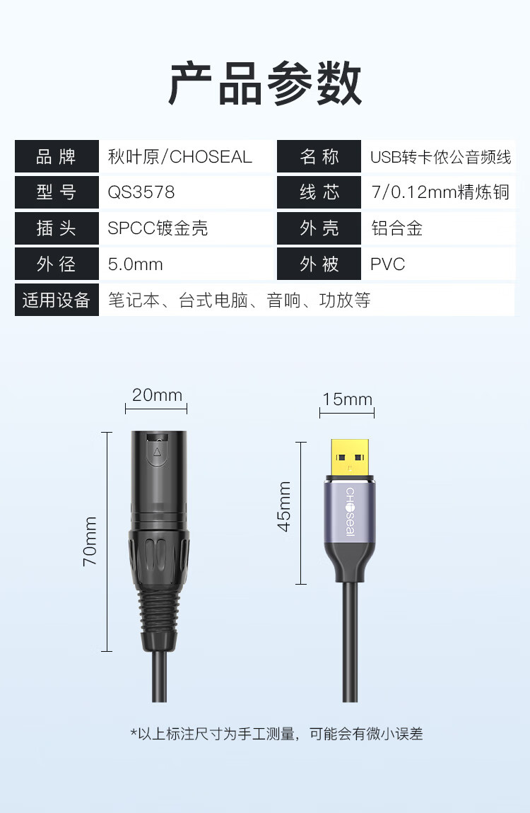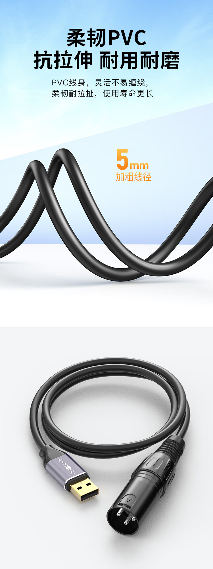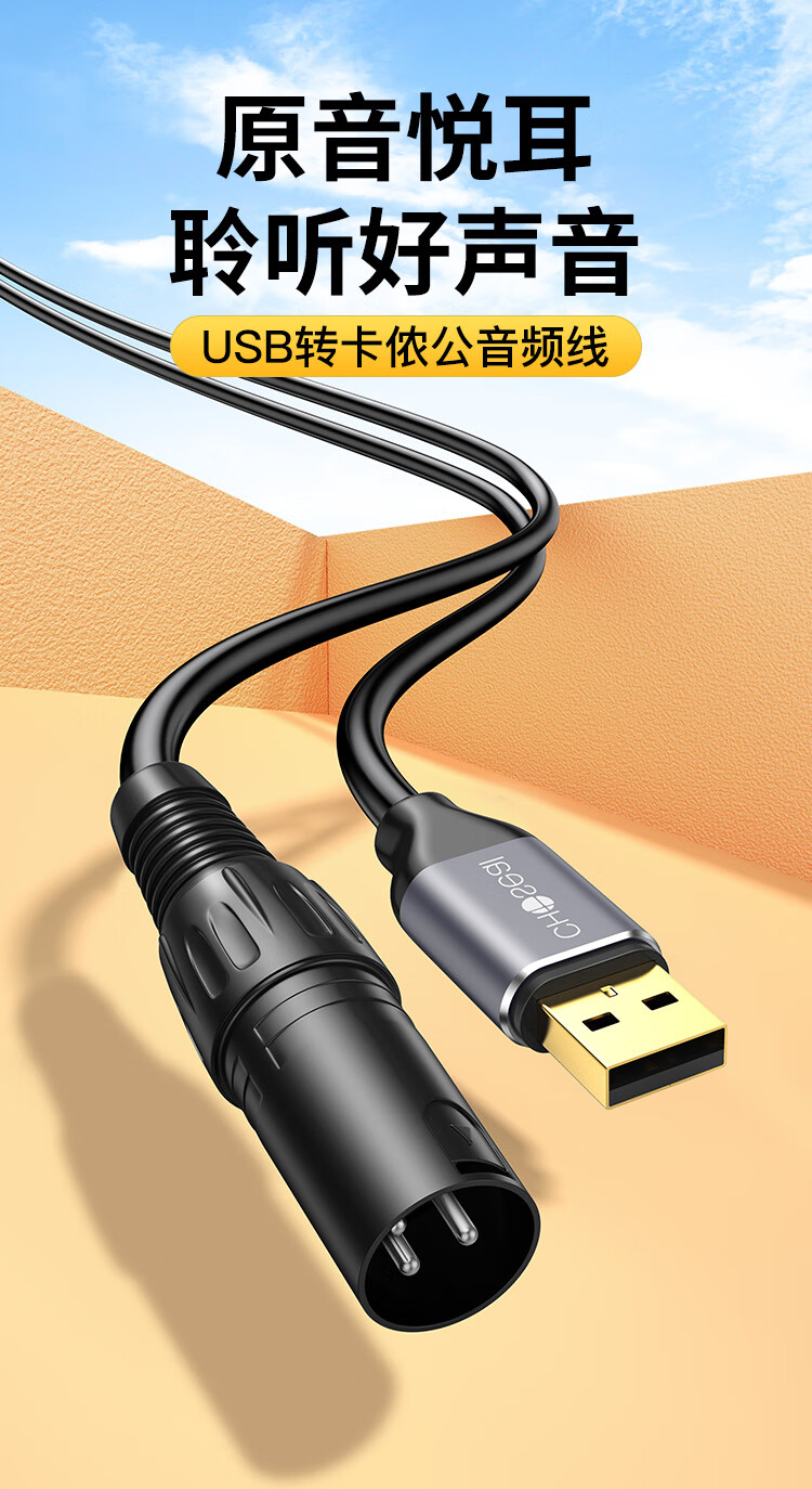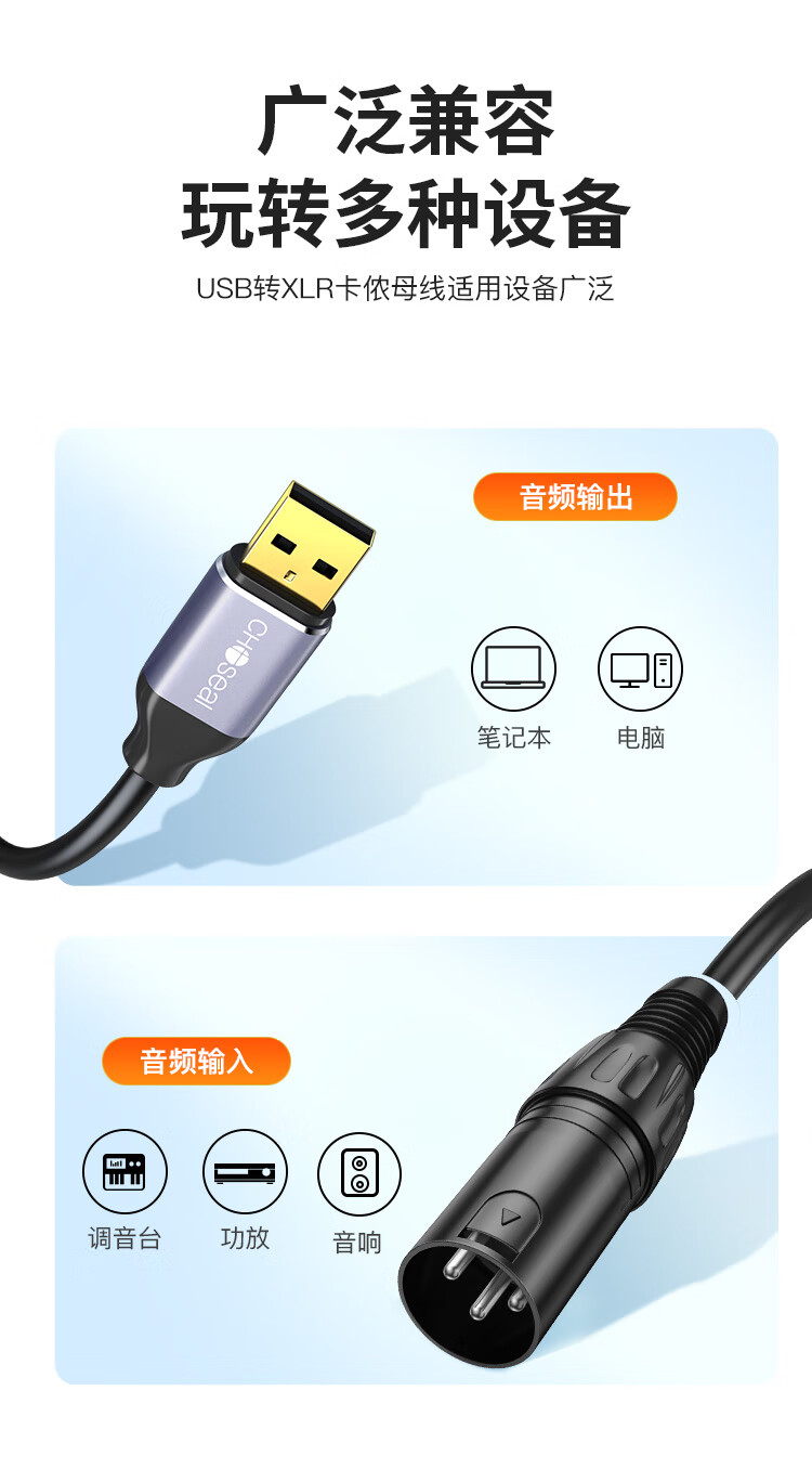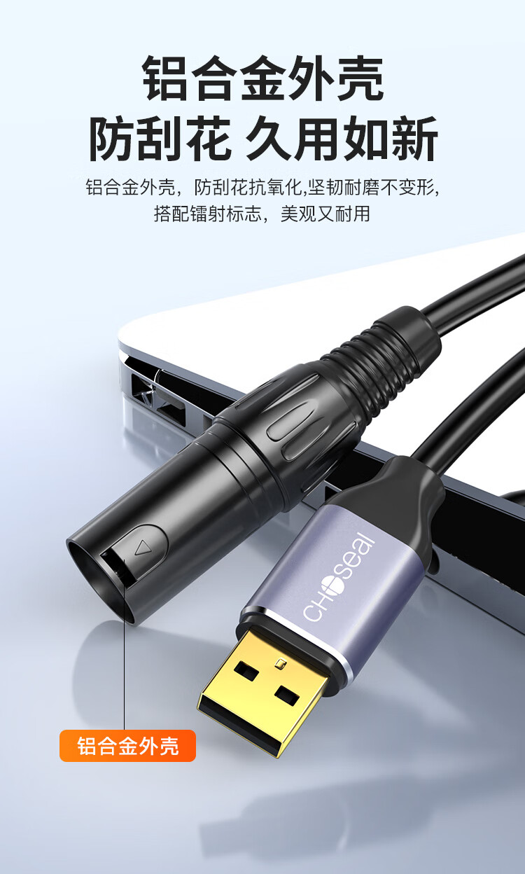 秋叶原(CHOSEAL)USB公转卡侬公音频线 XLR卡农转usb线 铝合金壳 电脑接调音台声卡麦克风连接线 1米 QS3578T1