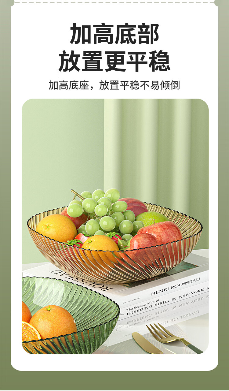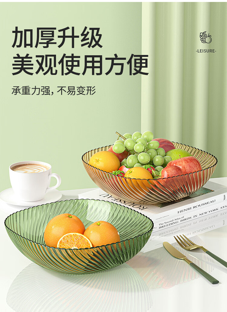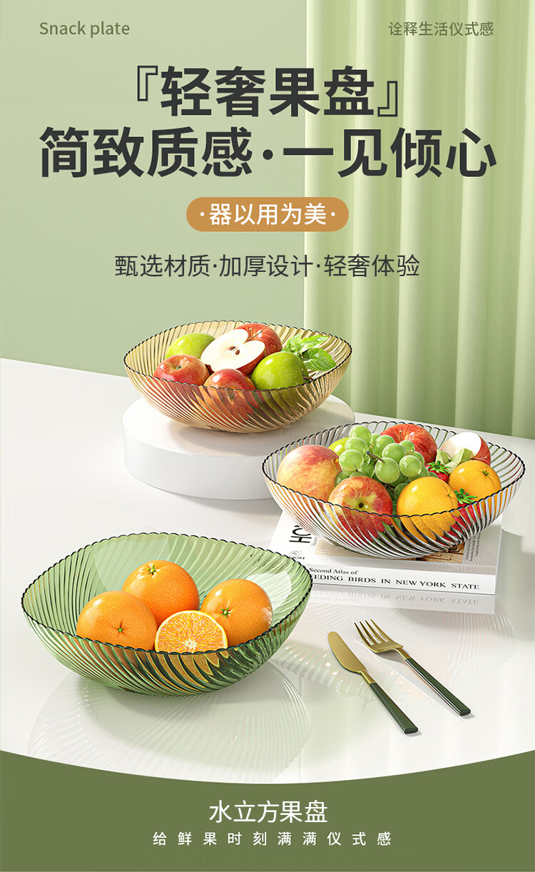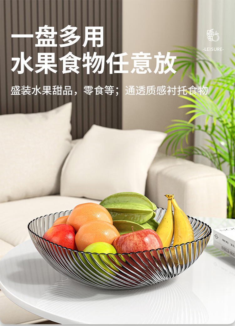 翰鸥斐水果盘大容量家用塑料果盘高级平底水果盘子客厅糖果盘 大号果盘1个
