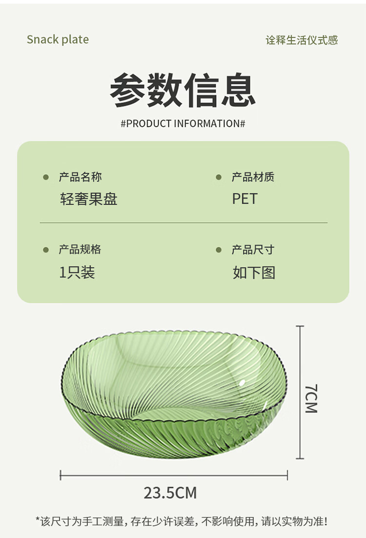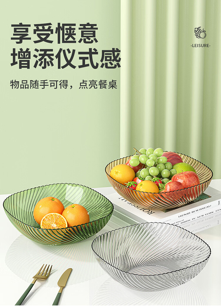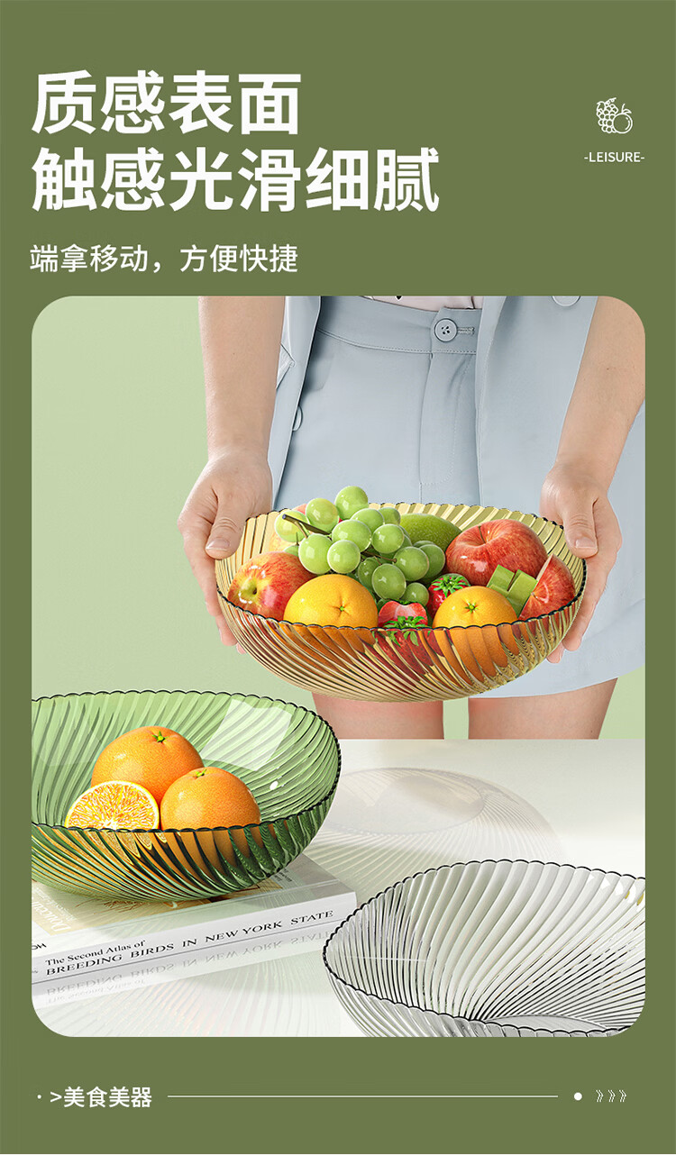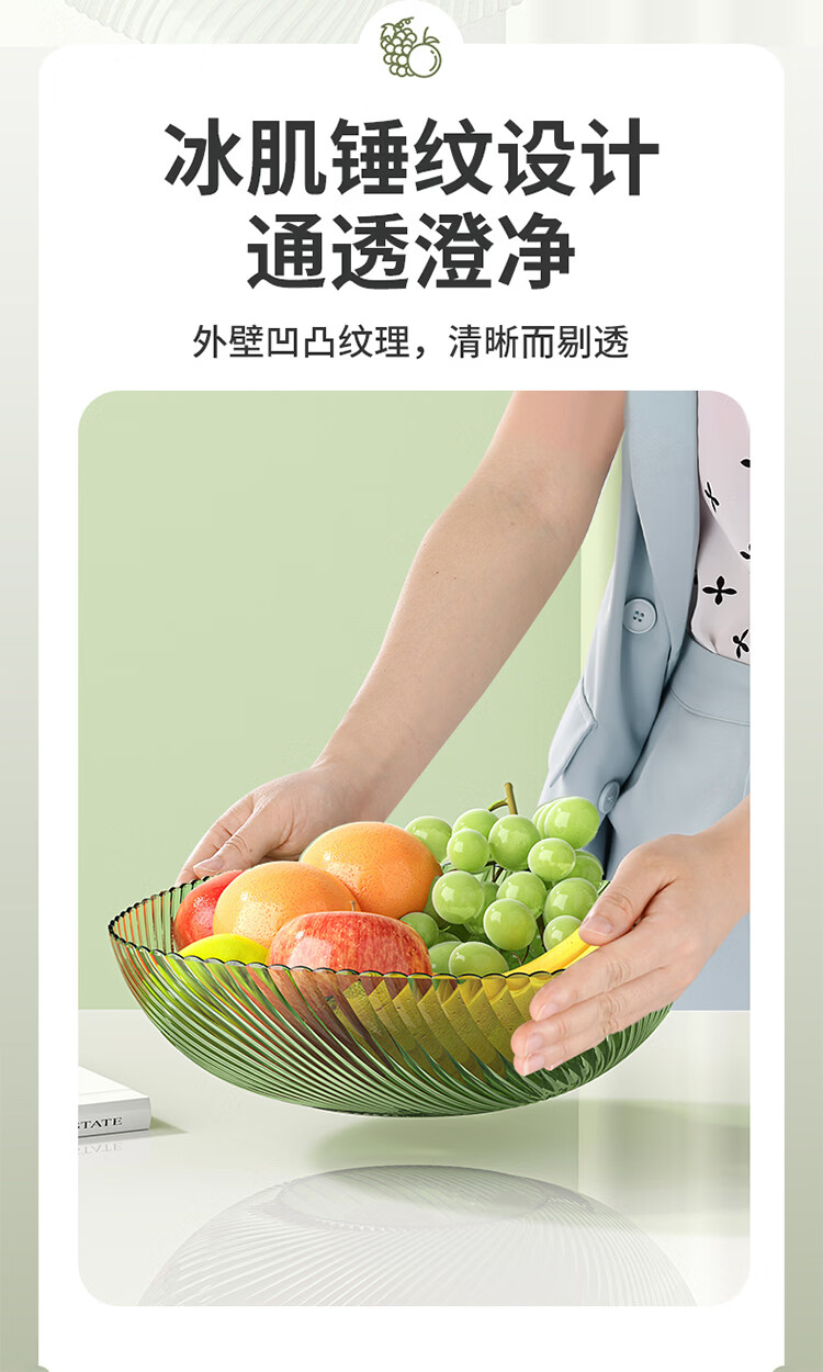 翰鸥斐水果盘大容量家用塑料果盘高级平底水果盘子客厅糖果盘 大号果盘1个