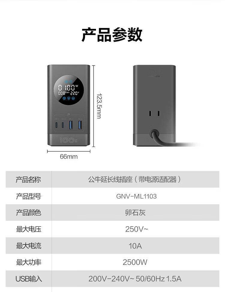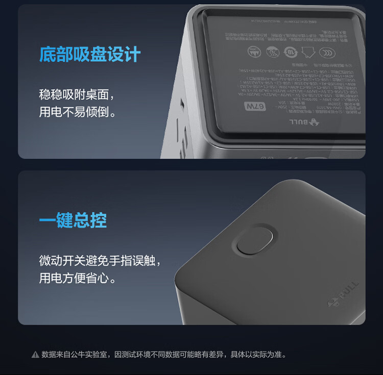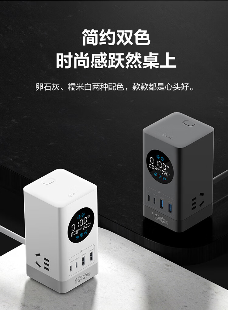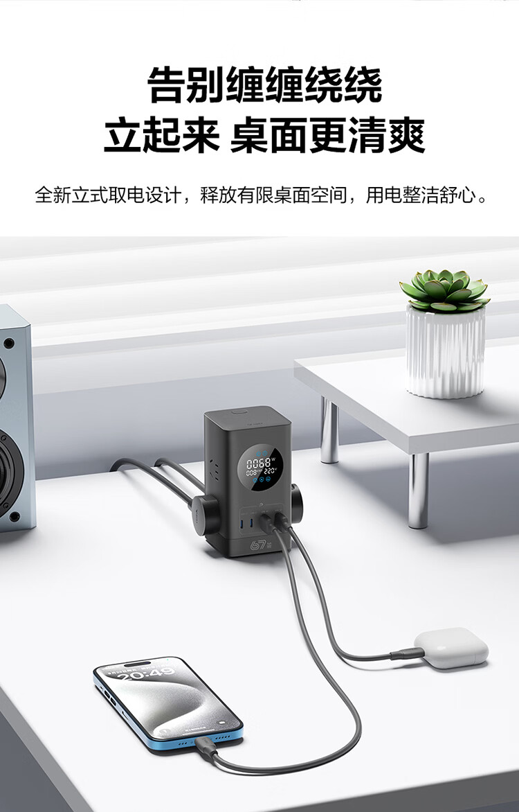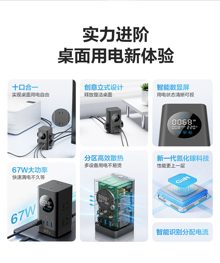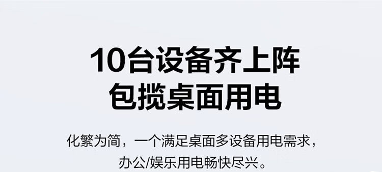 公牛(BULL)插座USB快充智能数显立式插排多功能桌面充电站办公插线板排插35W/67W/100W 【35W快充-10合1】-卵石灰1.5米