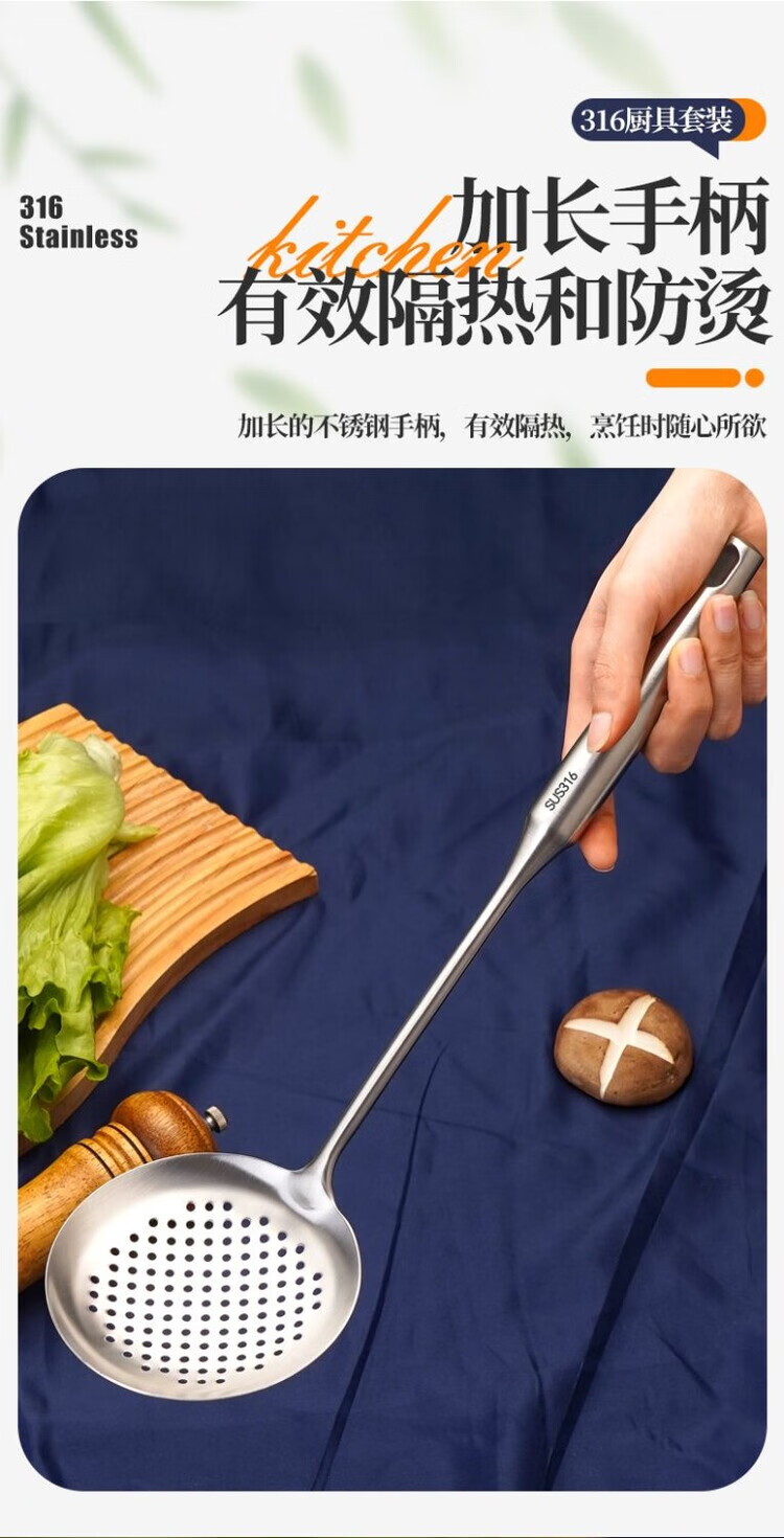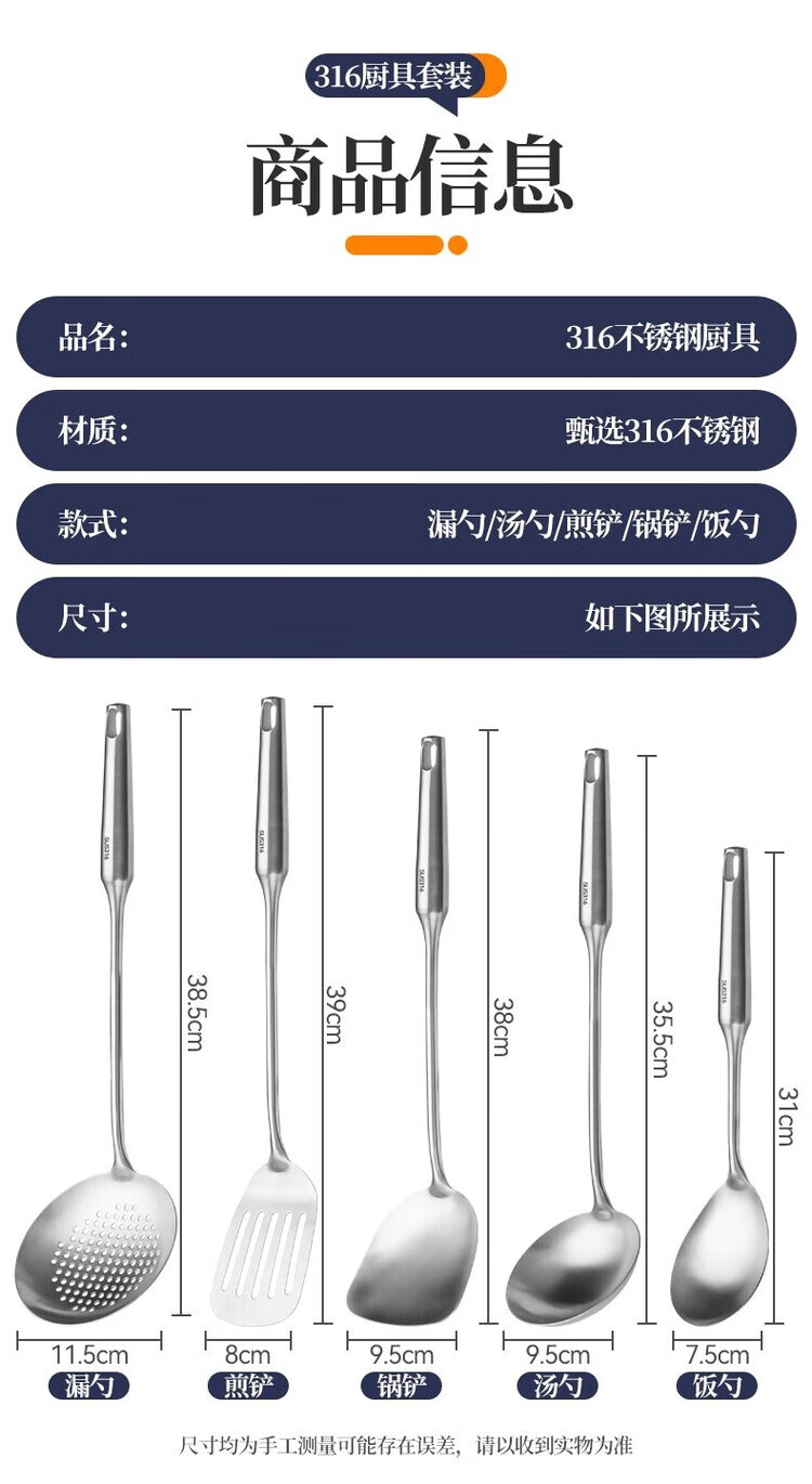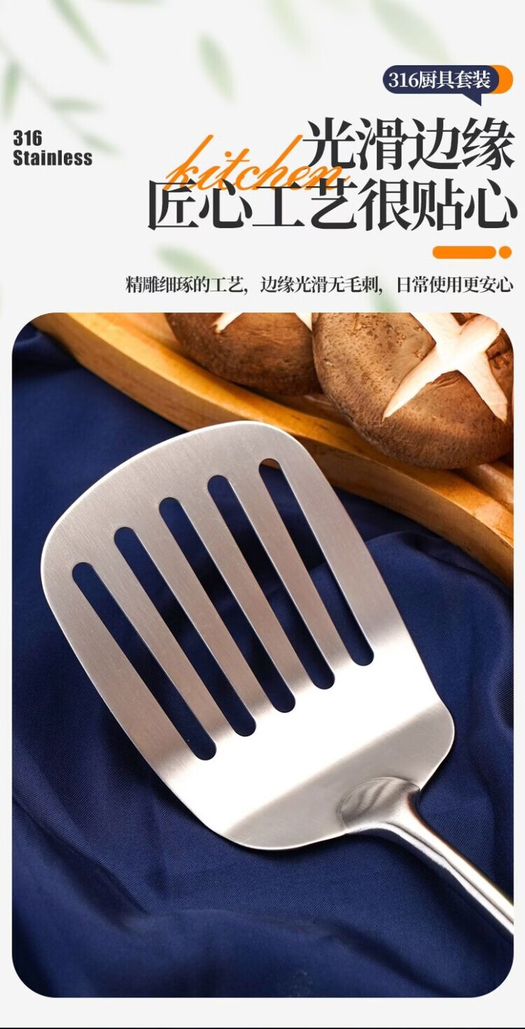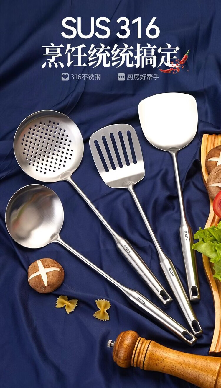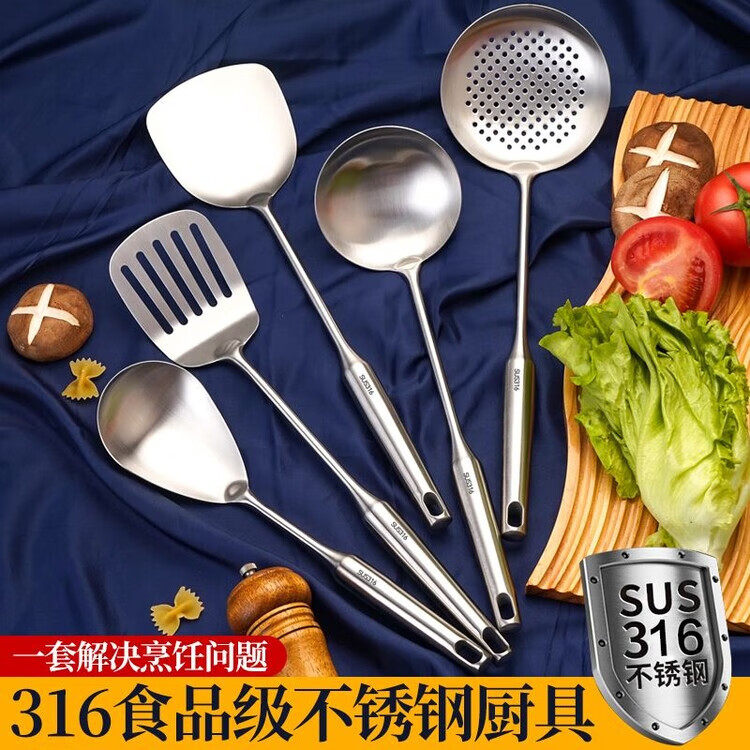 简漾德国316不锈钢特厚锅铲汤勺漏勺煎铲家用厨具厨房用品炒菜铲子 全不锈钢饭勺