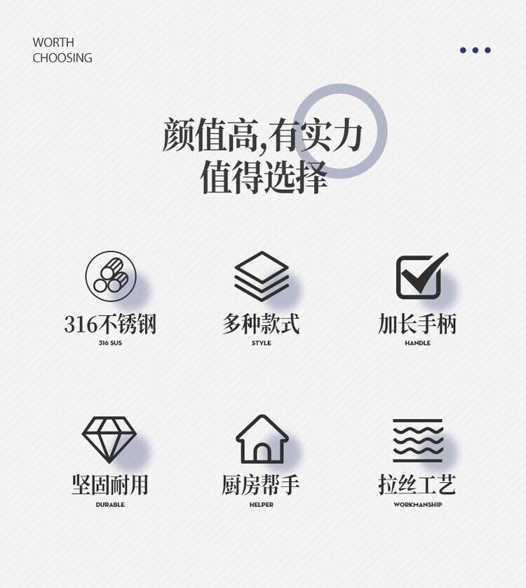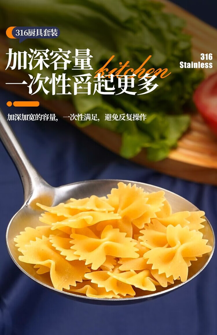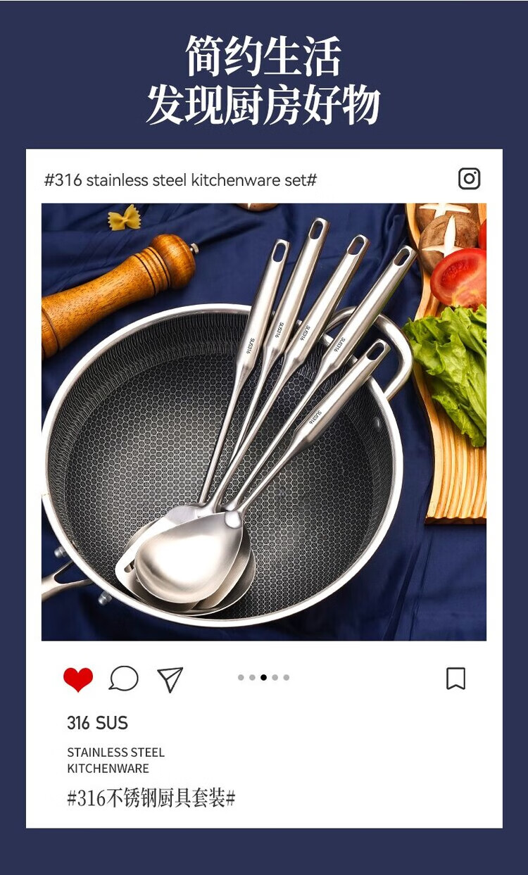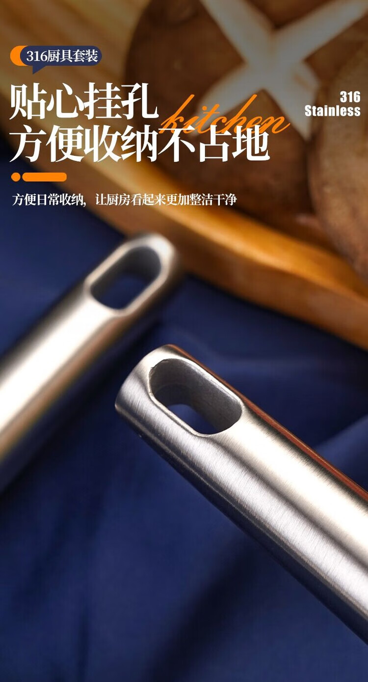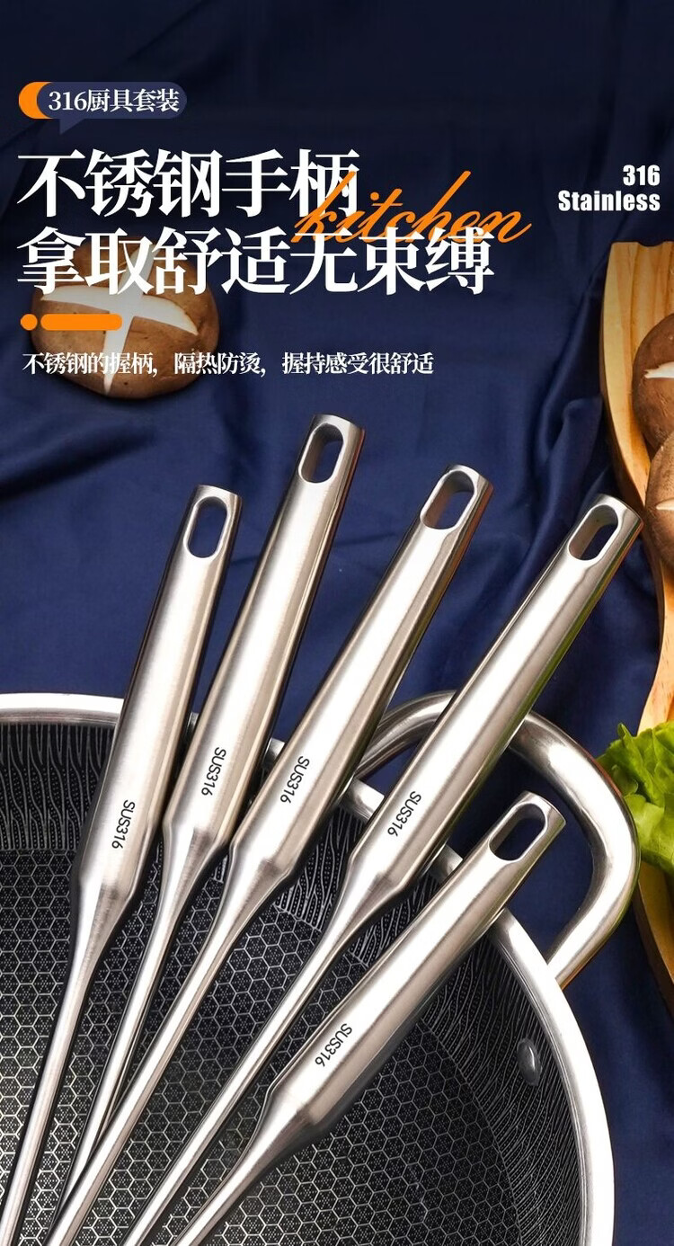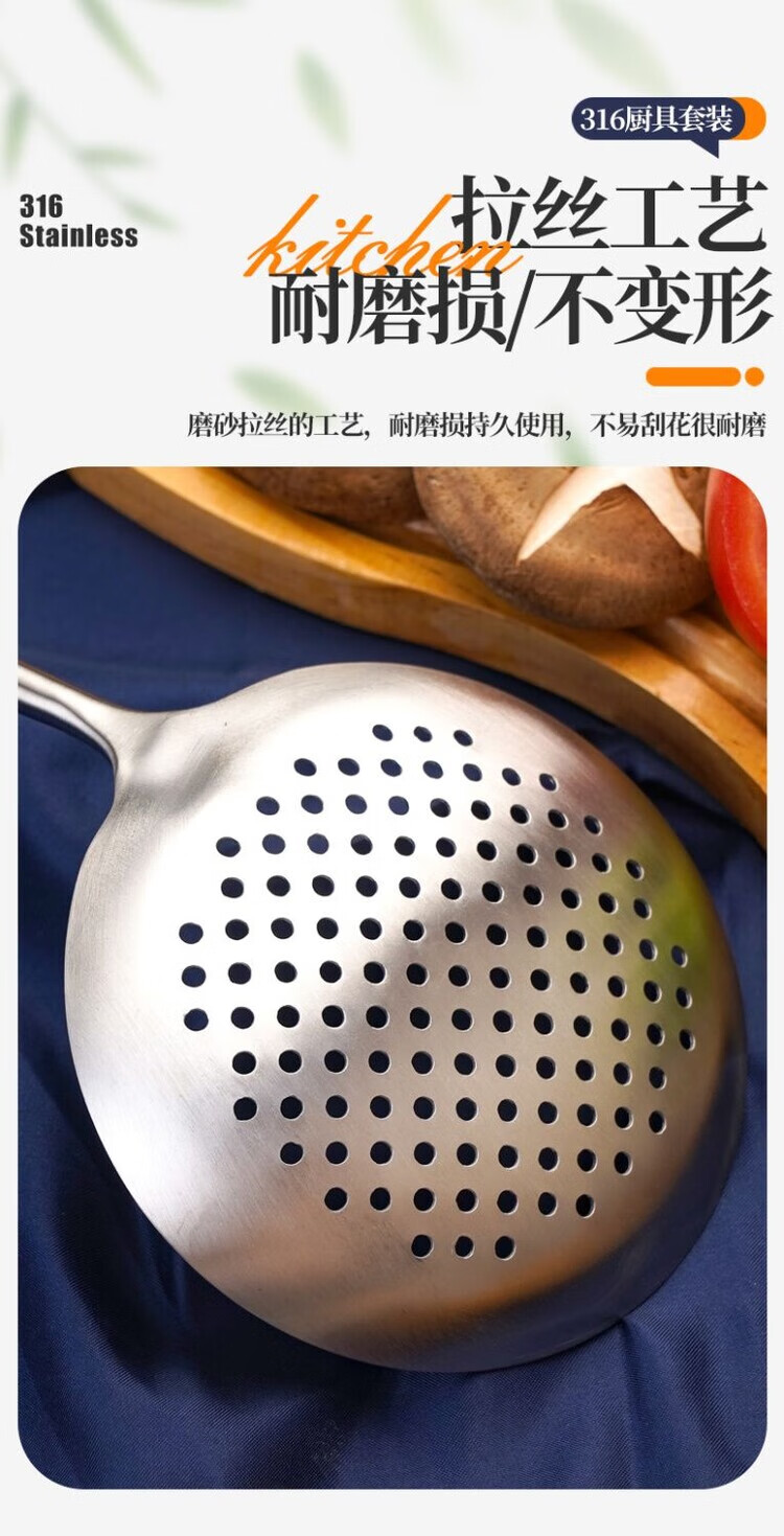 简漾德国316不锈钢特厚锅铲汤勺漏勺煎铲家用厨具厨房用品炒菜铲子 全不锈钢饭勺