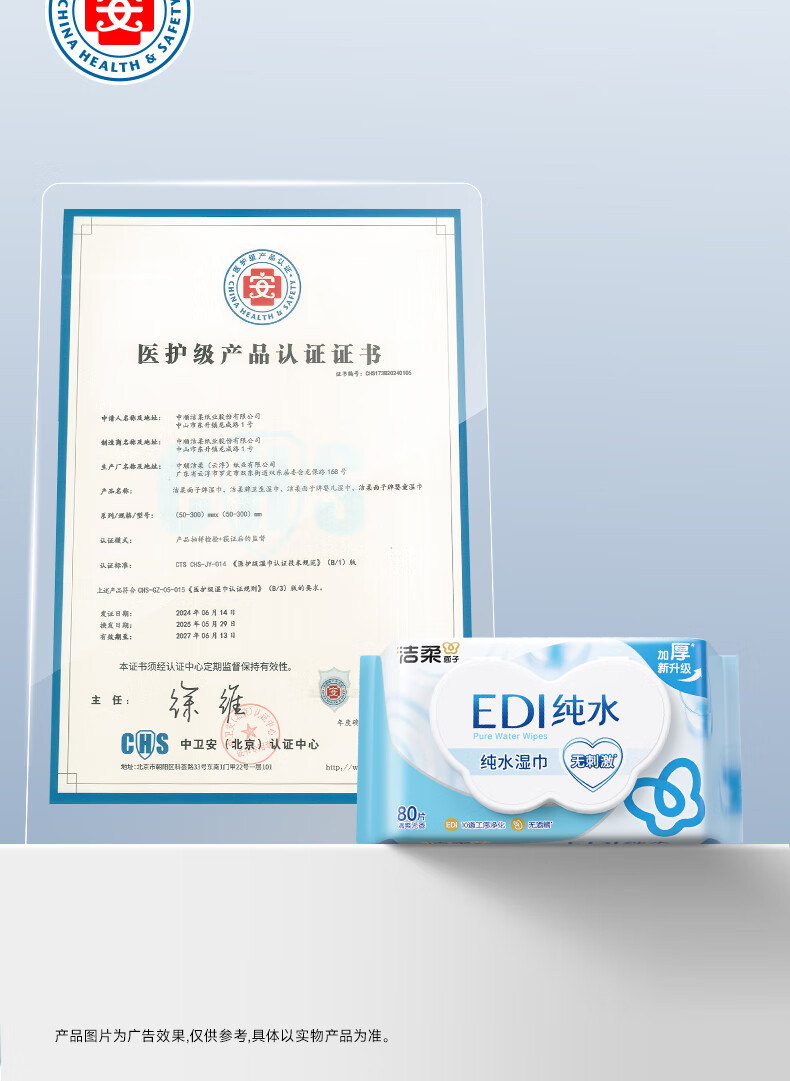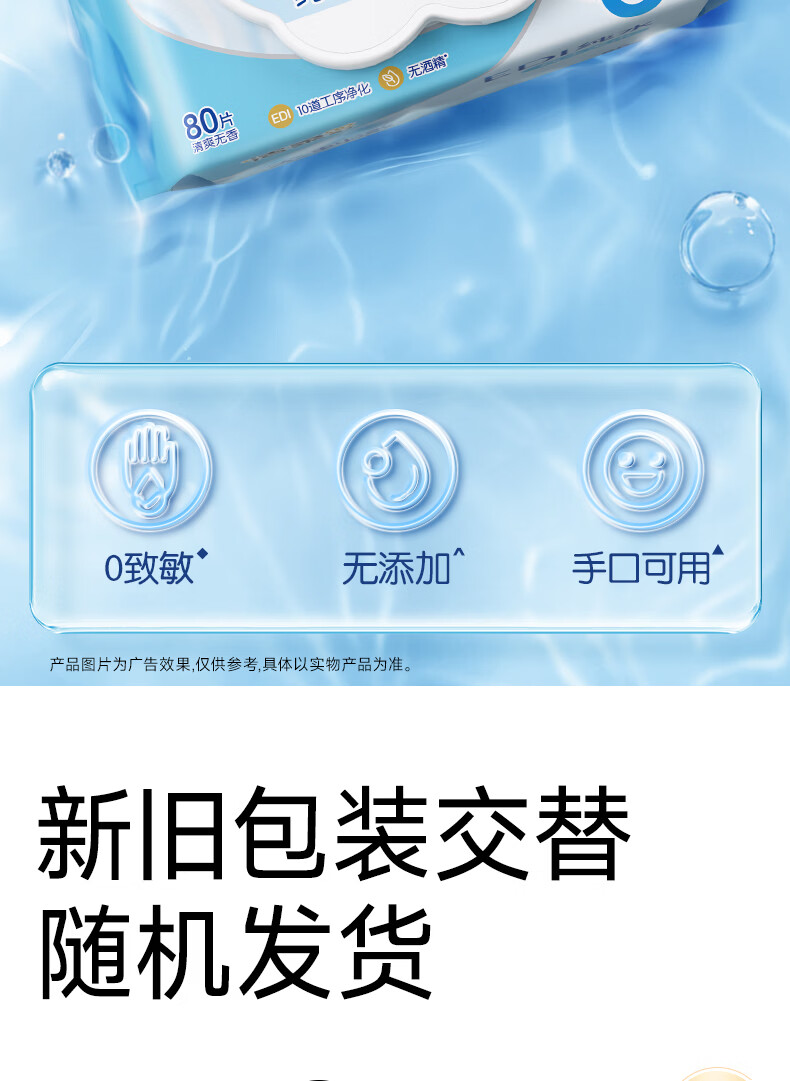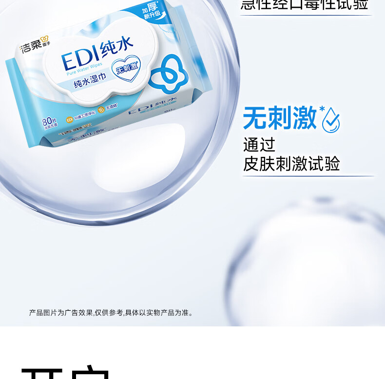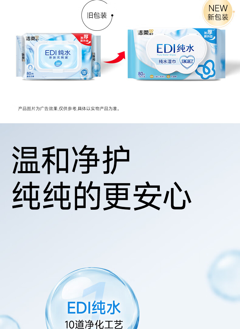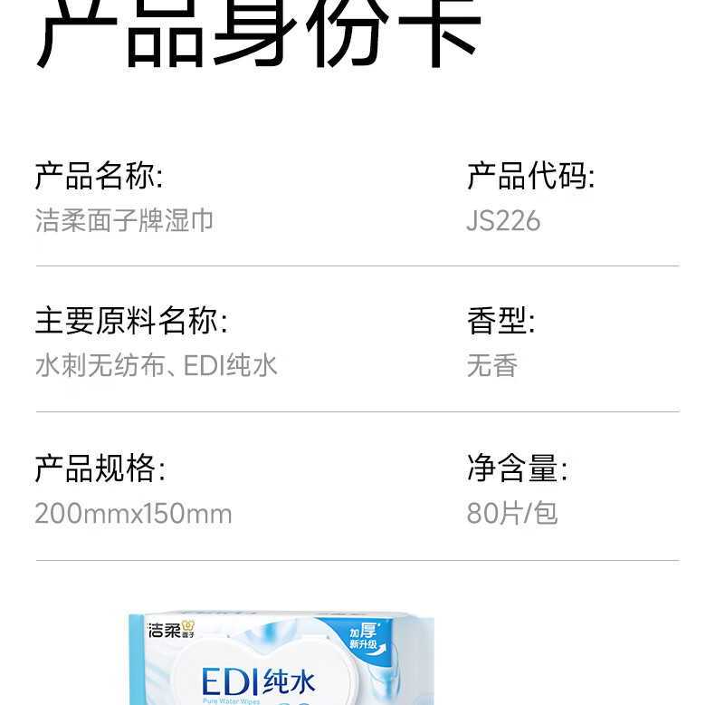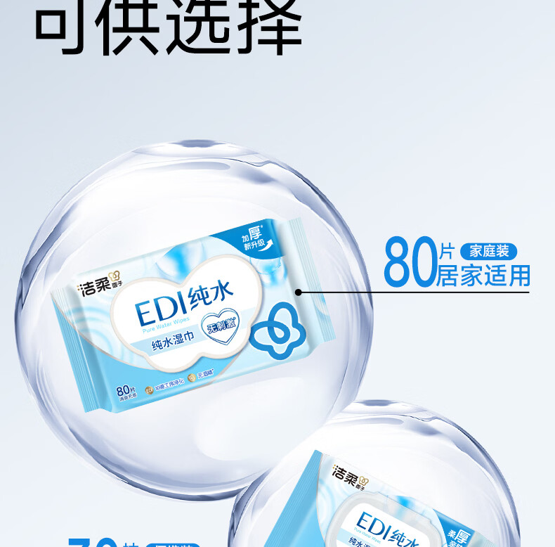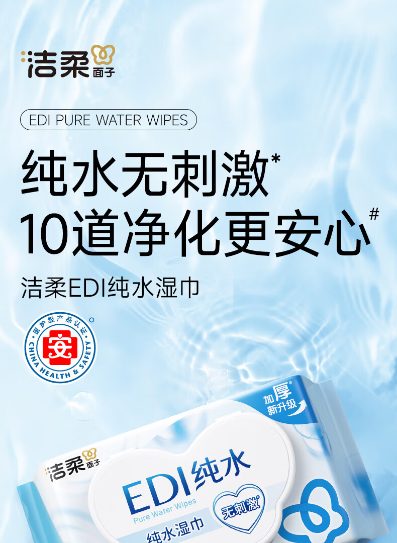 洁柔湿巾EDI纯水湿纸巾80抽 温和不含酒精 手口可用200*150mm校园必备