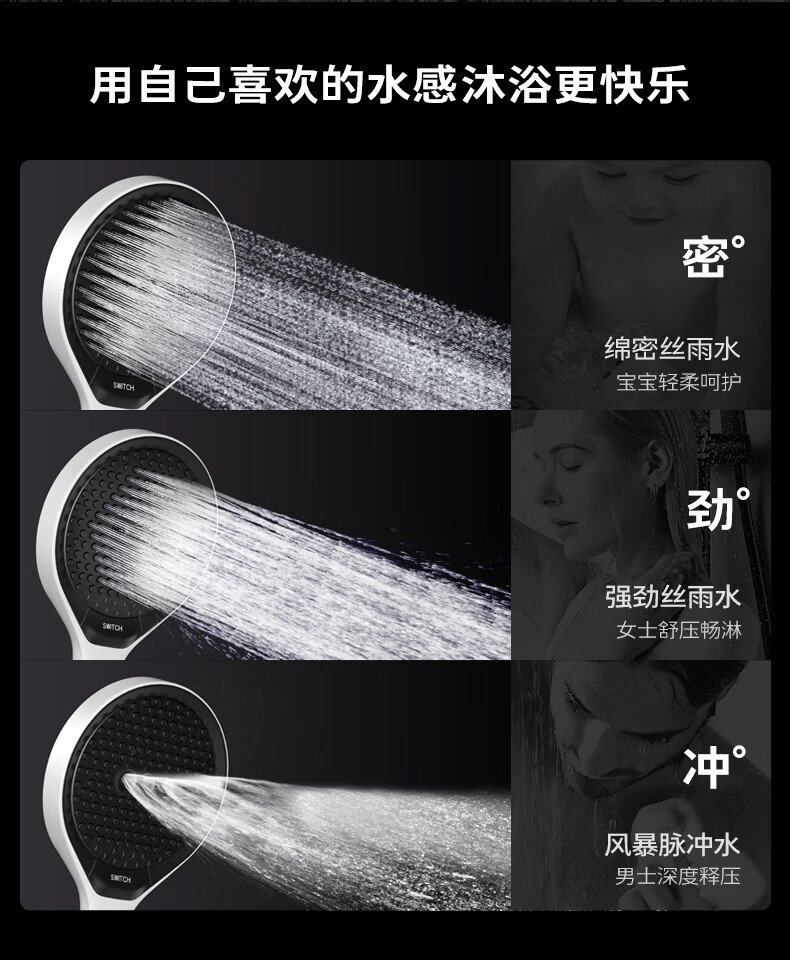 【现货现发】黑武士五档增压花洒淋浴器喷头浴室洗澡手持便携式多 黑色硬刺