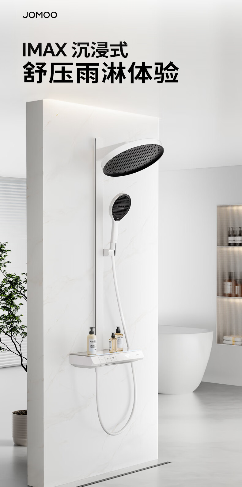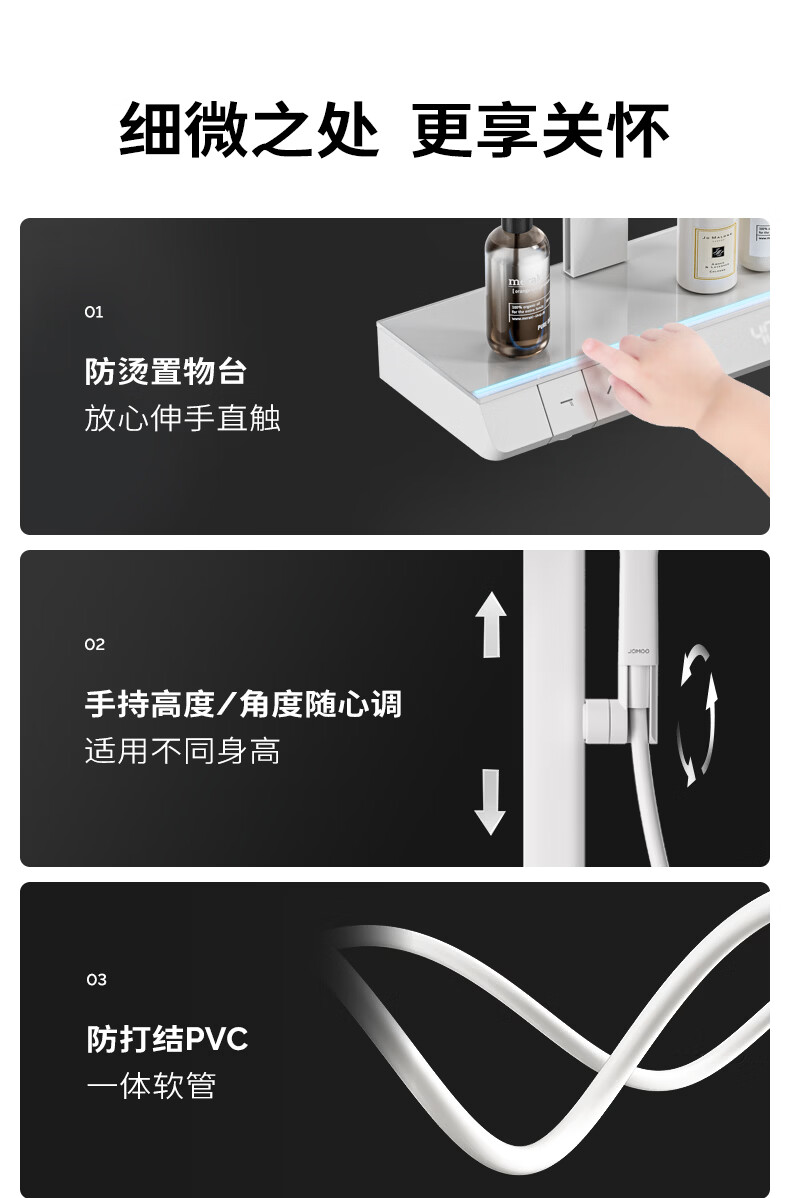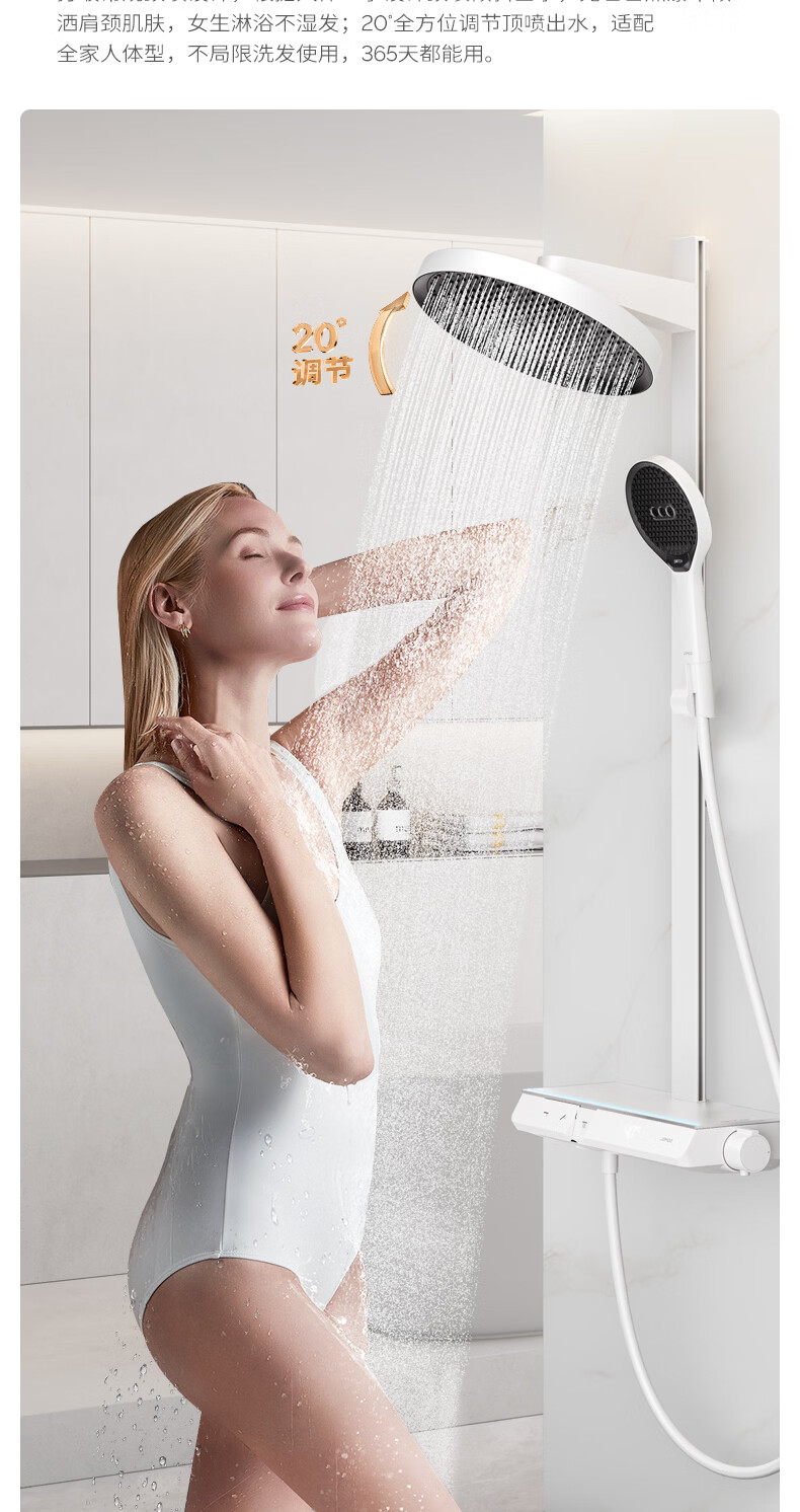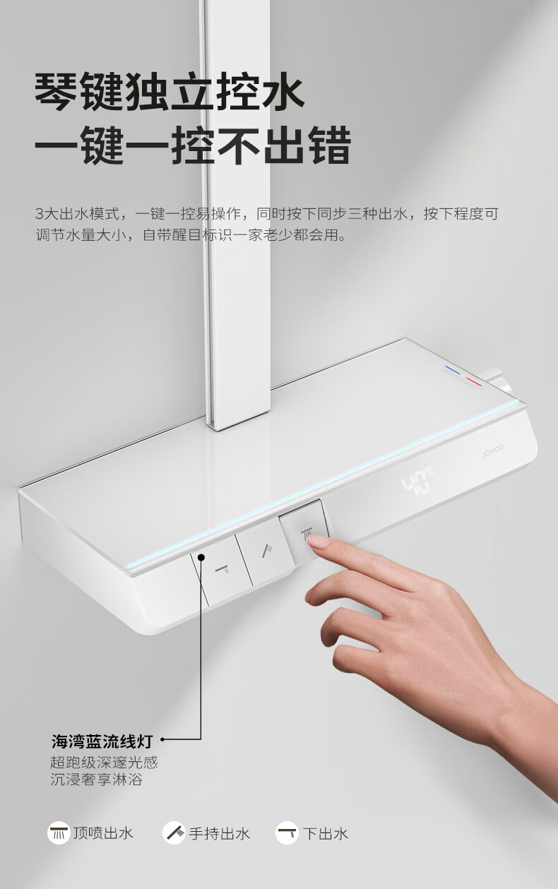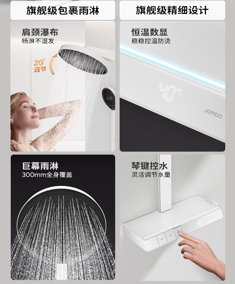 九牧(JOMOO)琴键星幕Chic丝雨三功能方管靠墙大置物自动除垢淋浴花洒36672