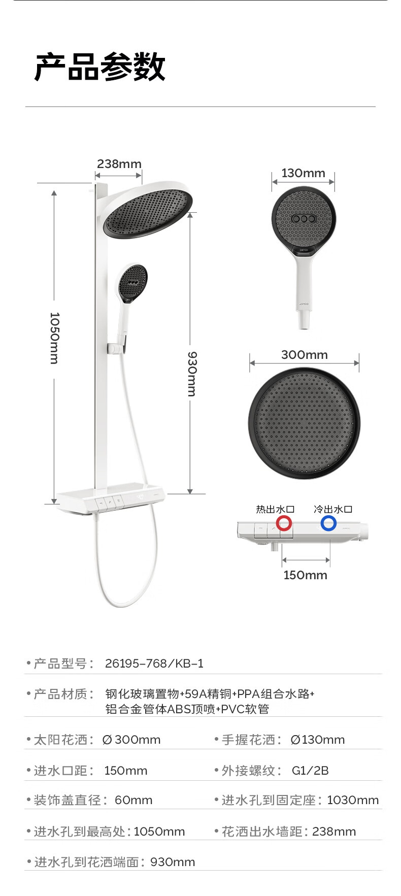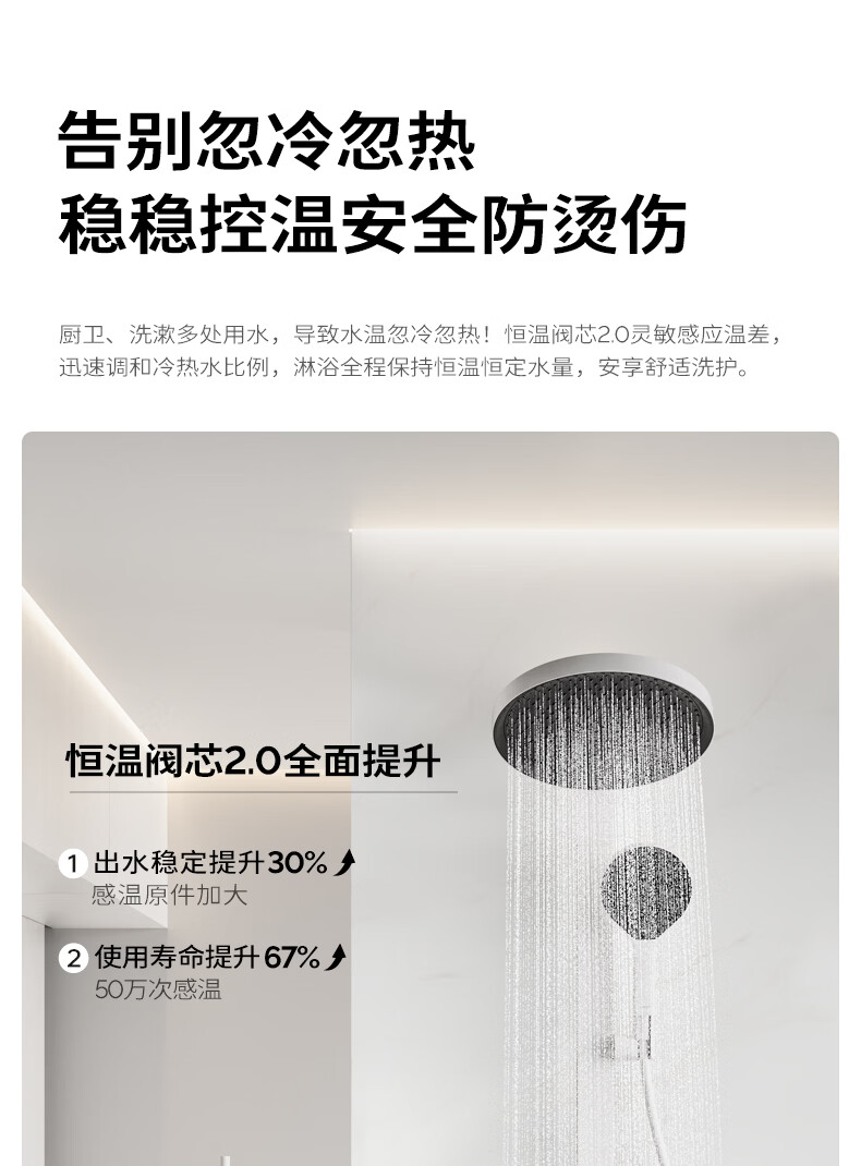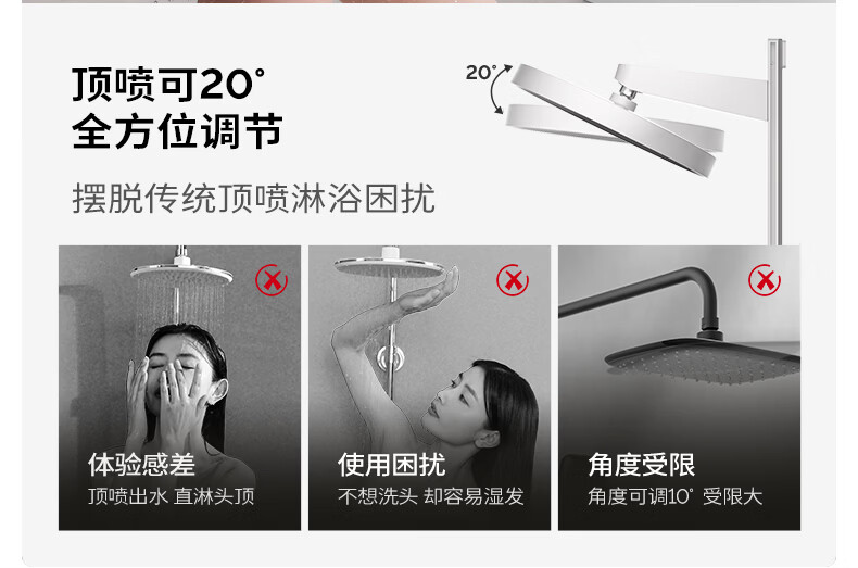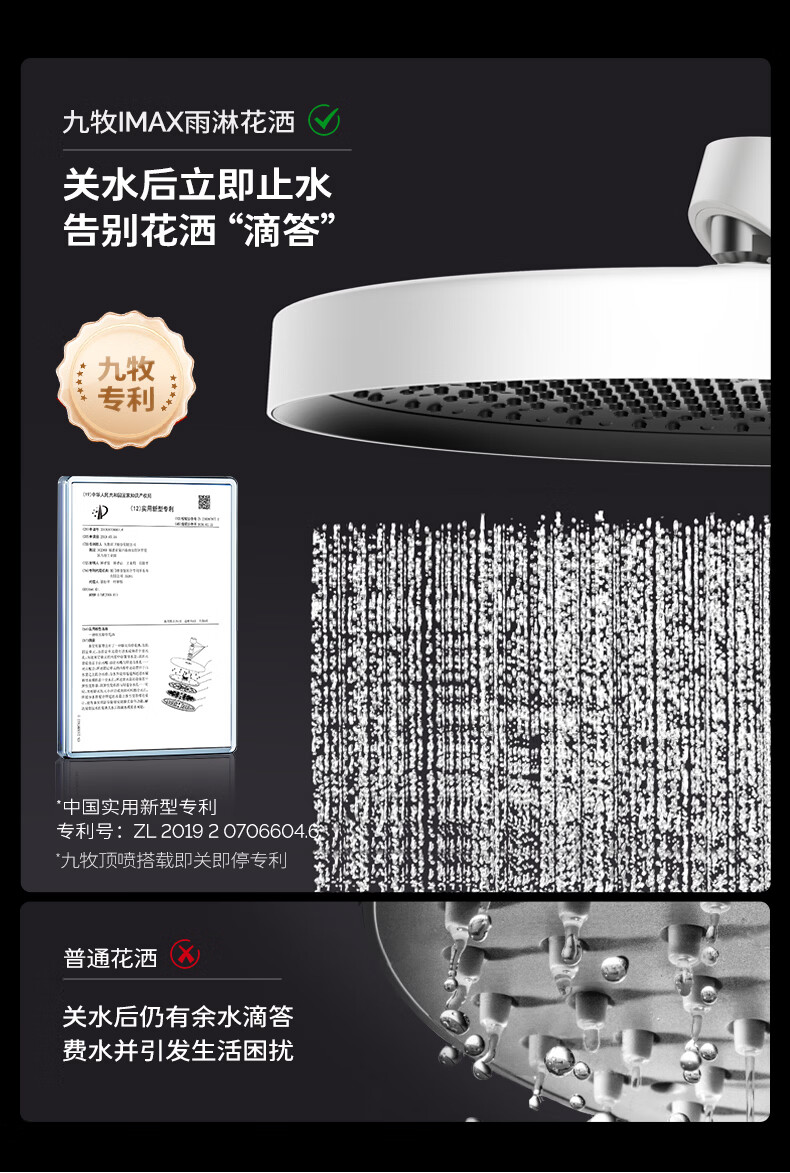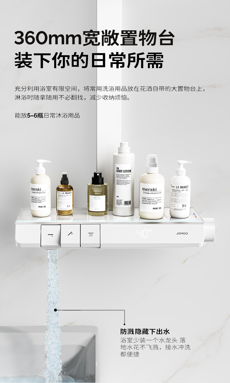 九牧(JOMOO)琴键星幕Chic丝雨三功能方管靠墙大置物自动除垢淋浴花洒36672