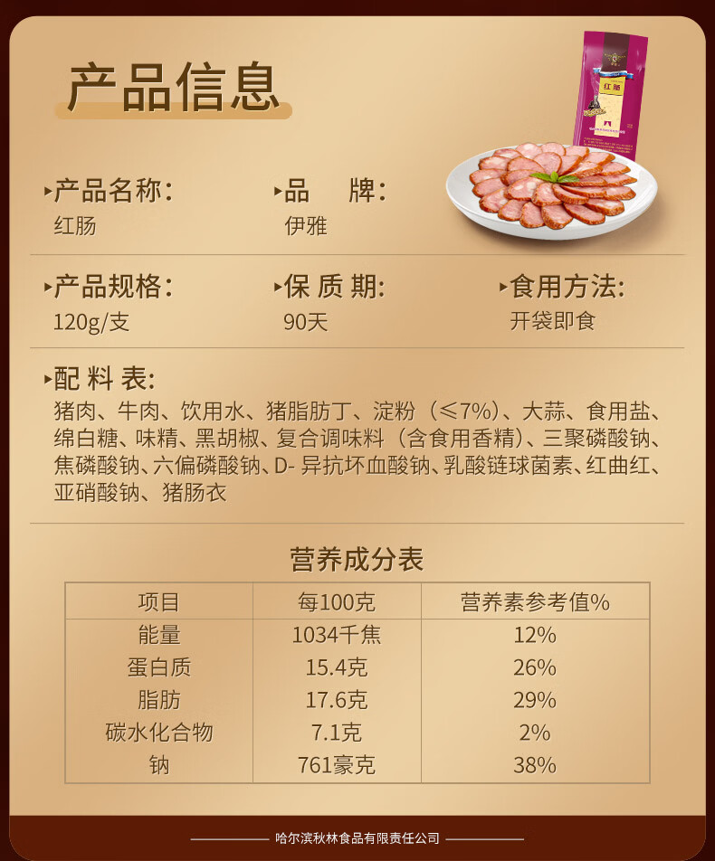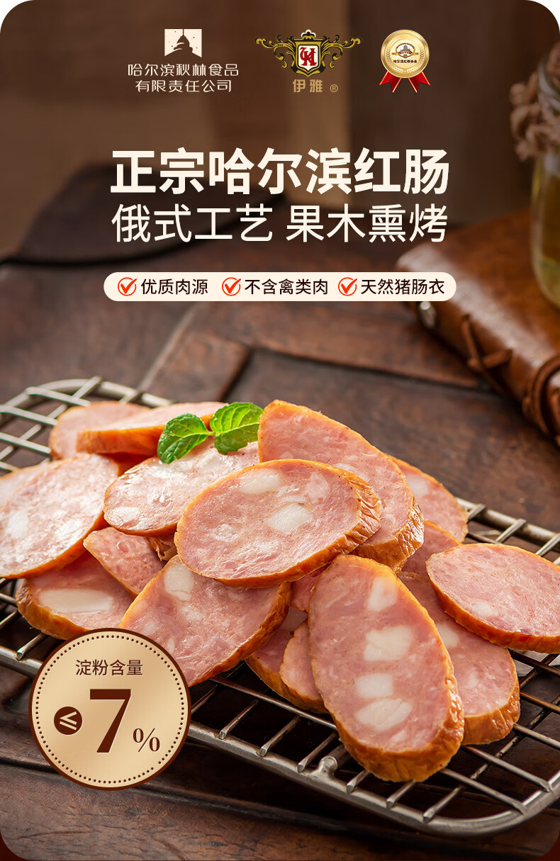 伊雅【好评过万】秋林食品公司 哈尔滨红肠东北哈尔滨特产 即食零食 红肠120g*10支