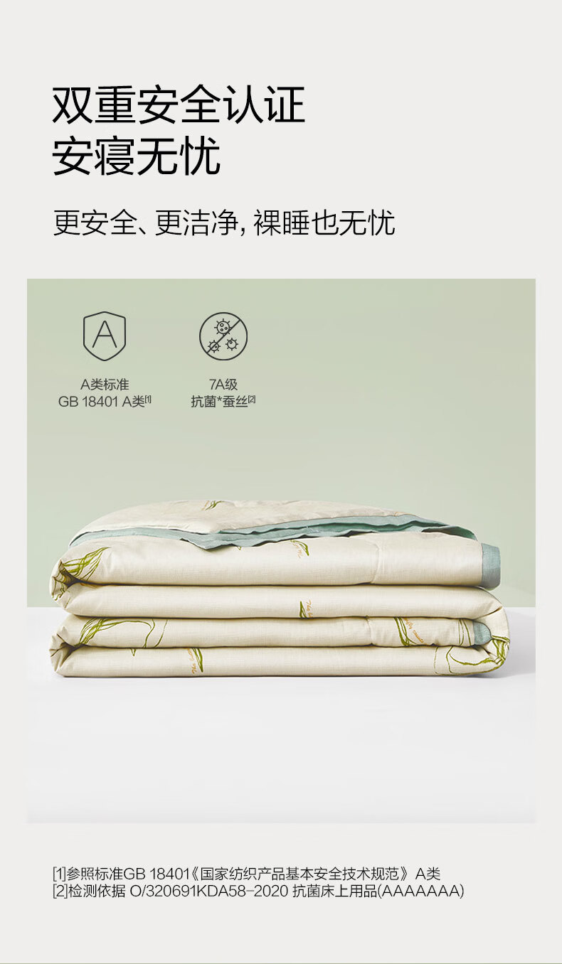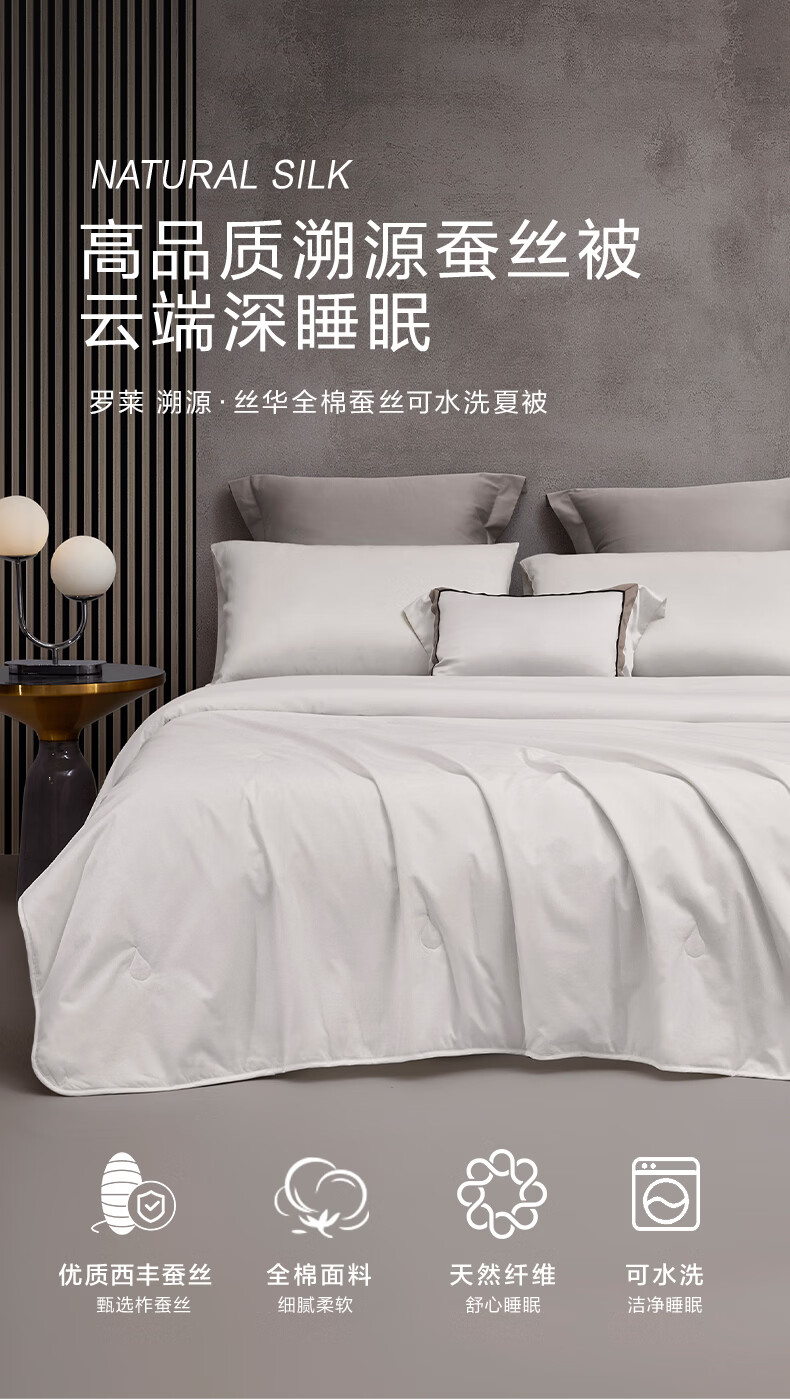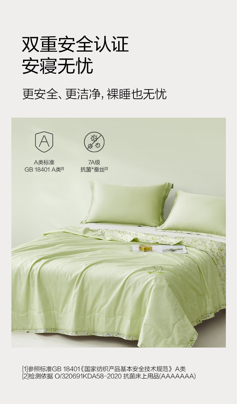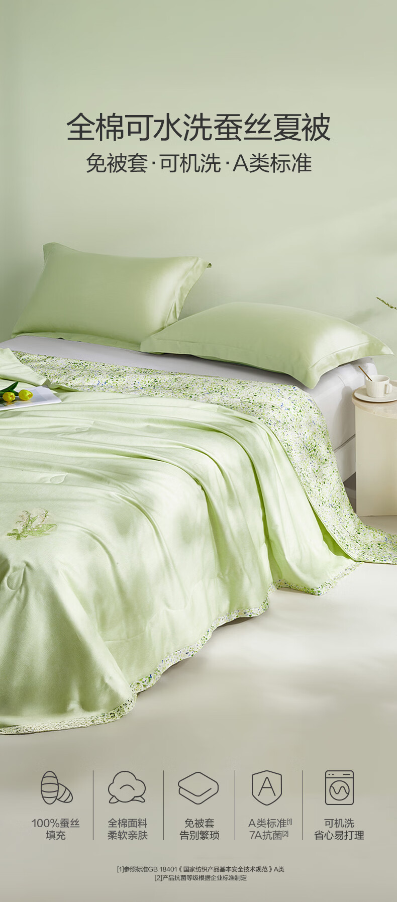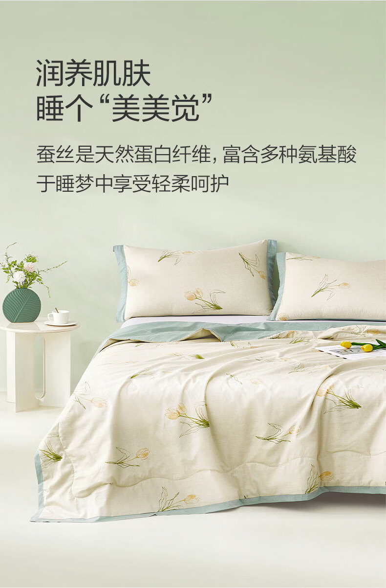 罗莱家纺A类全棉抗菌可水洗100%蚕丝夏被凉感被空调被 【成人A类 性价比之选】全棉可水洗蚕丝夏被-铃兰花集 150cm*215cm