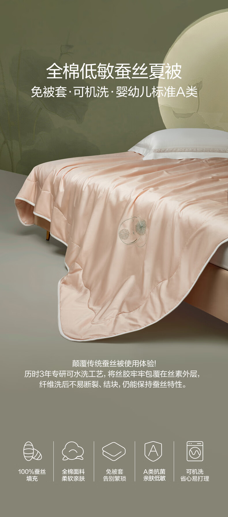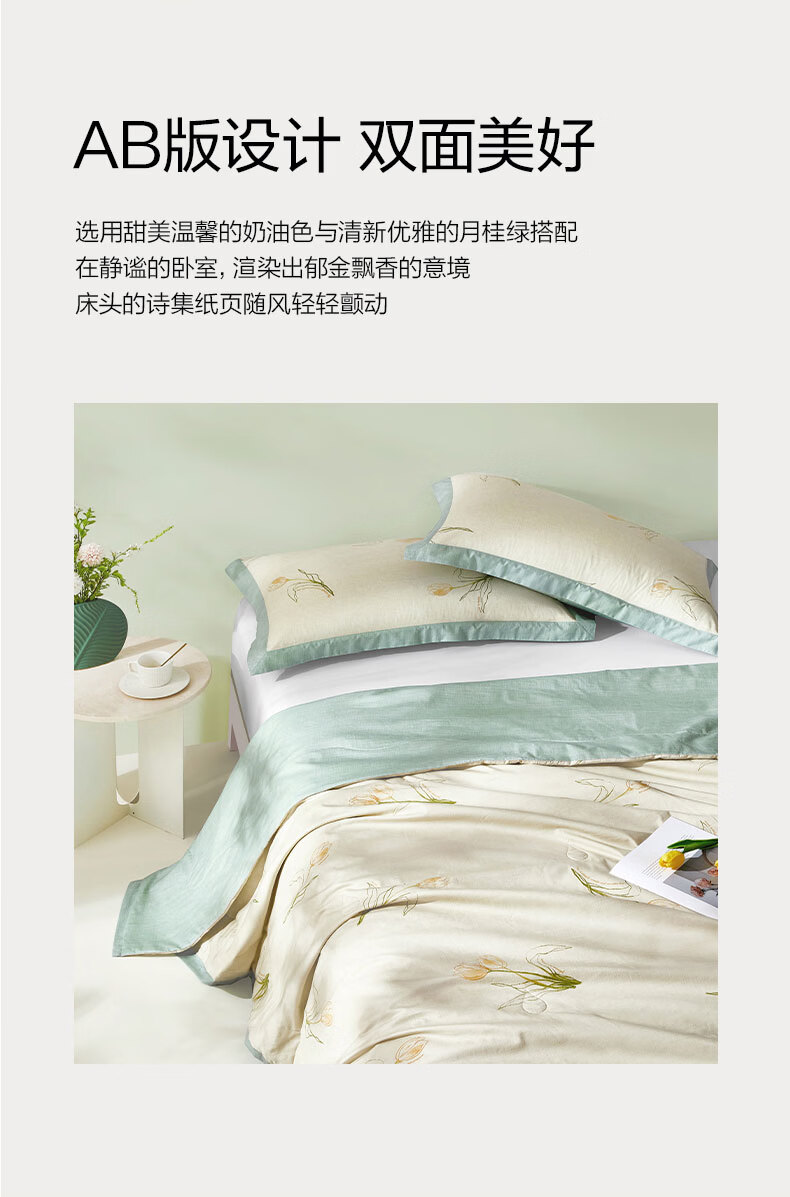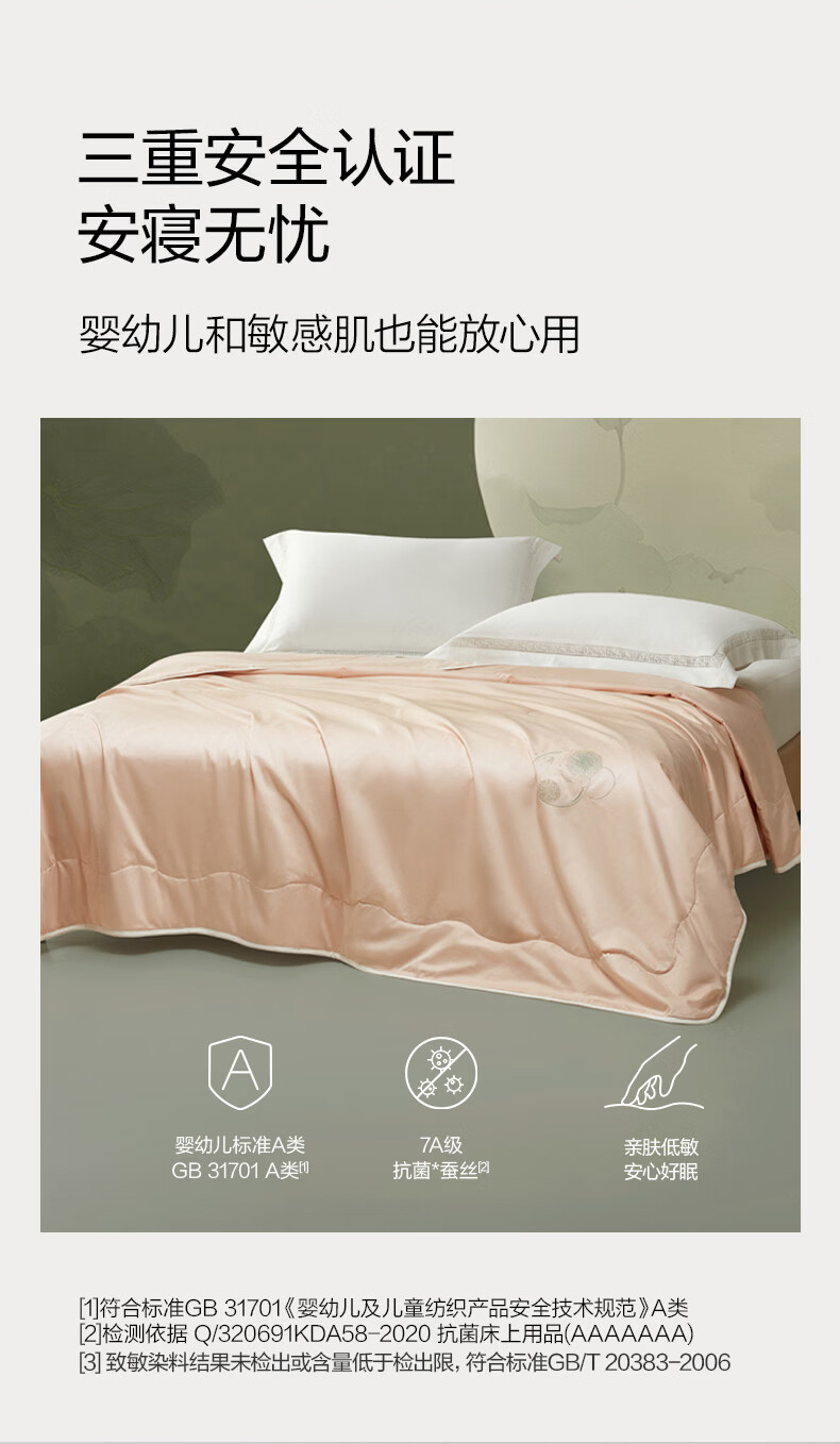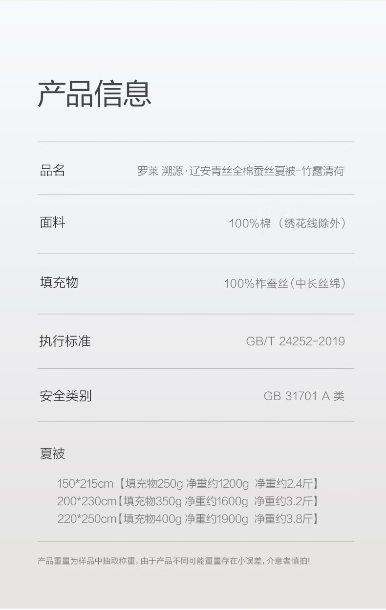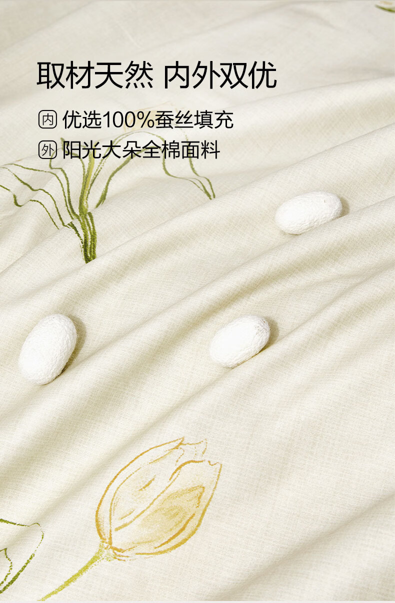 罗莱家纺A类全棉抗菌可水洗100%蚕丝夏被凉感被空调被 【成人A类 性价比之选】全棉可水洗蚕丝夏被-铃兰花集 150cm*215cm