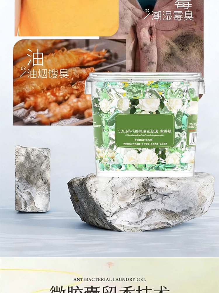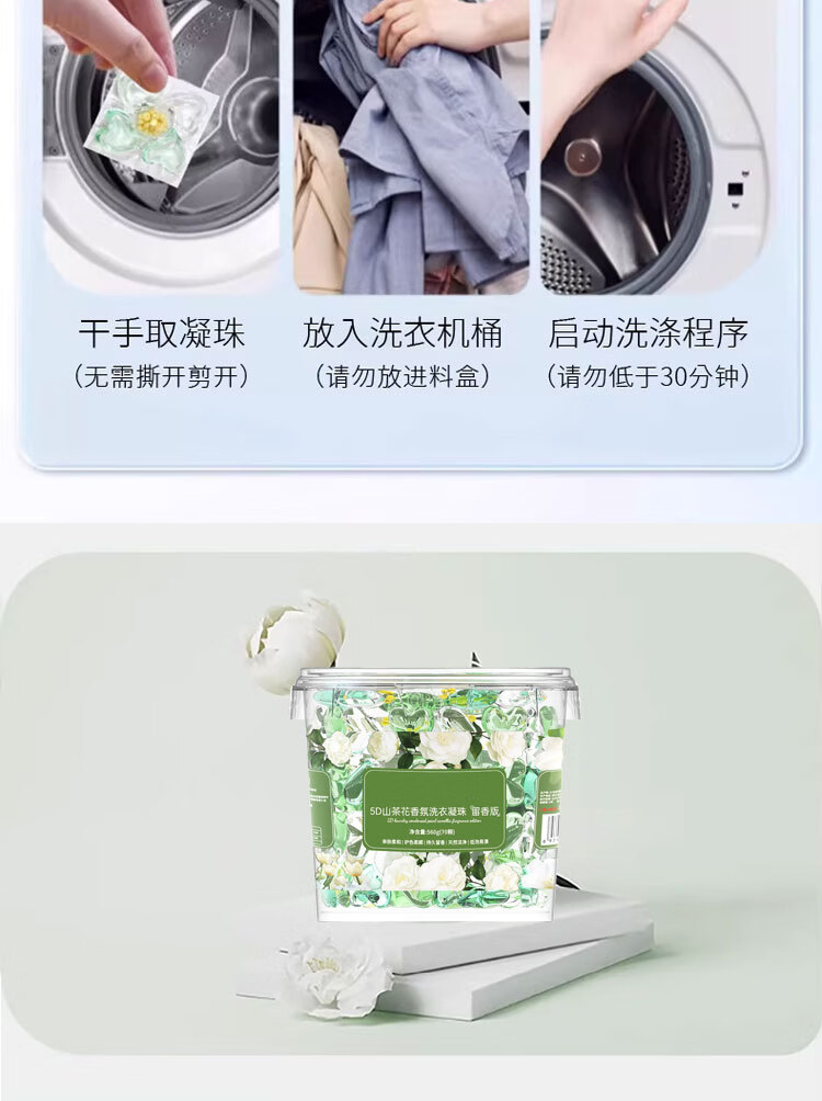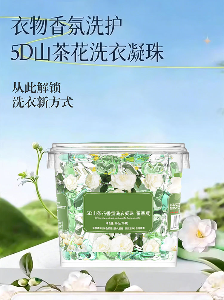 袋鼠哆哆 KANGARO DORDOO山茶花香洗衣凝珠560g桶装留香珠五合一持久留香去污浓缩洗衣液 5D山茶花洗衣凝珠(560g/70颗)*2桶