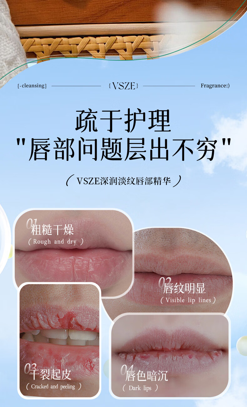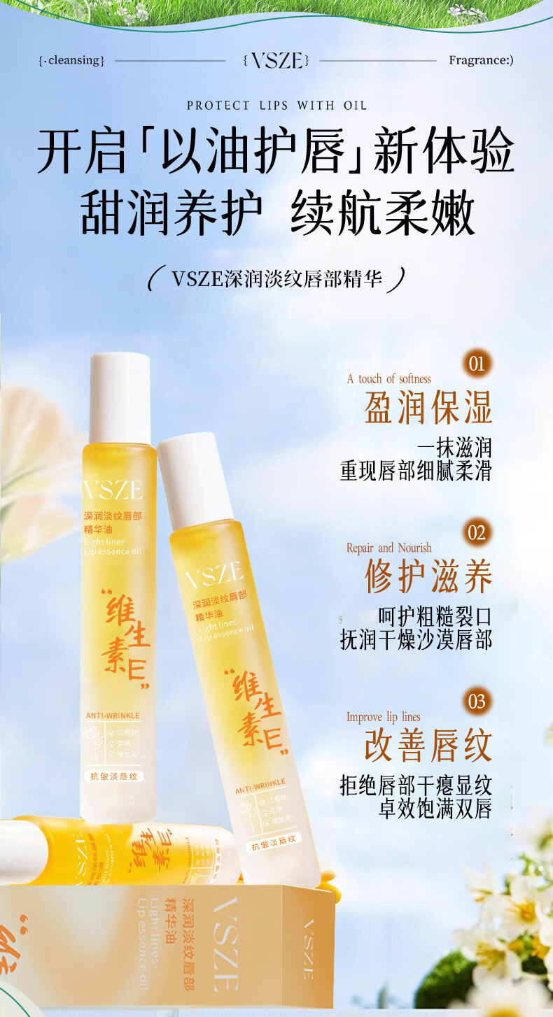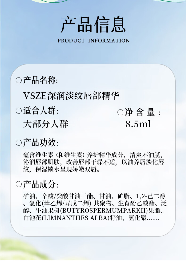 VSZE唇部精华油润唇膏秋冬补水保湿滋润淡化唇纹去死皮防干裂护理女 【深润淡纹唇部】维生素E唇部润唇膏8.5ml×1支